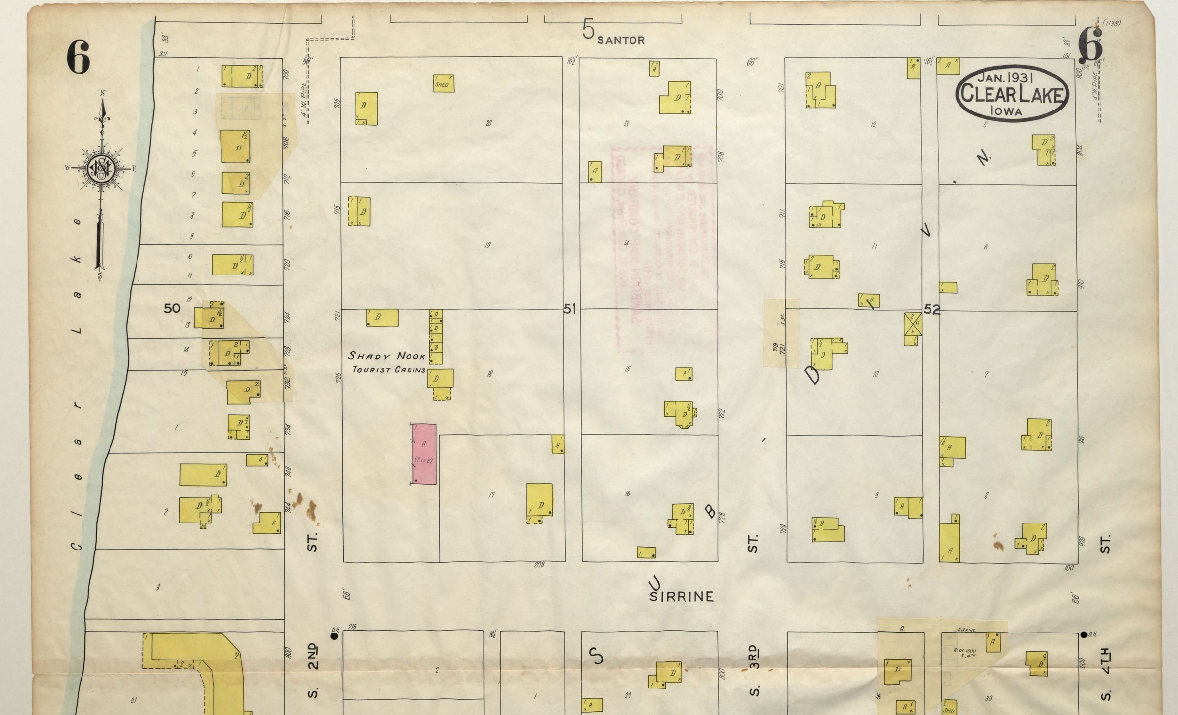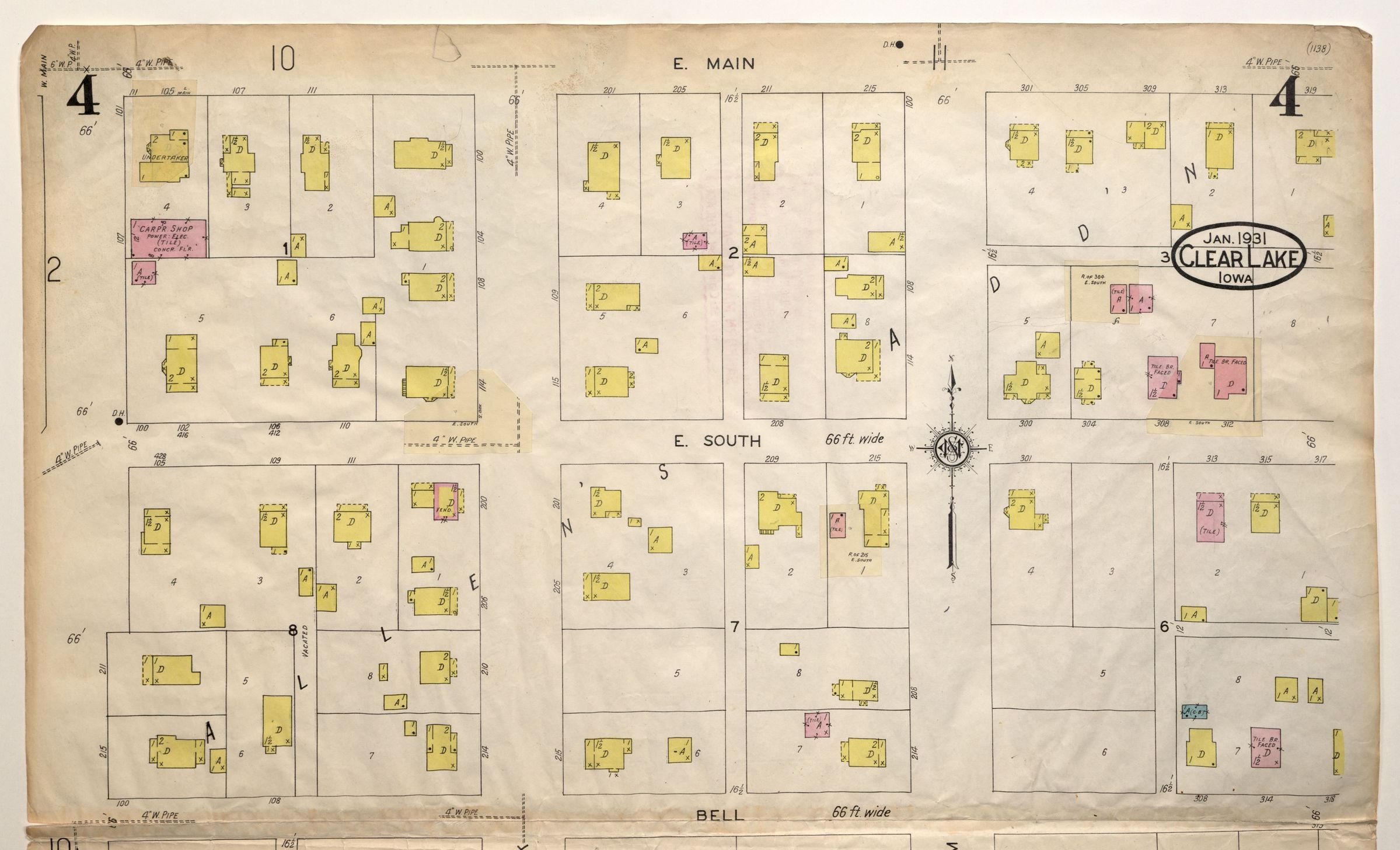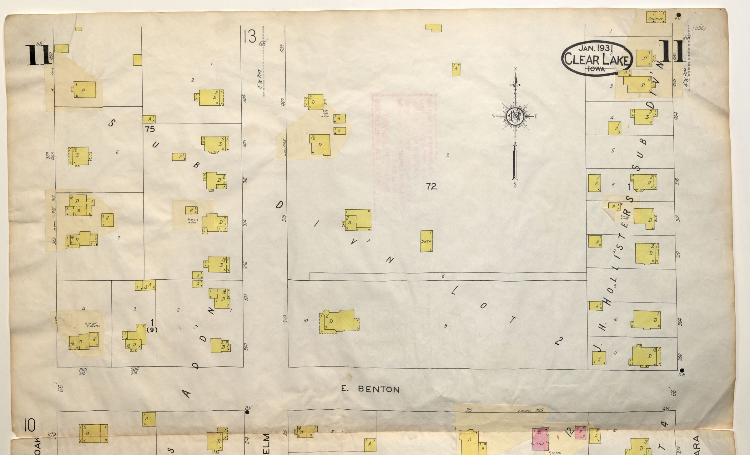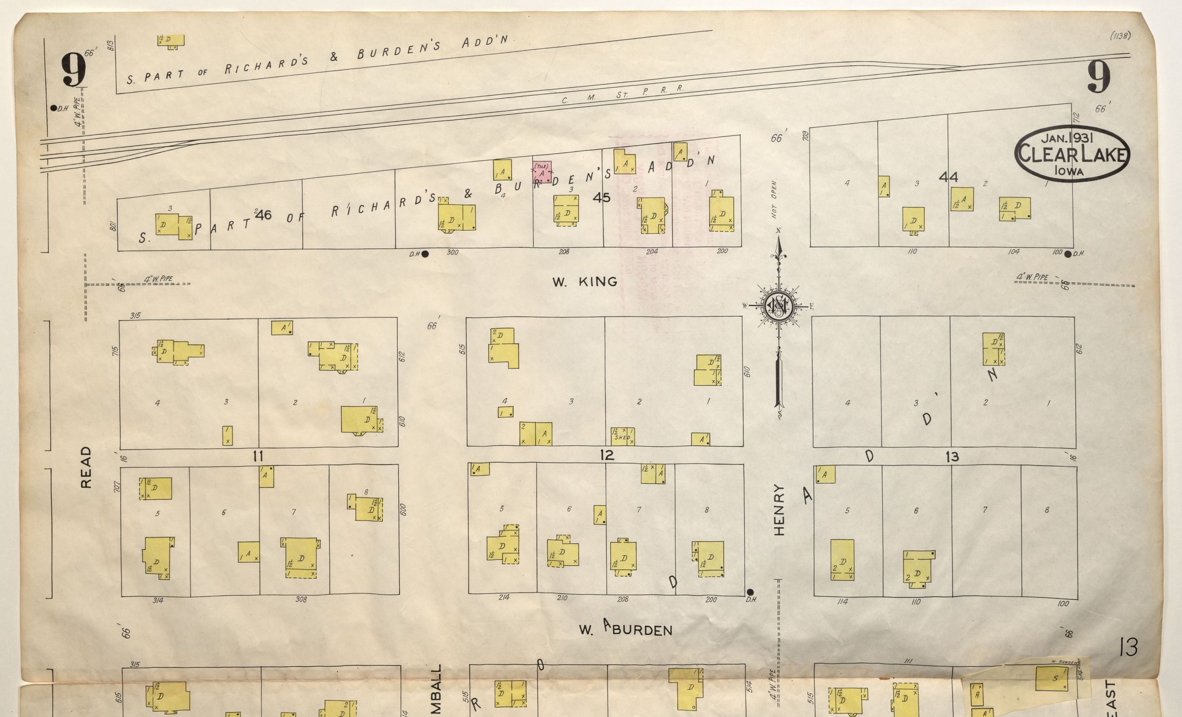 1931 Sanborn Map Clear Lake showing majority of the city. Map is printed on 21" x 25" sheets at a scale of 1"=50'( 1-600) Thirteen sheets noted as Upper and Lower page.