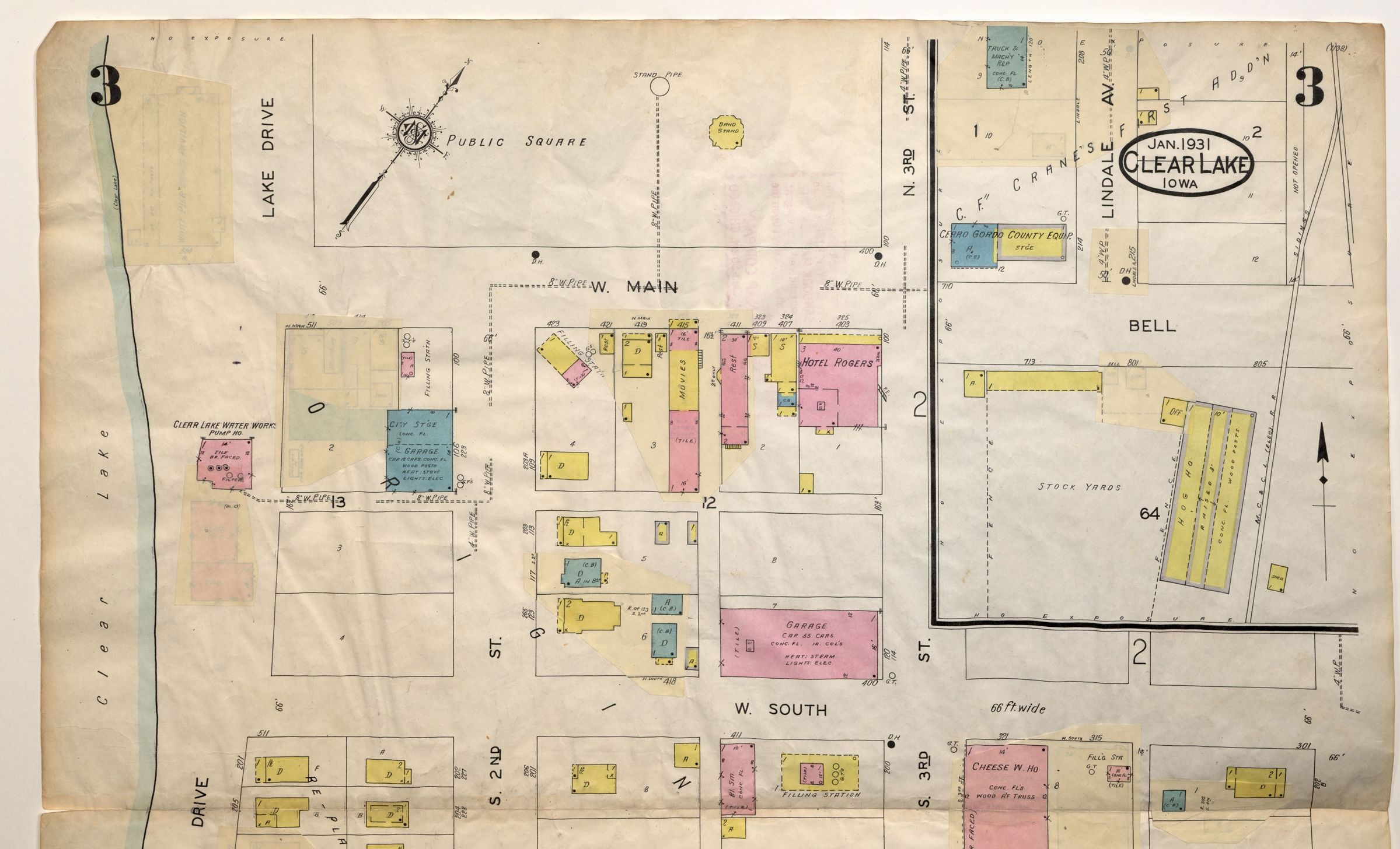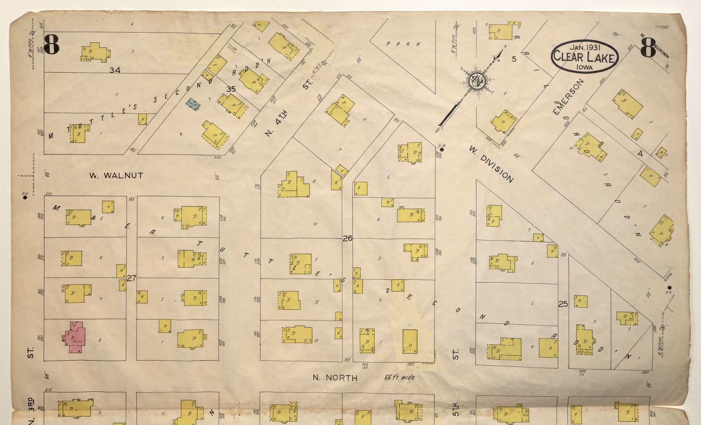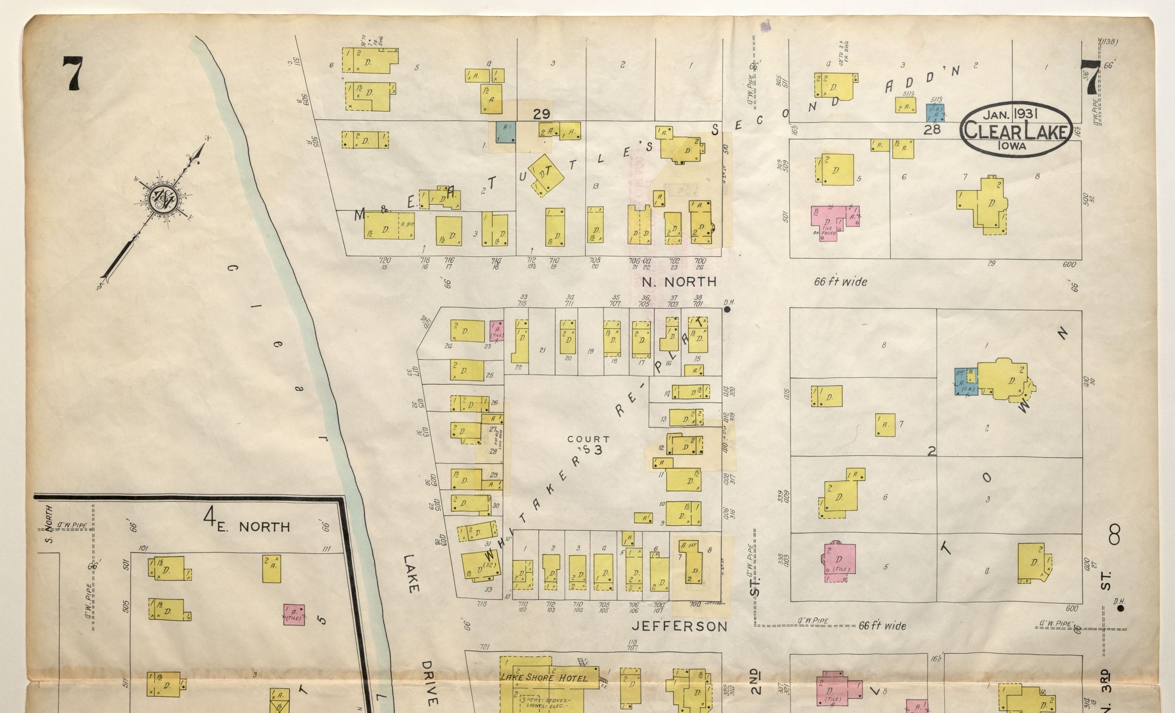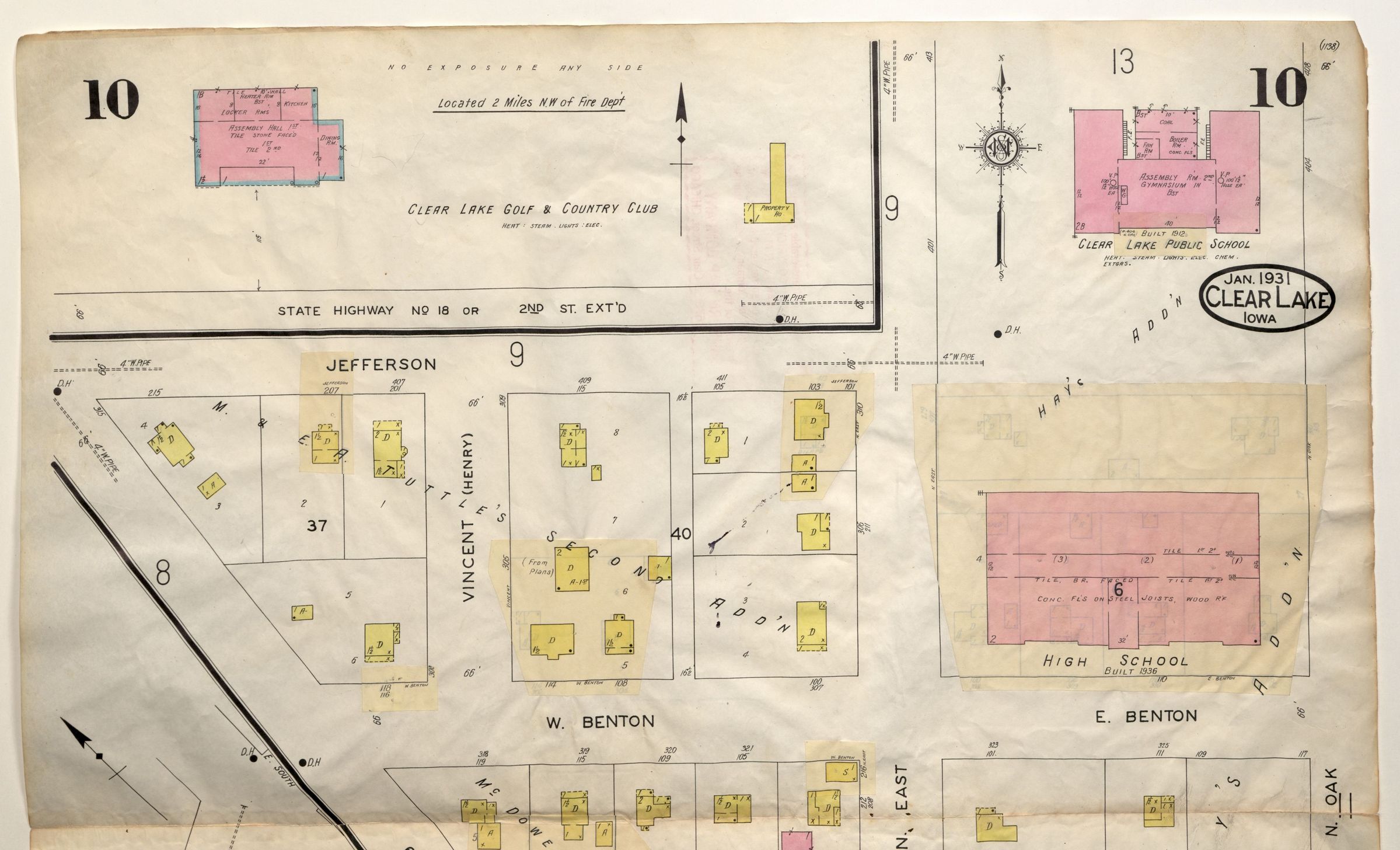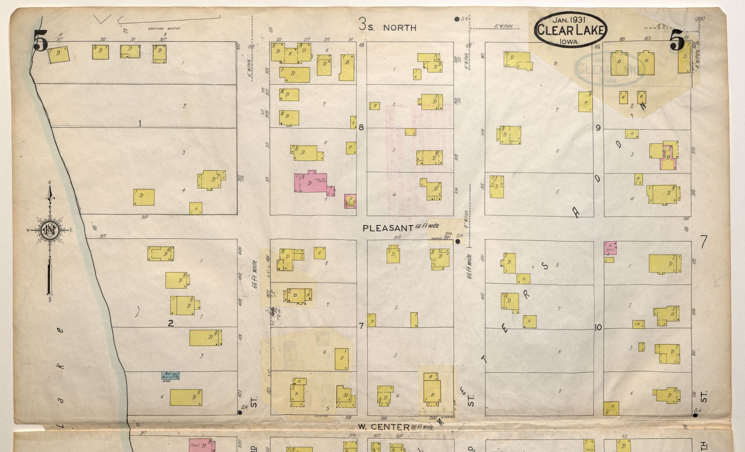 1931 Sanborn Map Clear Lake showing majority of the city. Map is printed on 21" x 25" sheets at a scale of 1"=50'( 1-600) Thirteen sheets noted as Upper and Lower page.