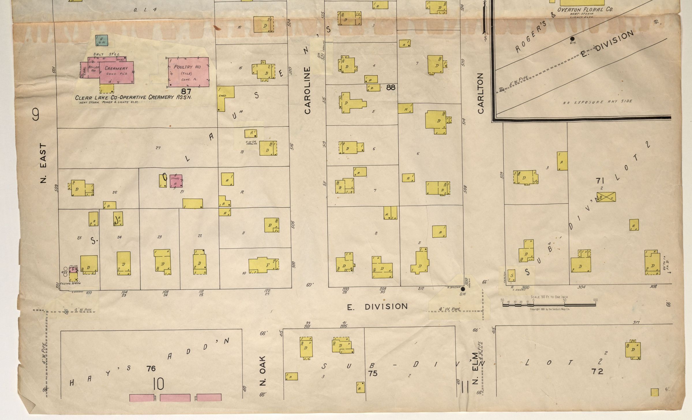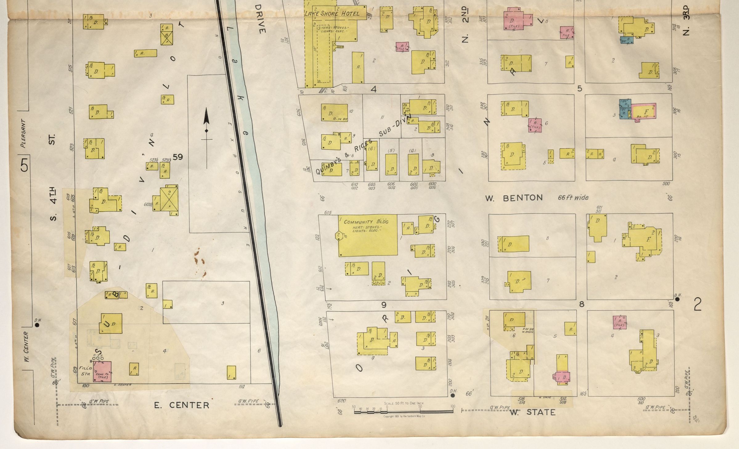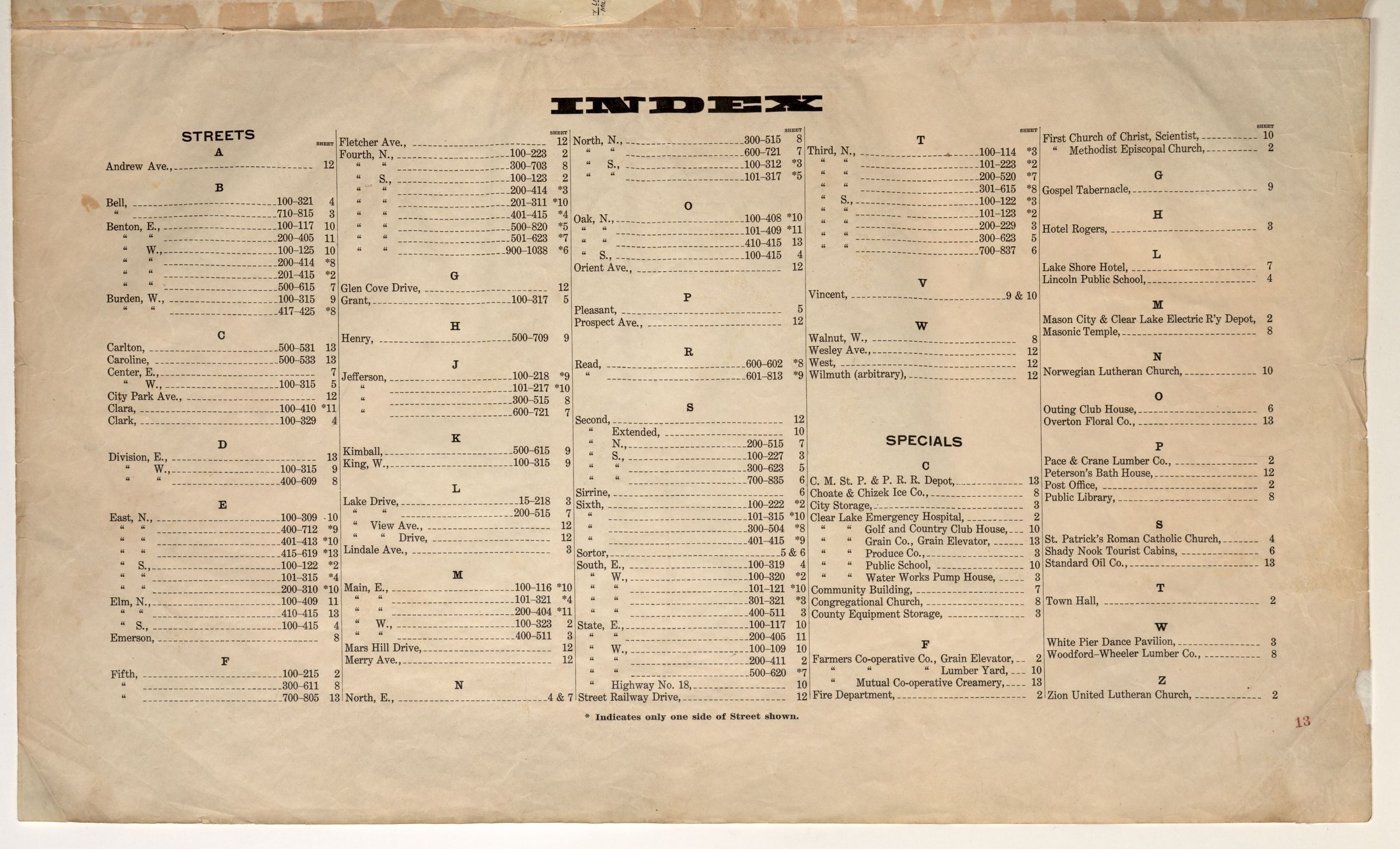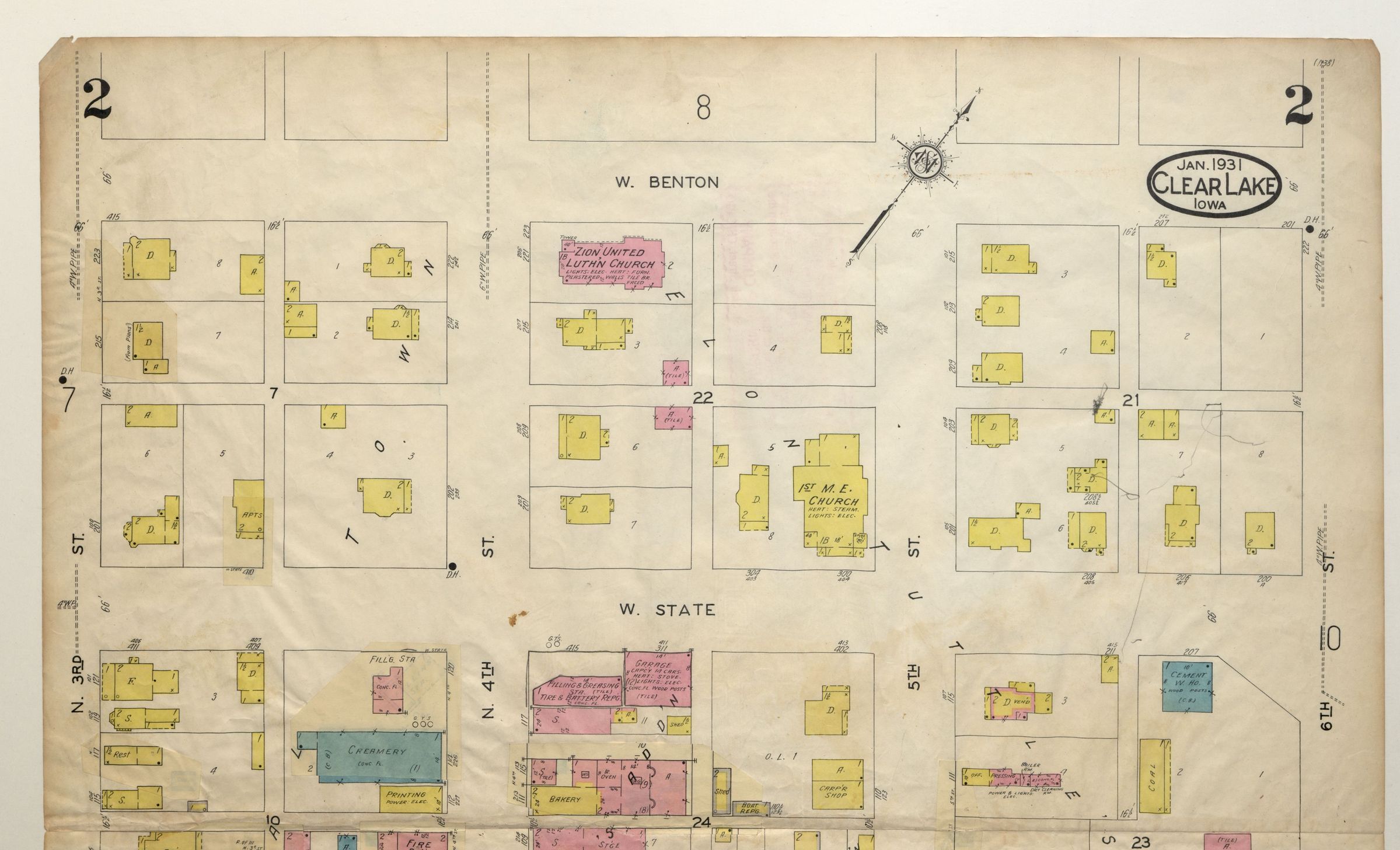 1931 Sanborn Map Clear Lake showing majority of the city. Map is printed on 21" x 25" sheets at a scale of 1"=50'( 1-600) Thirteen sheets noted as Upper and Lower page.