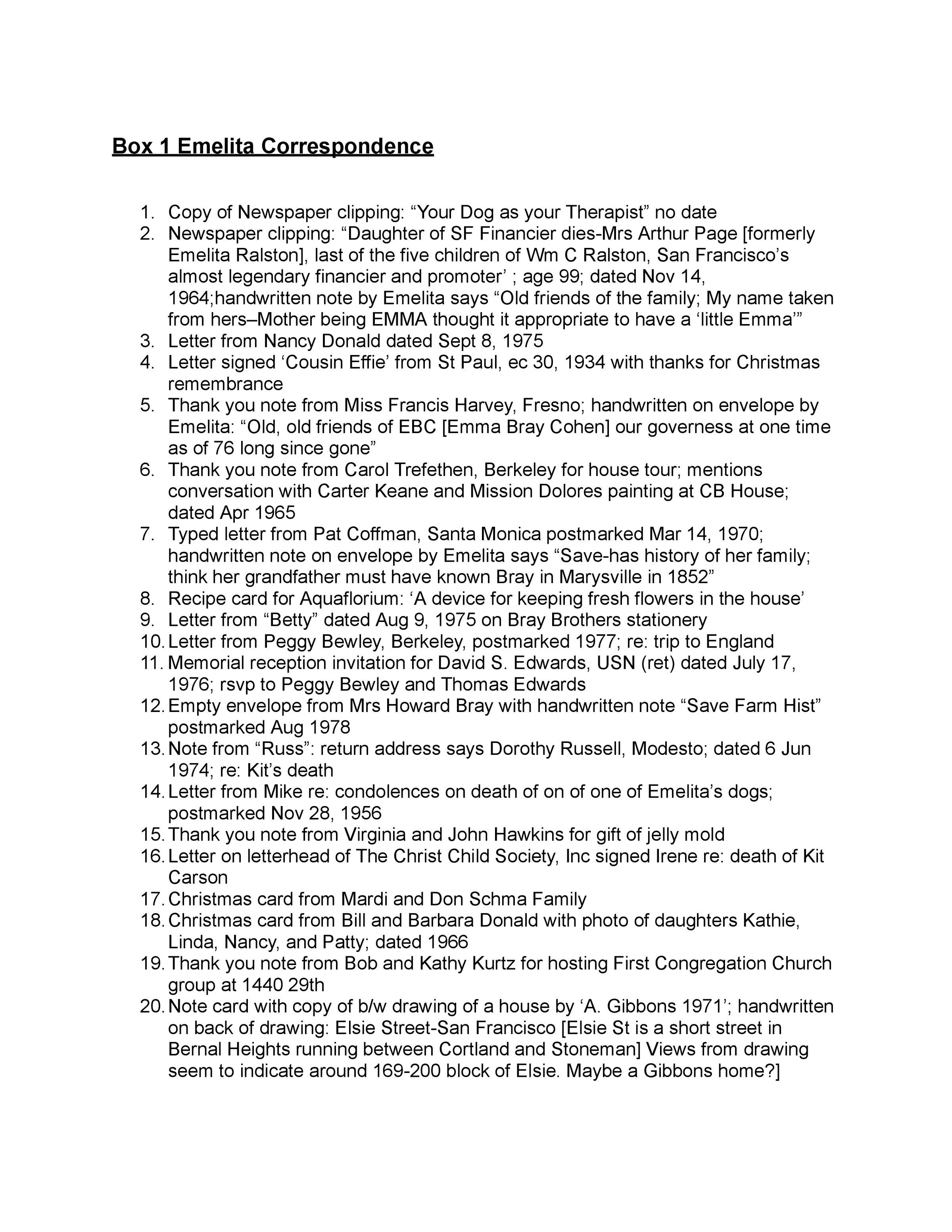 Emelita Cohen Correspondence (small items)