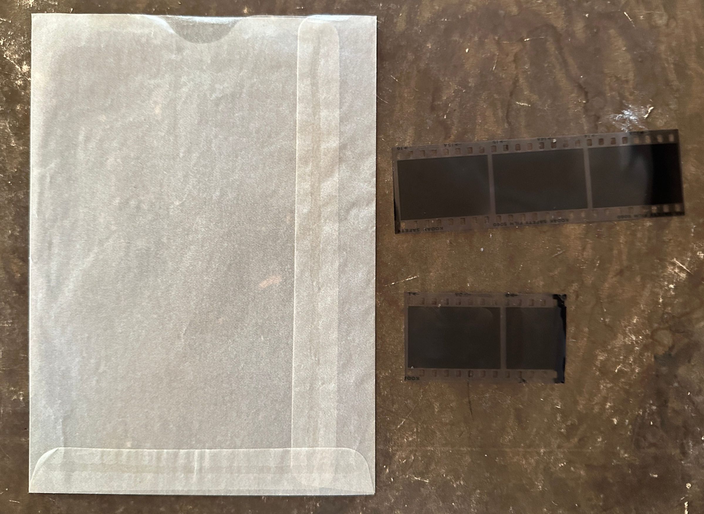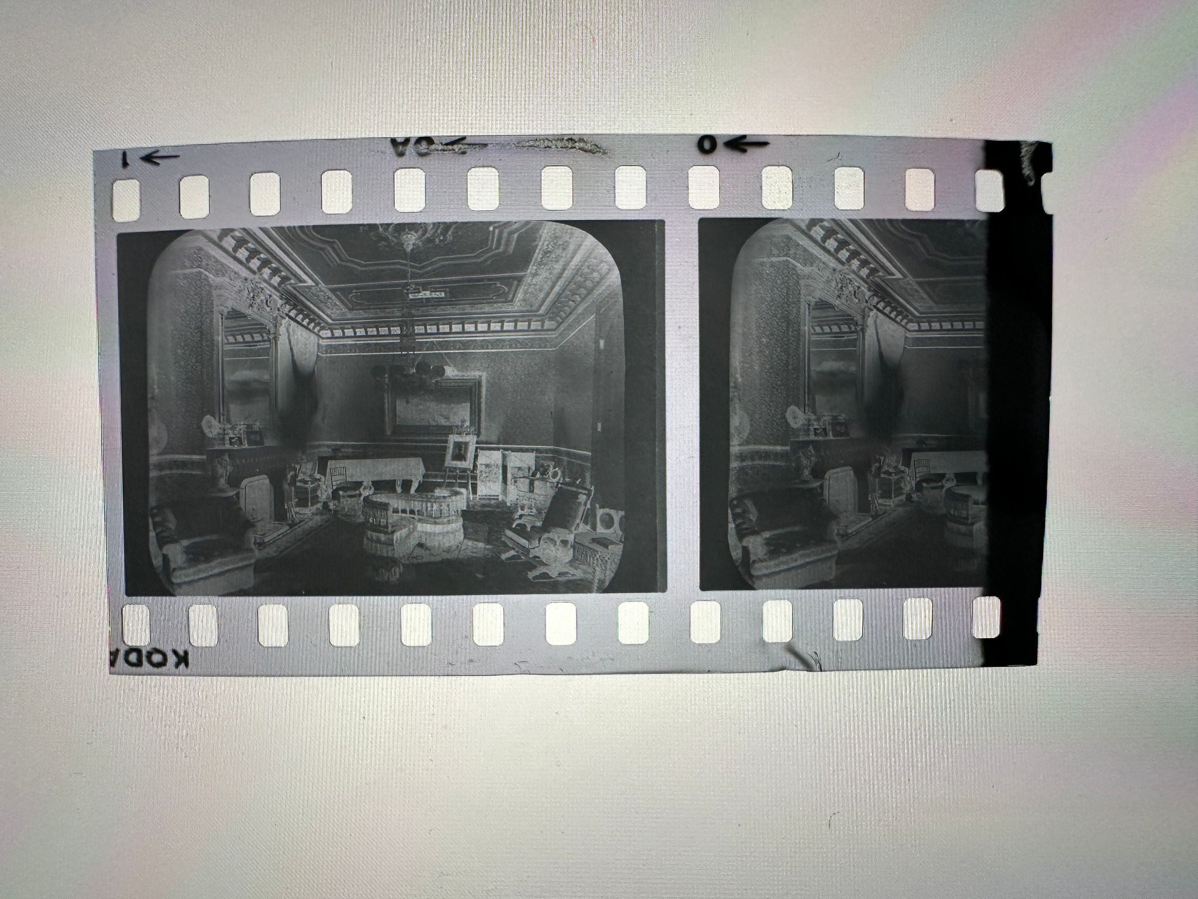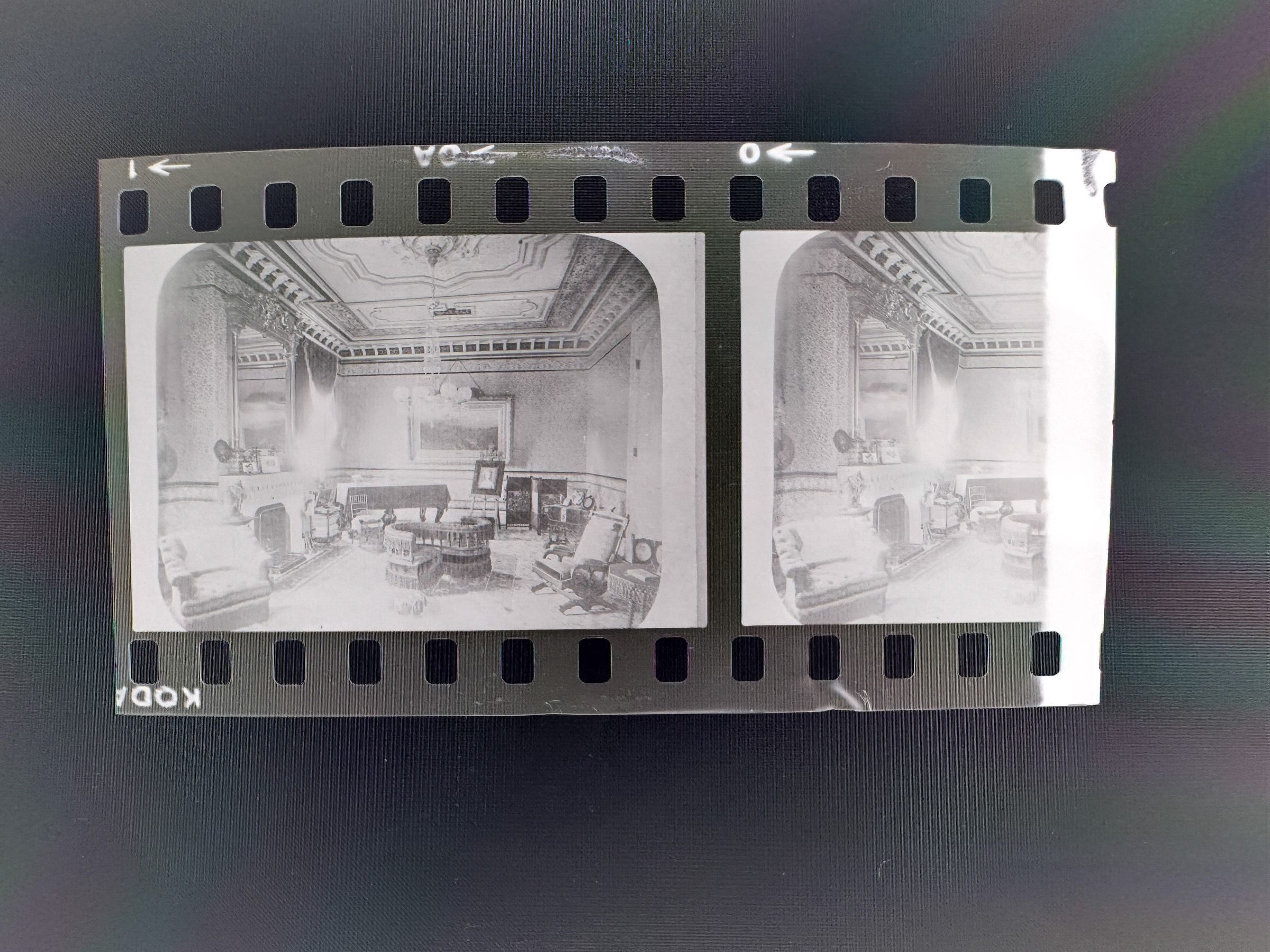 A photo negative strip of one of the rooms in Fernside