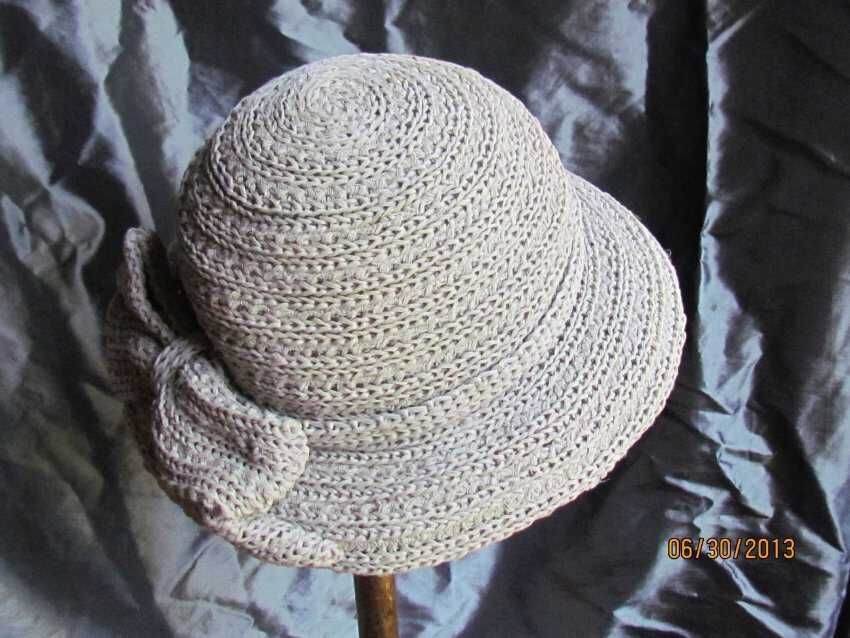 2013.93 Hat, gray knitted raffia with bow embellishment, small brim picture or portrait hat, label says "Cooney of California Original by Everitt Patented",Collection