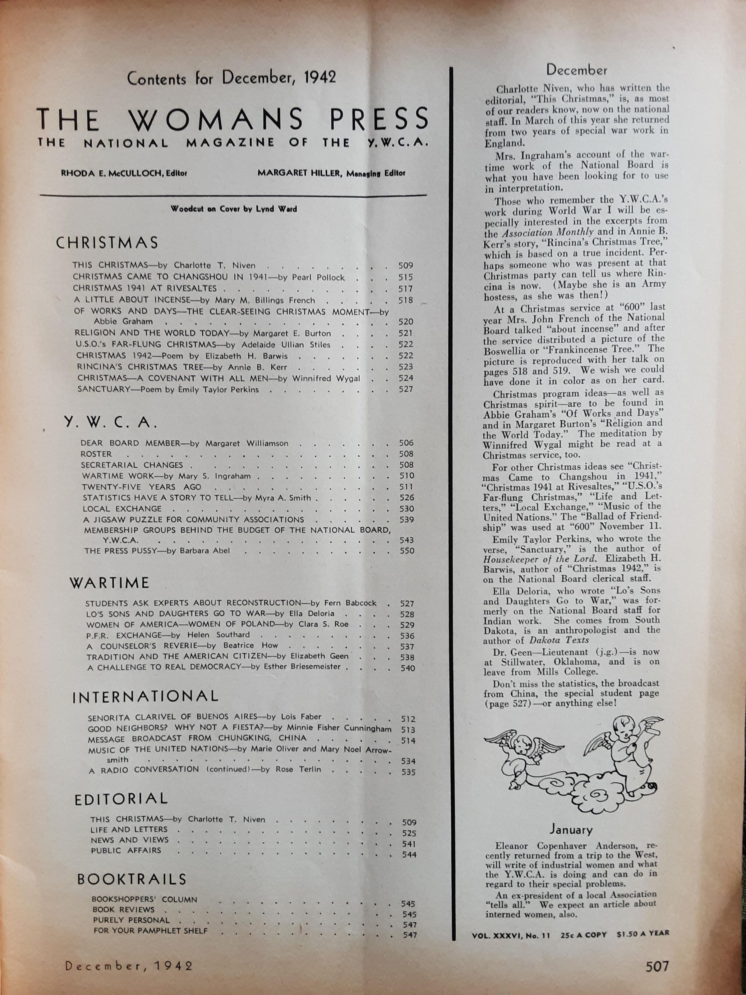 December: Charlotte Niven, who has written the editorial, "This Christmas," is, as most of our readers know, now on the national staff...