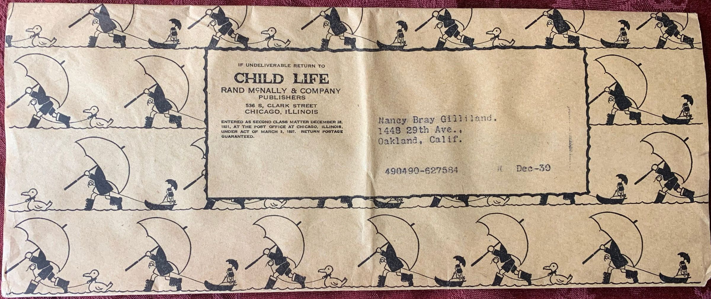 Child Life magazine Envelope 9 with rainy day boy design, "Dec-30."Inscription/Signature/Marks