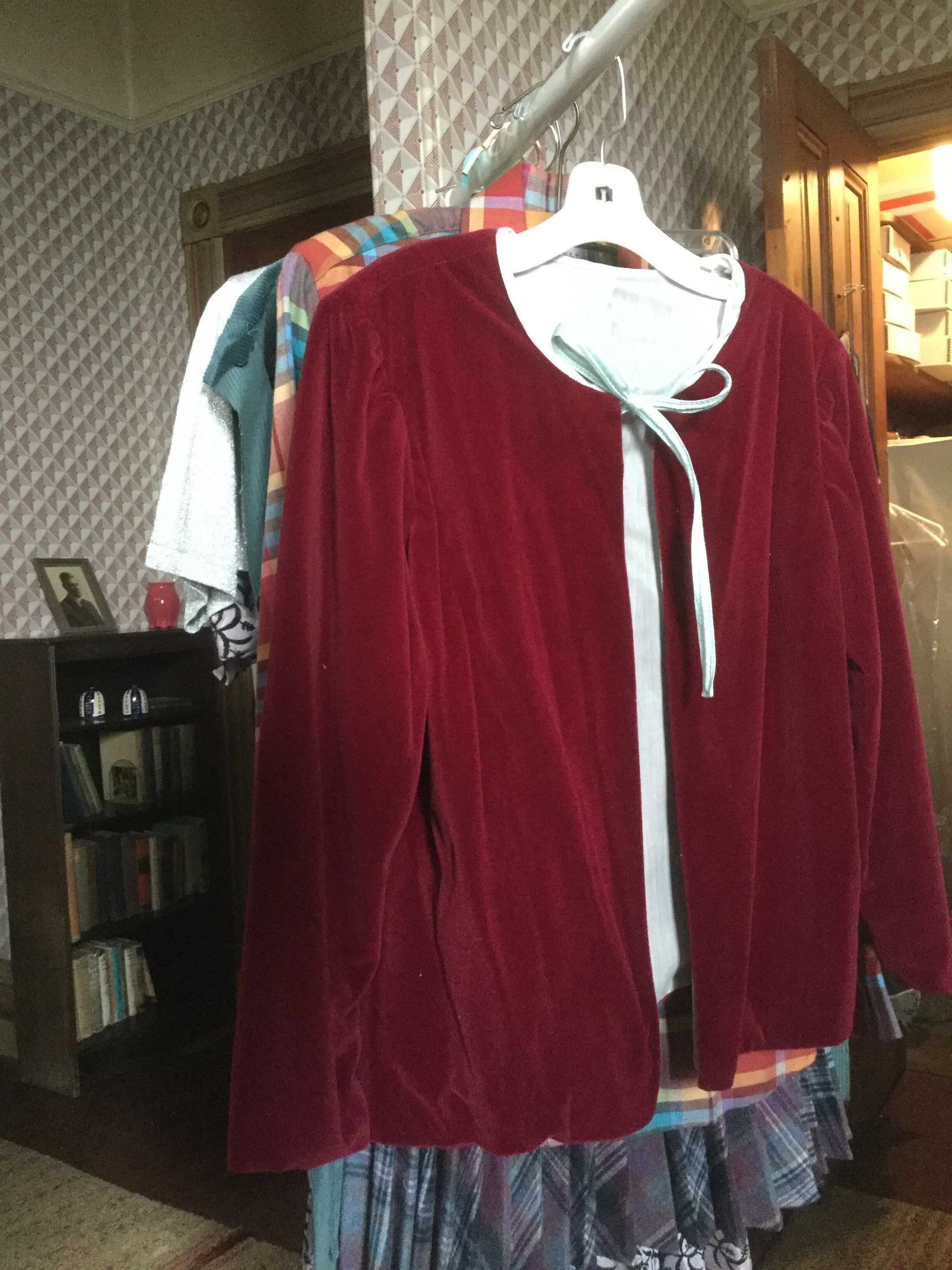 jacket,bed, red velvet, lined light blue, Insect dm slight