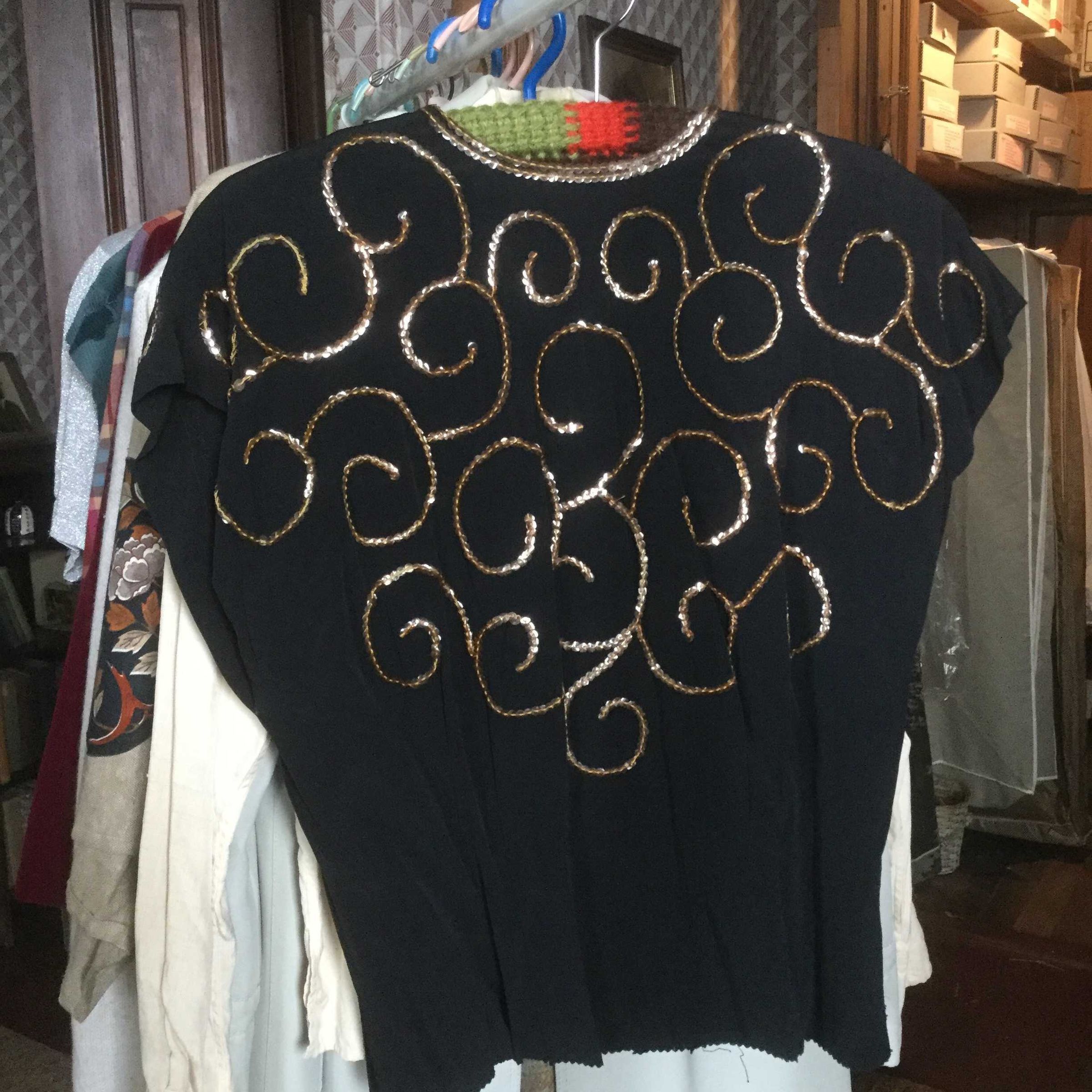 top,black knit, gold sequin swirled decoration,HM taylored, Insect back