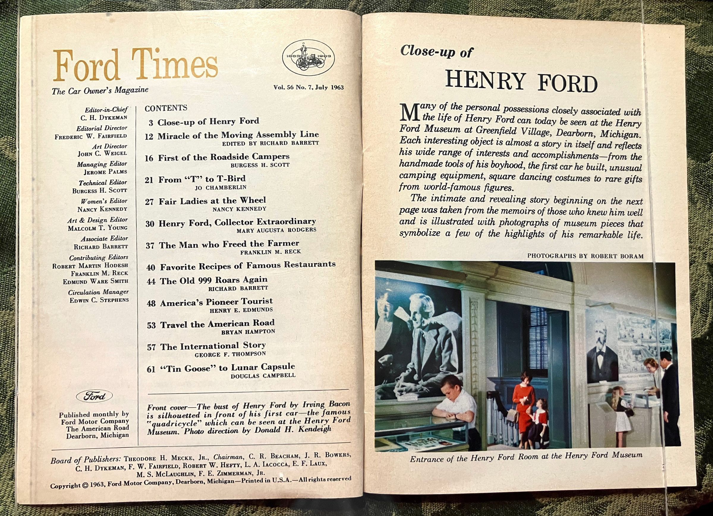 Ford Motor Company published Ford Times magazine from 1908 to 1917 and again from 1943 to 1993. Intended for dealers and consumers, the publication was key to Ford's public relations efforts. With articles emphasizing a range of topics, including automobiles but also recreation, food, history, nature, and culture, Ford Times became an important document of 20th-century American life. - The Henry FordCreate Date