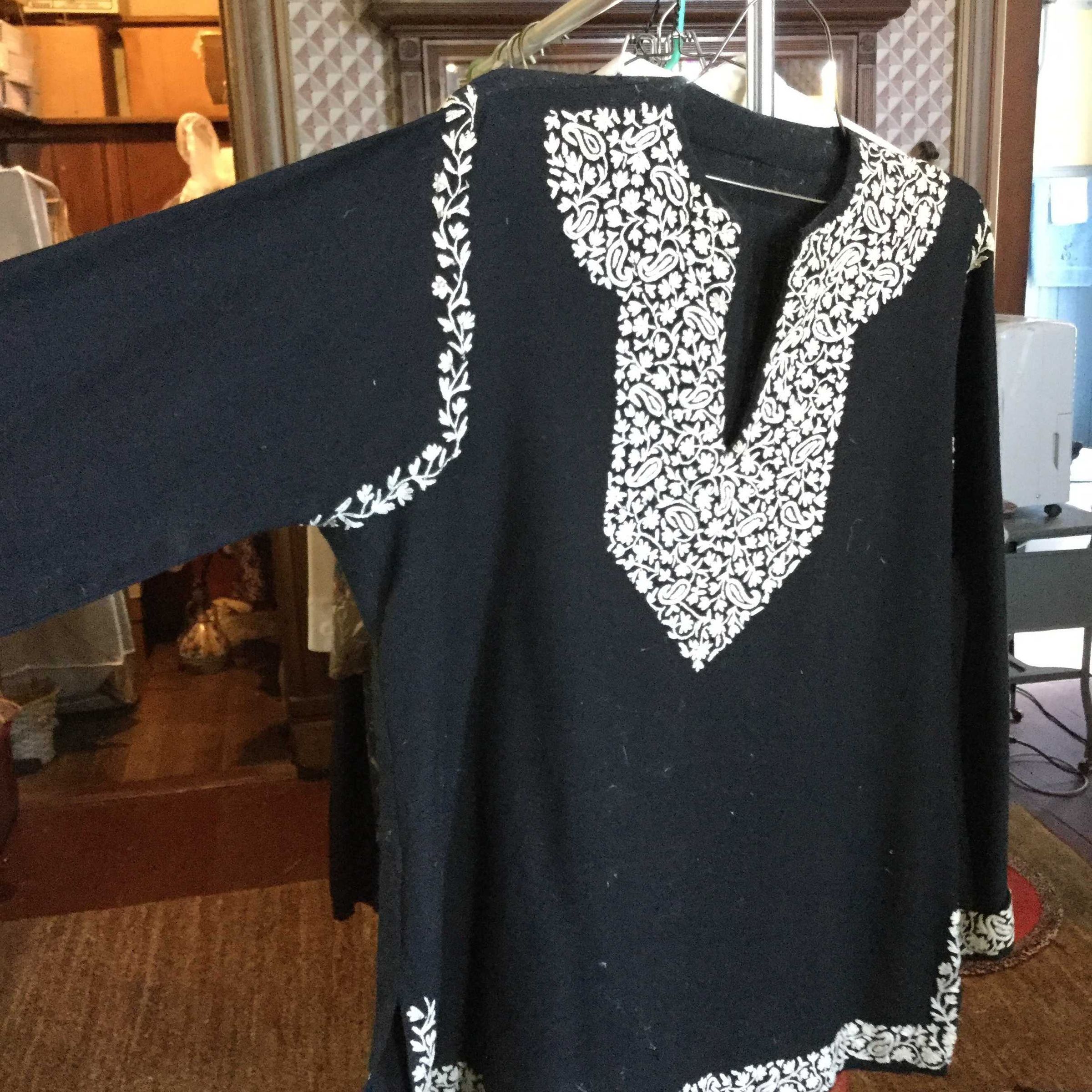 tunic, black w/ white embroidery