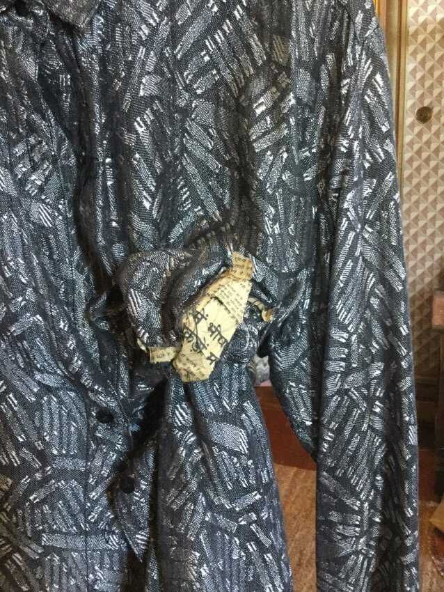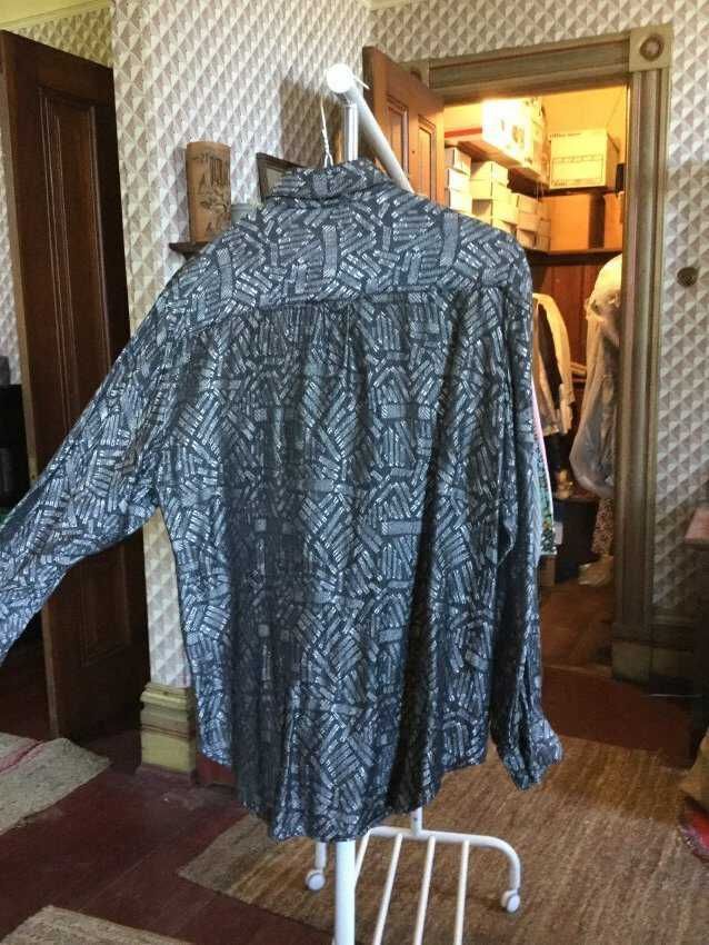 blouse, black silver alstract pattern, India, pocket, paper interfacing