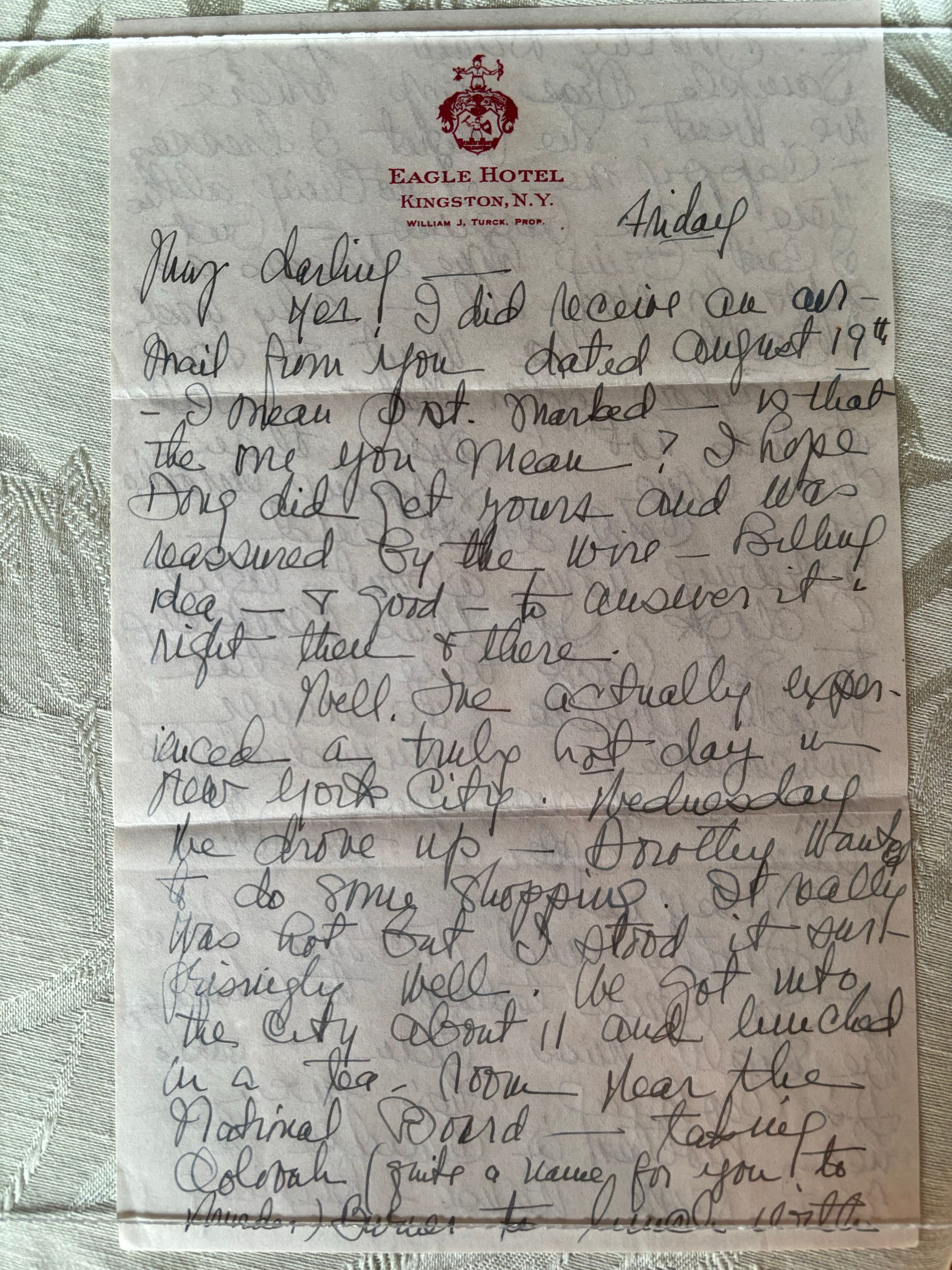 This letter is from when Emelita was back in Milford Connecticut, in Laurel Beach. She is responding to Emma's letter to her from August 19th. She also update Emma on the weather of where she is staying and the friends she is with, Victoria and Dorothy.Create Date