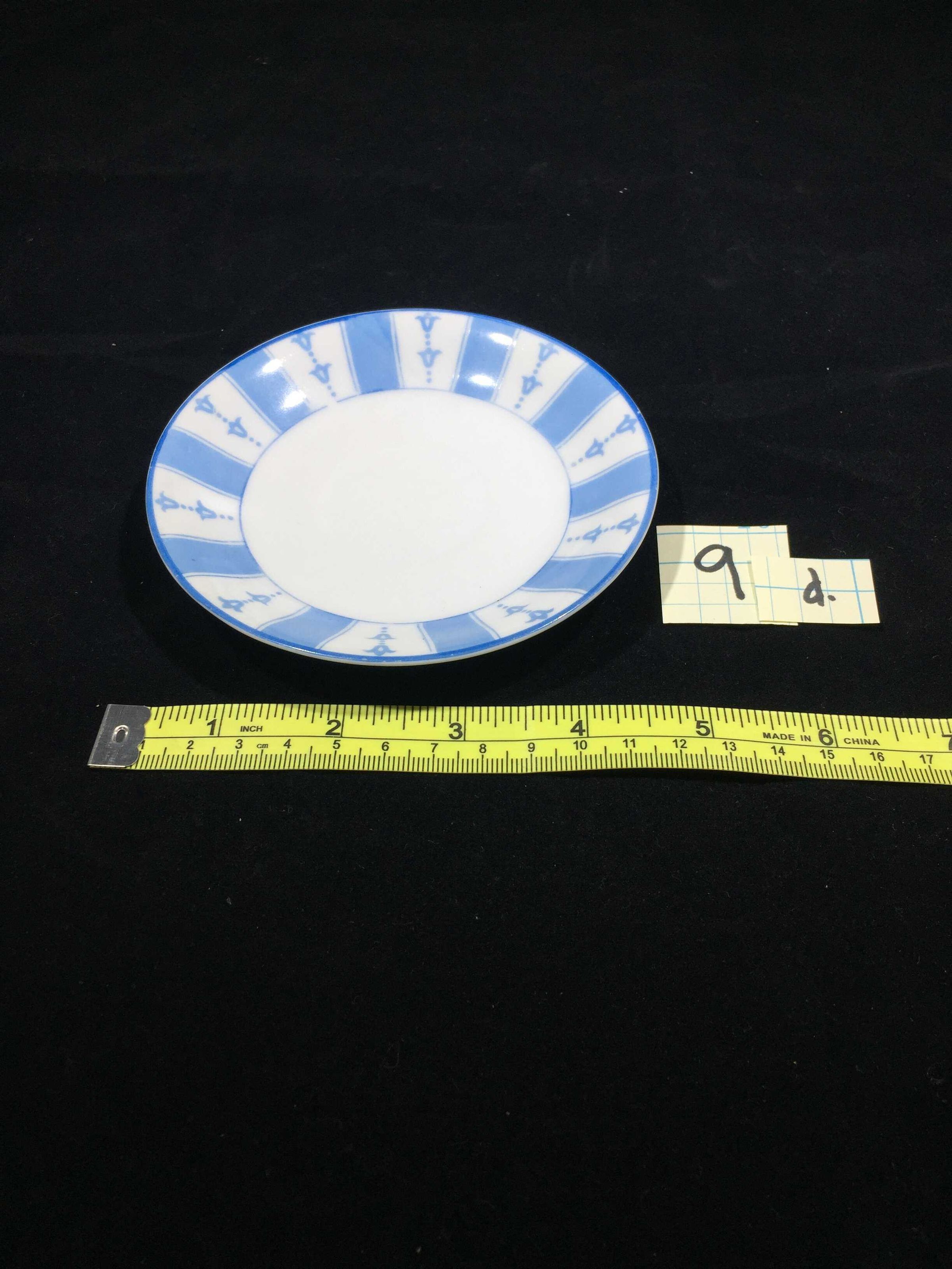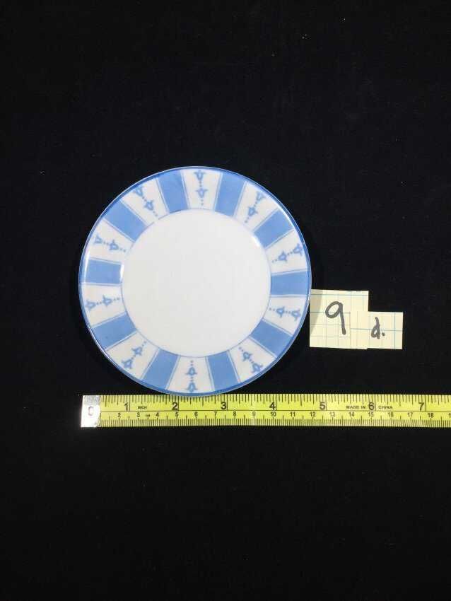 White with blue striped design saucer part of set 2 cups 4 saucers
