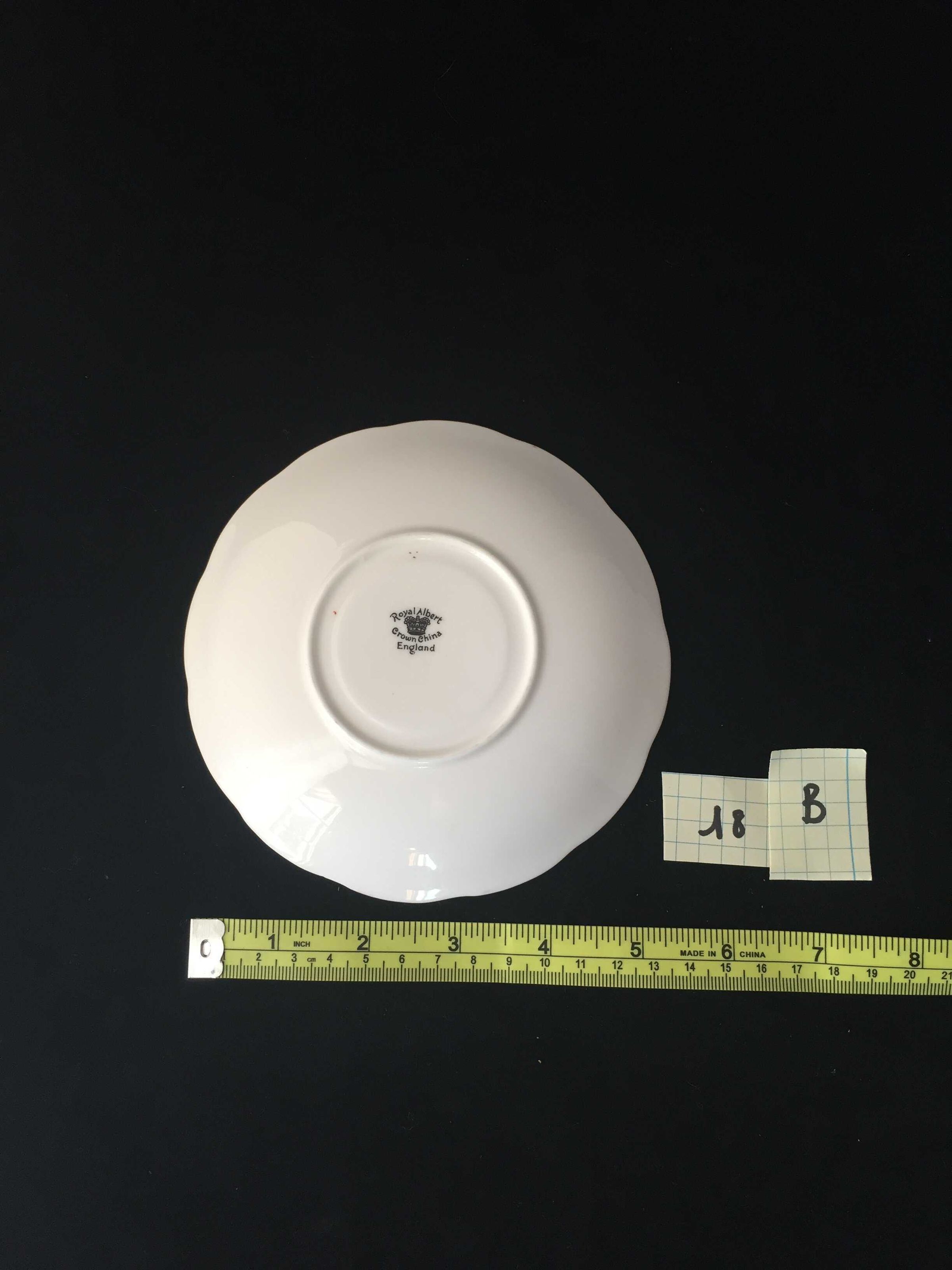 INSCRTECH: Stamped; INSCRTEXT: "Royal Albert"/ Crown symbol/ "Crown China"/ "England"/ Three tiny gold dots; INSCRTYPE: Manufacturer's MarkCreate Date
