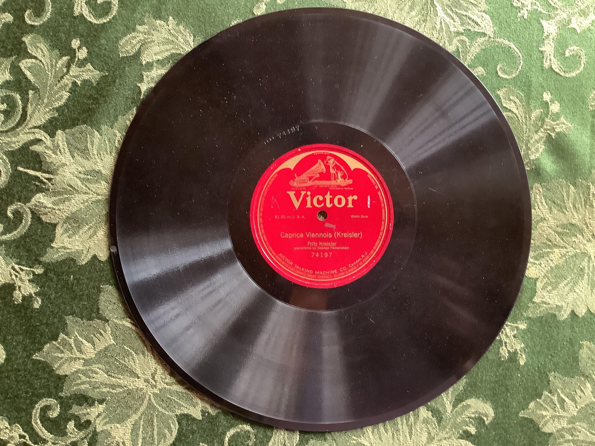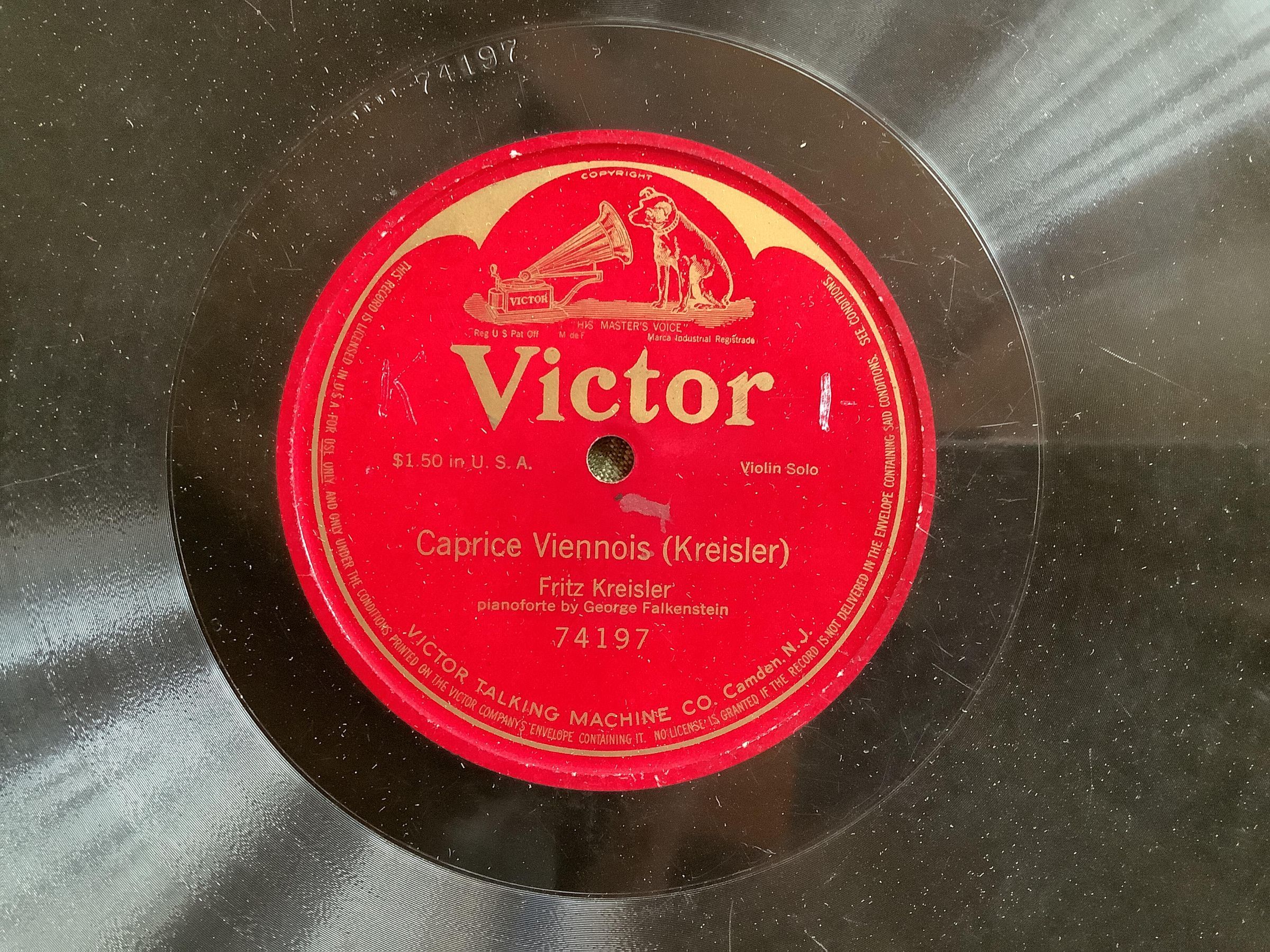 Victrola record. Violin solo. Caprice Viennois (Kreisler) - Fritz Kreisler, pianoforte by George Falkenstein. 74197.