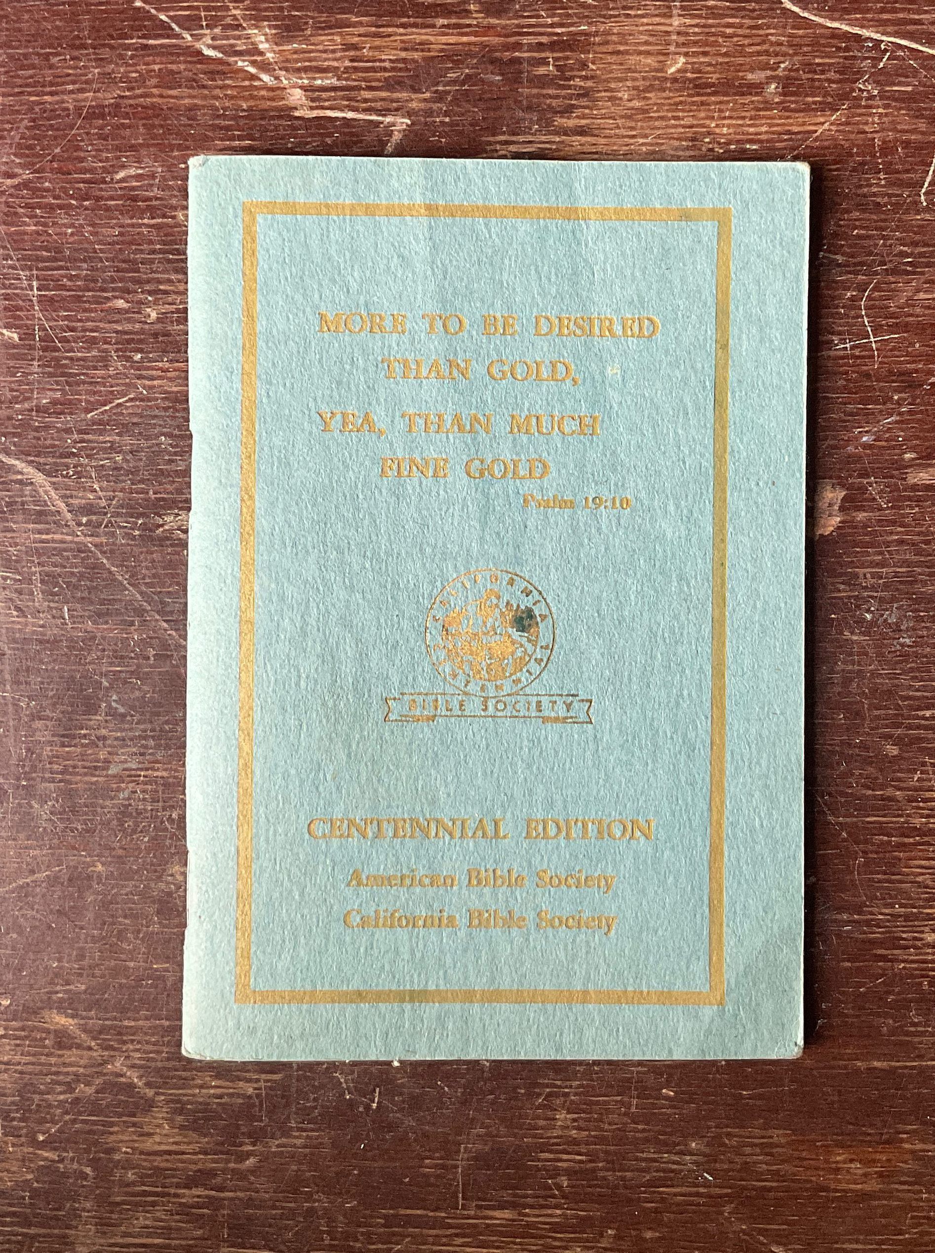 A book of Psalms from the American Bible Society and California Bible Society, Centennial Edition. The book is translated out of the original Hebrew and with the former translations diligently compared and reviewed. Set Forth in 1611 and commonly known as the King James VersionInscription/Signature/Marks