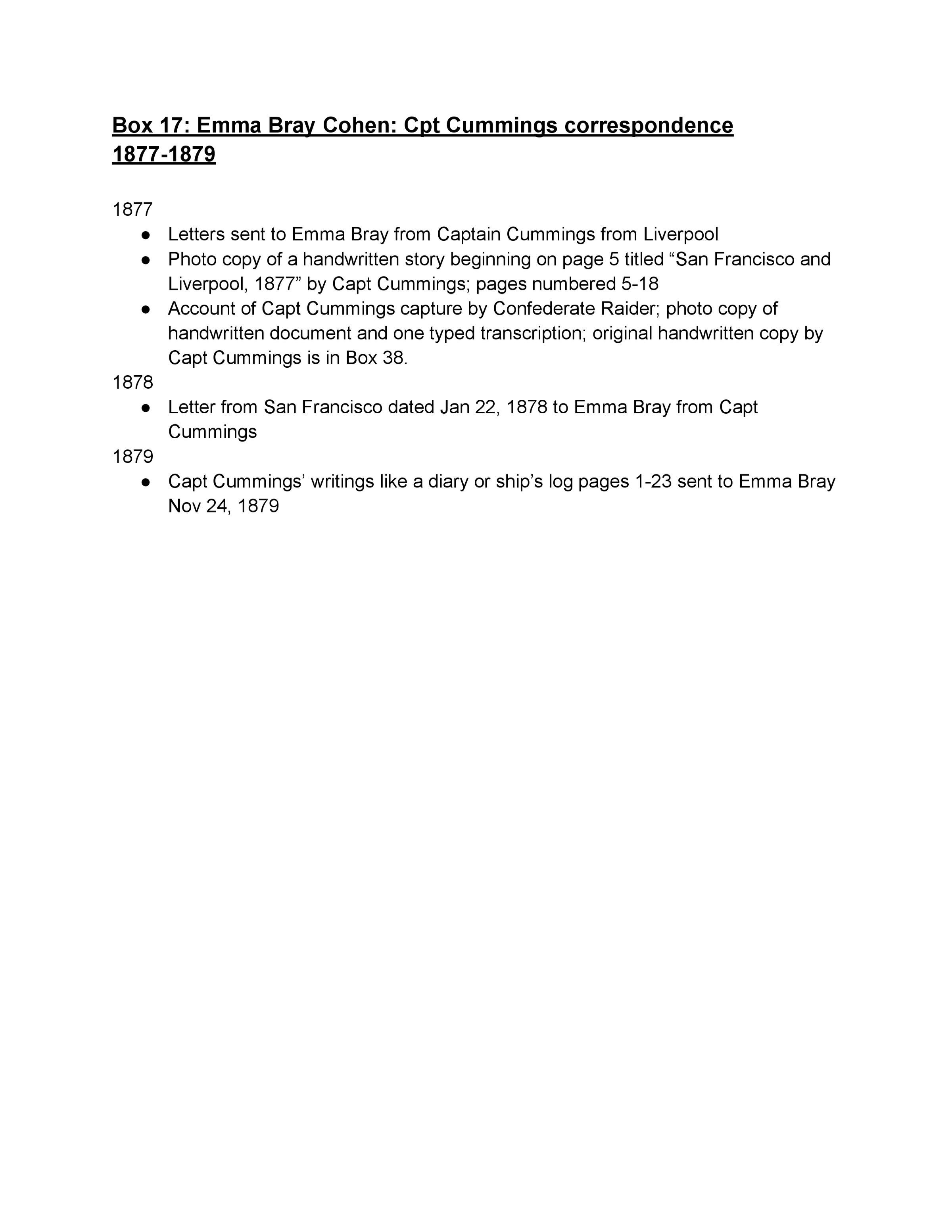 17. Emma B. Cohen: Correspondence with Capt Cummings 1877-1882