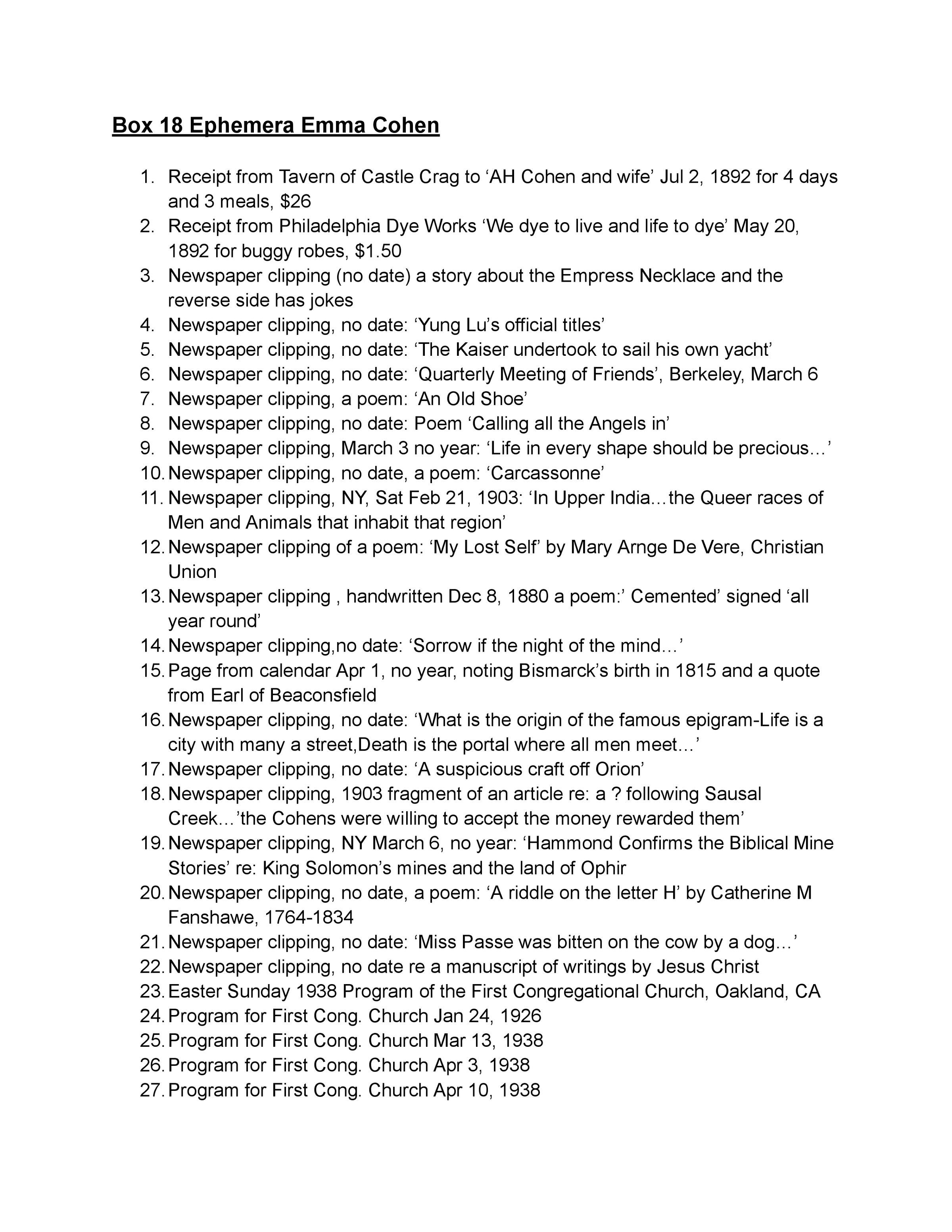 19. Emma B Cohen: EphemeraEntry/Object ID