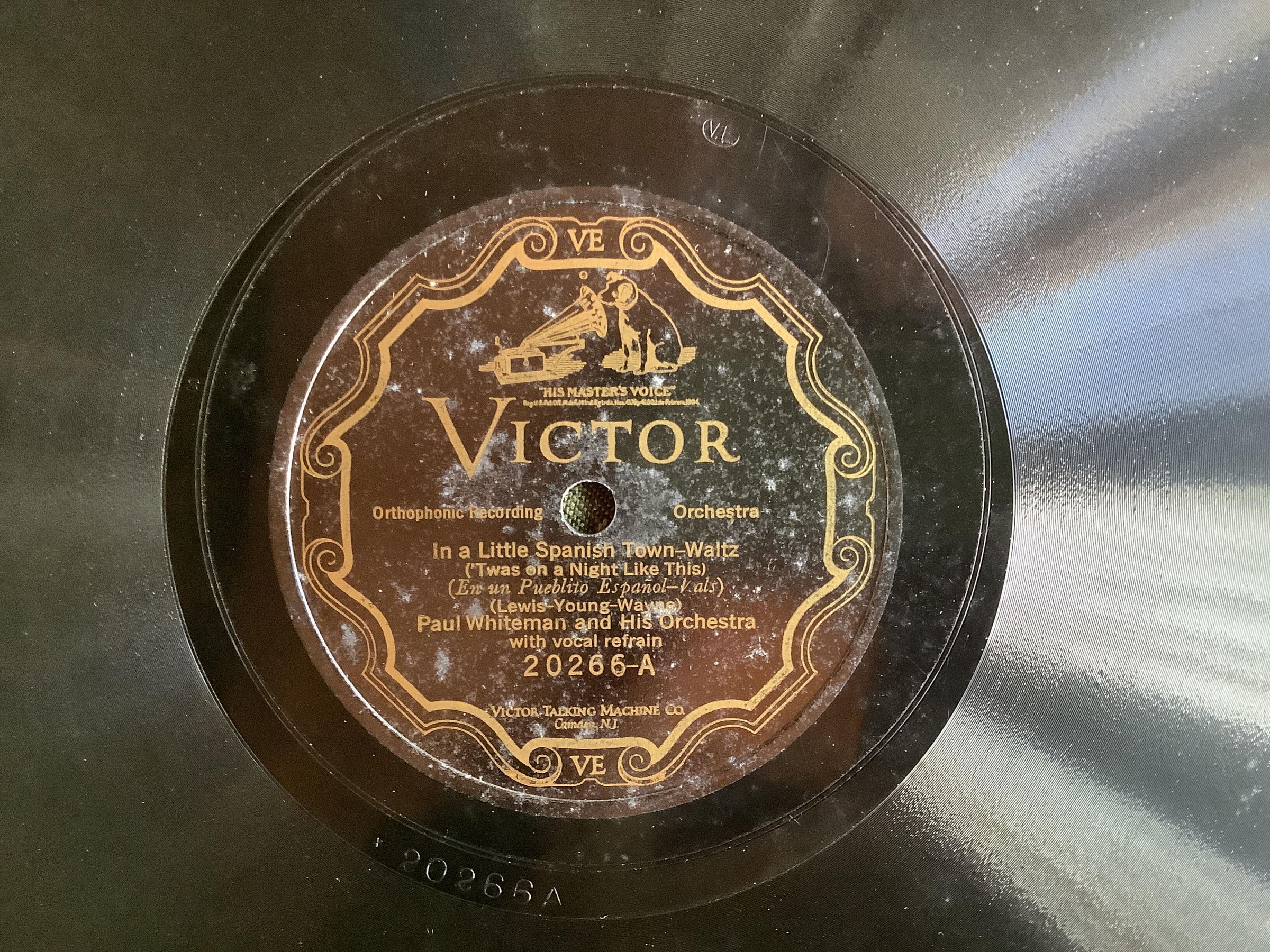 Side A: In a Little Spanish Town - Waltz ('Twas on a Night Like This) (En un Pueblito Español - Vals). Lewis - Young - Wayne. Paul Whiteman and His Orchestra with vocal refrain. 20266-A.