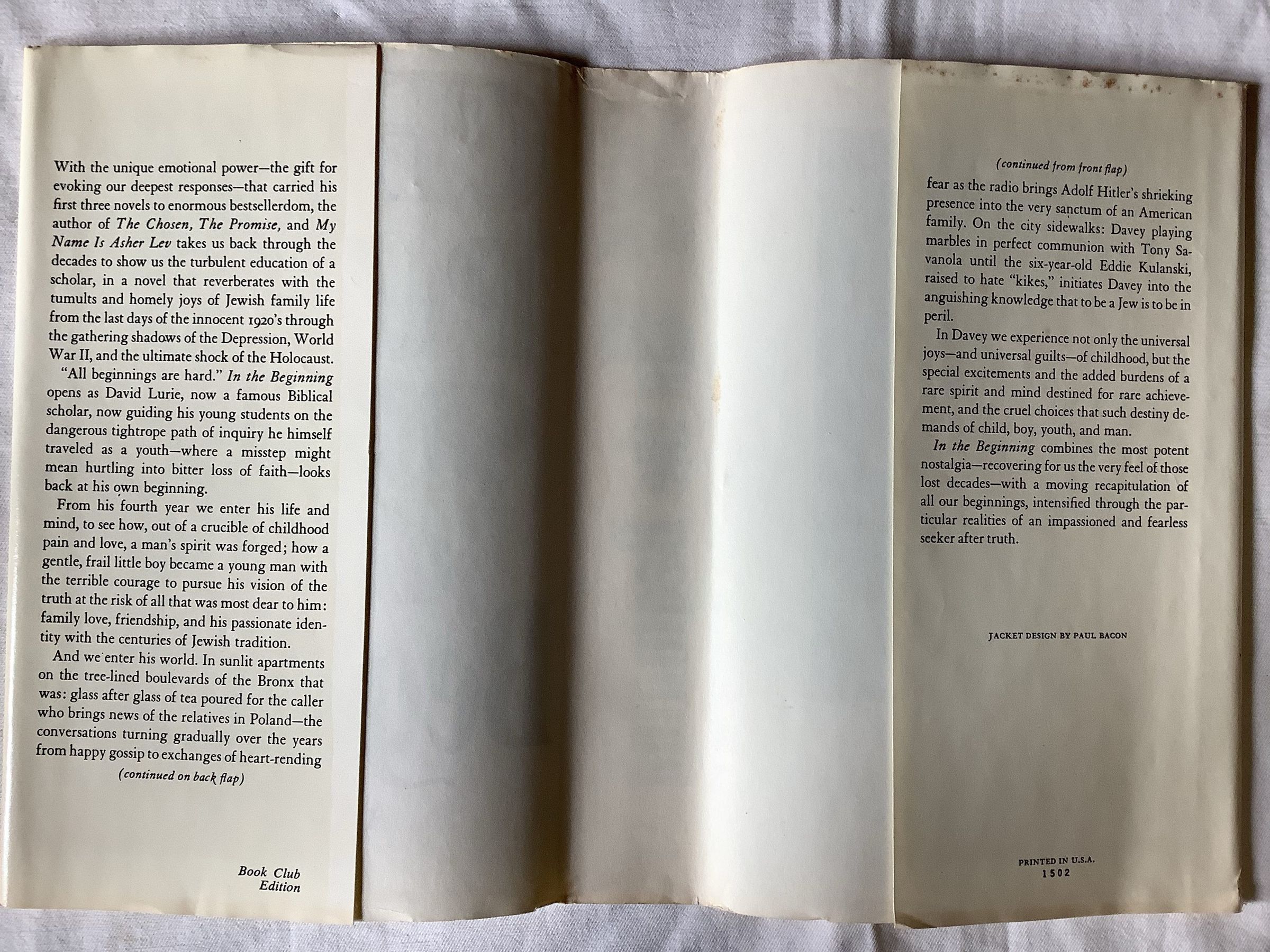 The novel, set in the Bronx, New York, concerns a gifted Jewish boy who becomes a Biblical scholar. From shortly after birth, in the 1920's, David Lurie is plagued by illnesses that prove to be emblematic of his growing up. He is bullied by bigger boys, haunted by the "accidents" that he brings upon others, safe only within his pious home. David's inner life, tortured with fears and bad dreams is followed through the Depression, which nearly ruins his family; through the late thirties and forties, as the news from Europe grows more and more dreadful; and into his budding years as a scholar. --WorldCatInscription/Signature/Marks