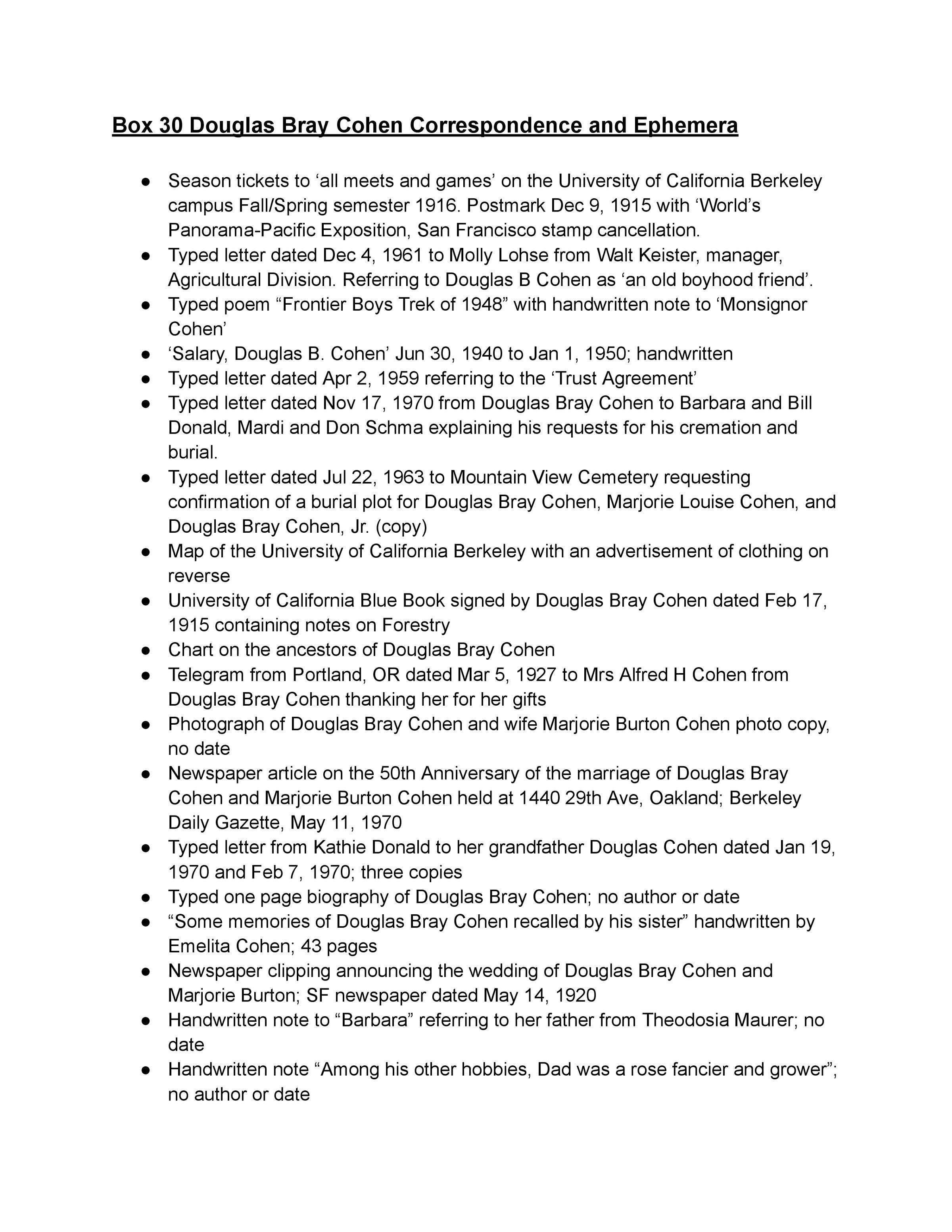 30. Douglas Bray Cohen: Correspondence and Ephemera