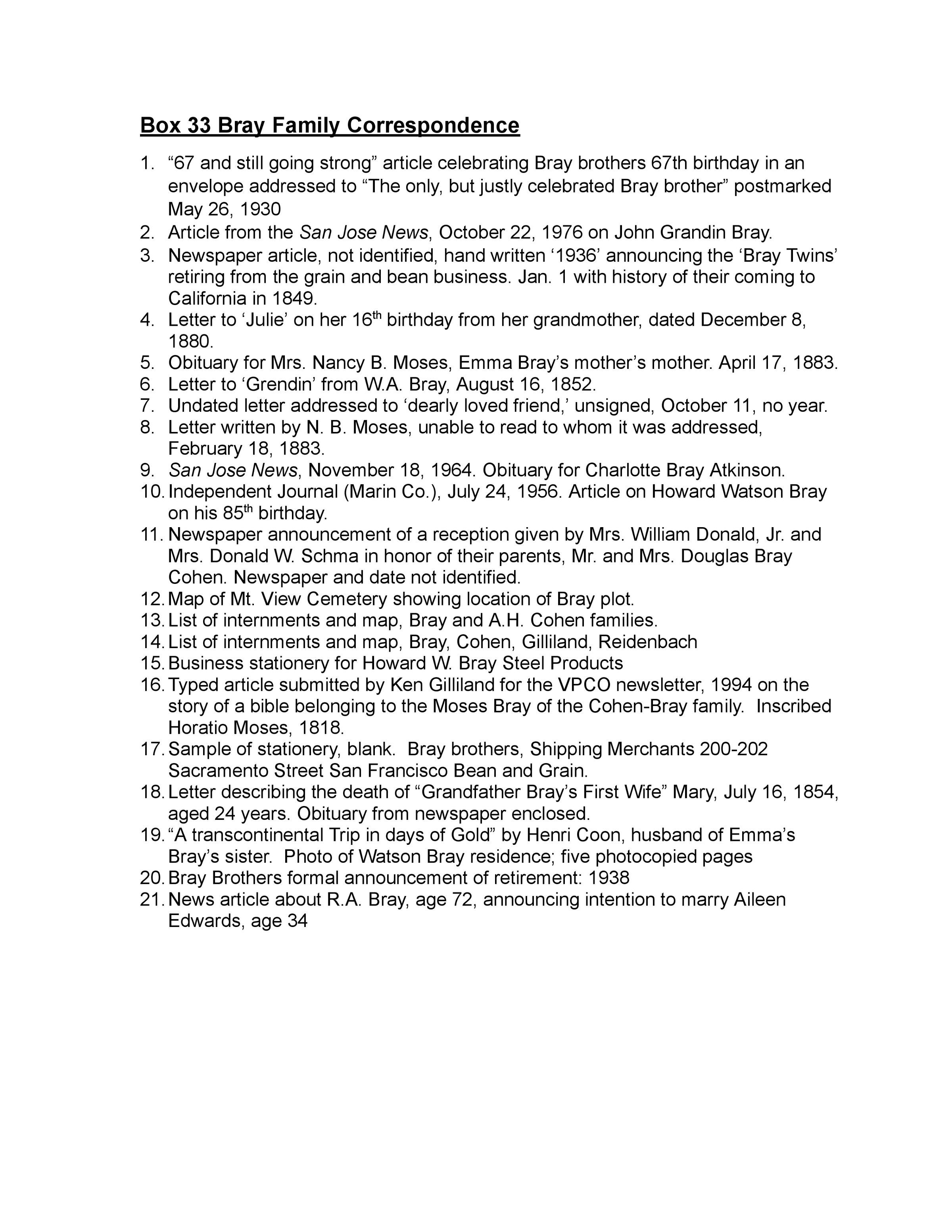 Collection of letters, newspaper clippings, and notes relating to the Augustus and Julie Bray family of OakTree Farm, Oakland including list of internments and plot map of Mountain View Cemetery where the Brays are buriedCreate Date