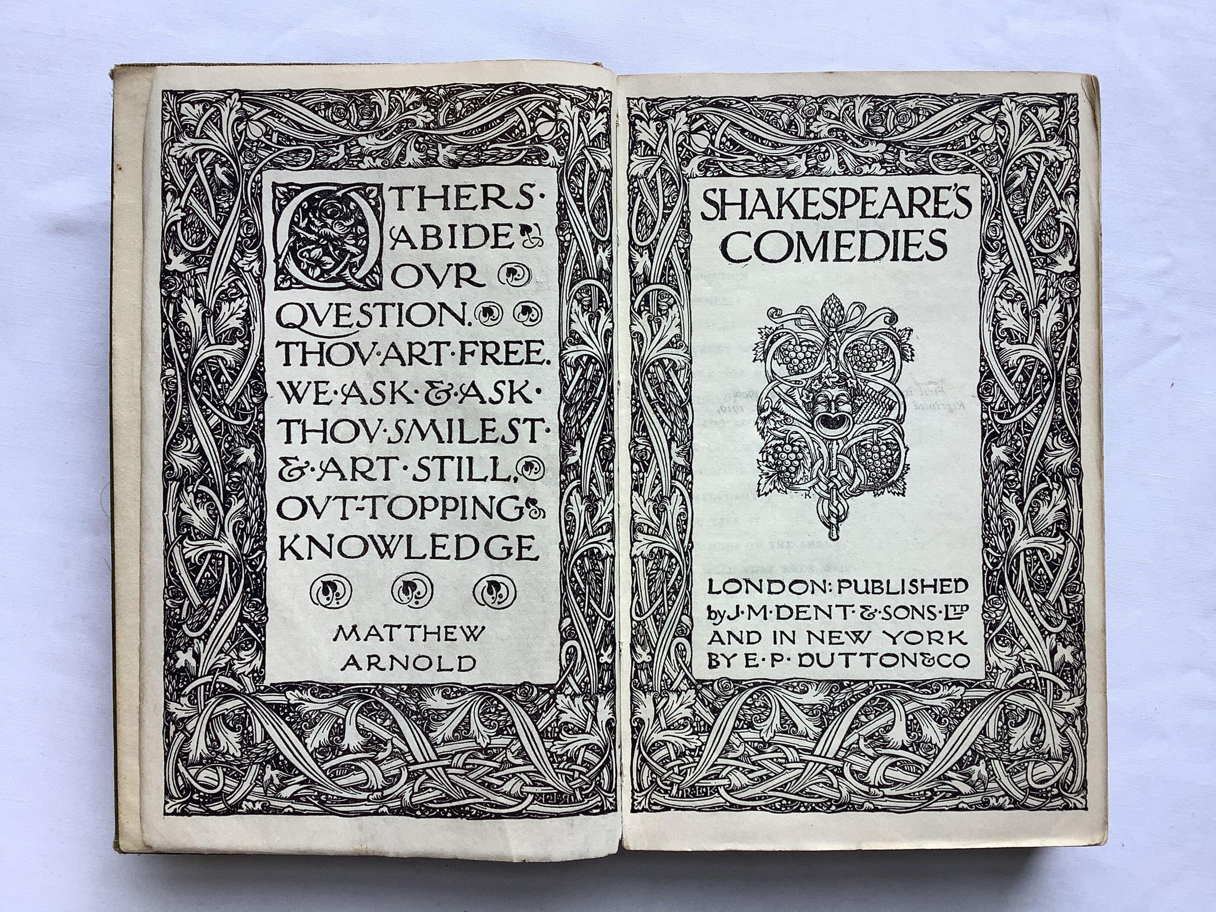 Beautifully decorated edition of the comedies of William Shakespeare.Inscription/Signature/Marks