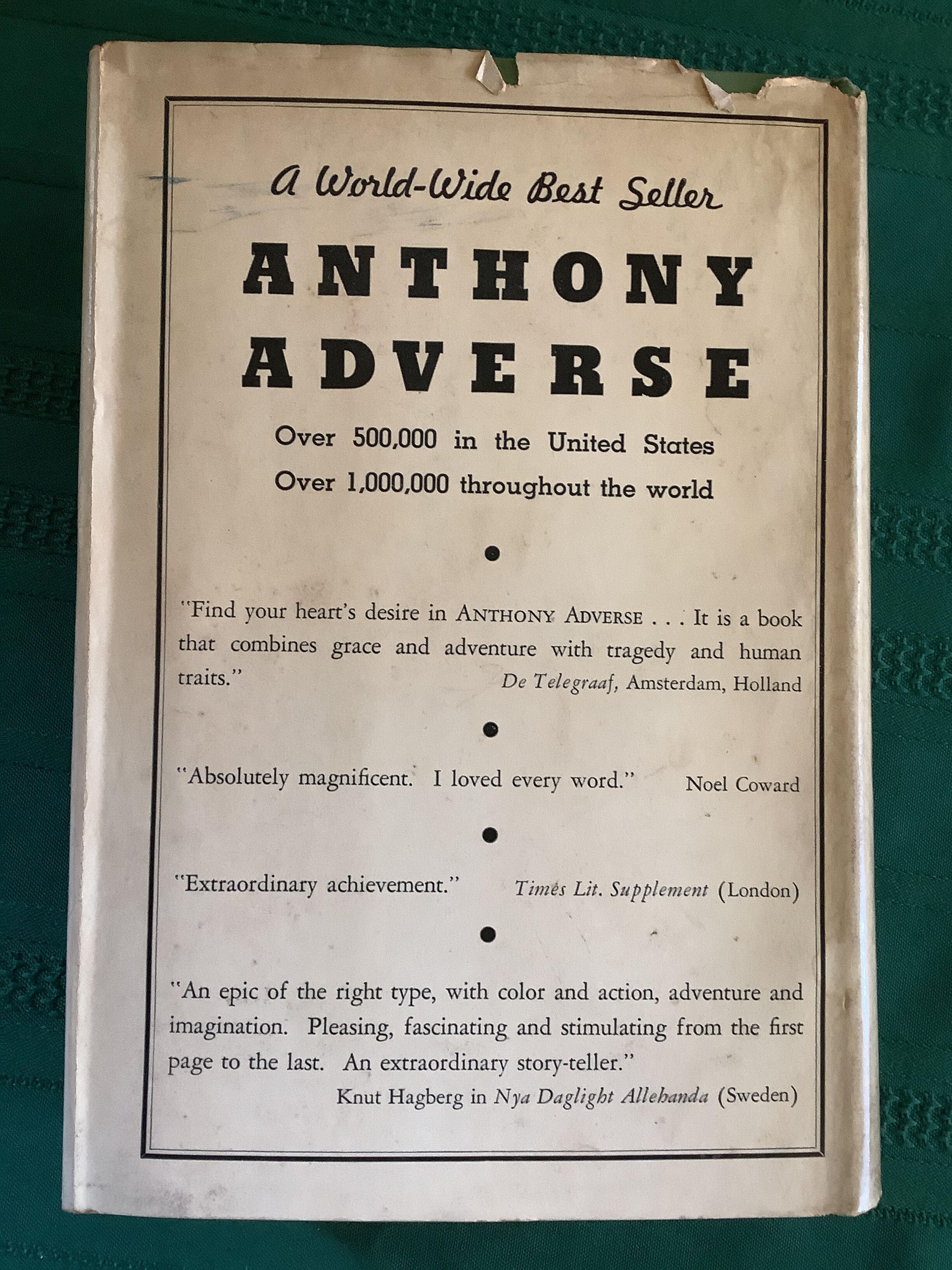 A story that traces the fortunes of its hero, Anthony Adverse, from his illegitimate birth through his struggle to claim his rightful inheritance. --Google Books