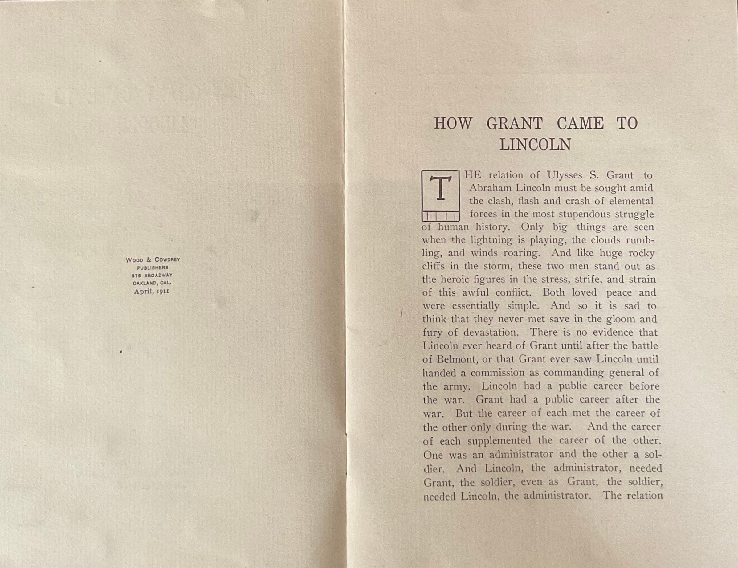 How Grant Came to LincolnEntry/Object ID