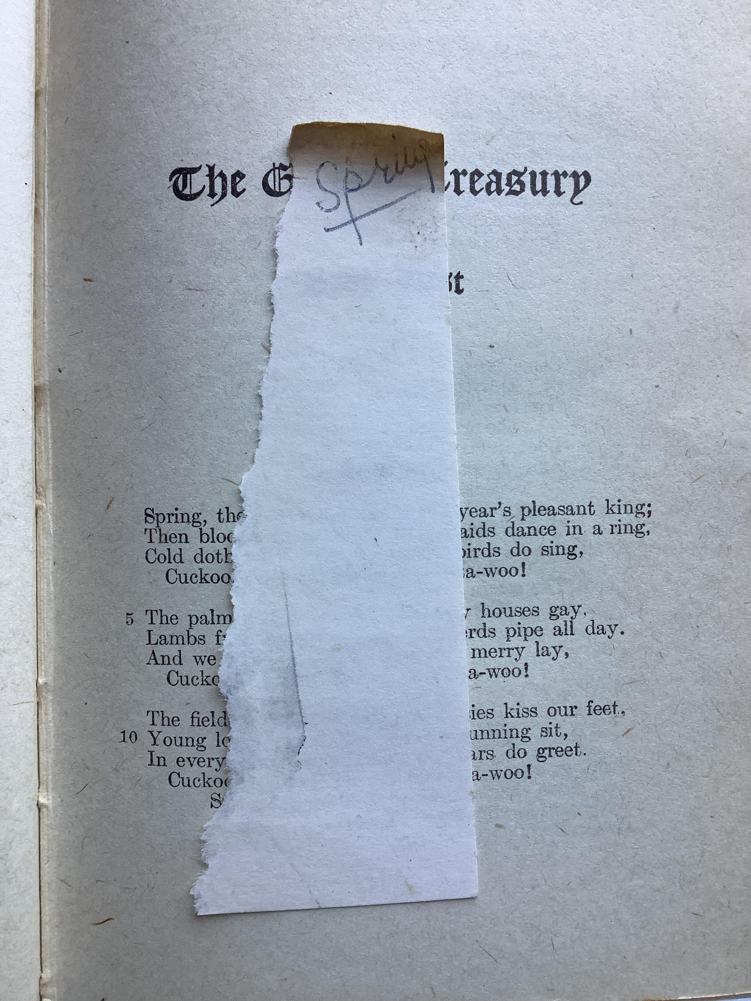 Popular anthology of English poetry, originally selected for publication by Francis Turner Palgrave in 1861. It was considerably revised, with input from Tennyson, about three decades later. Palgrave excluded all poems by poets then still alive. The book continues to be published in regular new editions; still under Palgrave's name. These reproduce Palgrave's selections and notes, but usually include a supplement of more recent poems. --WikipediaInscription/Signature/Marks