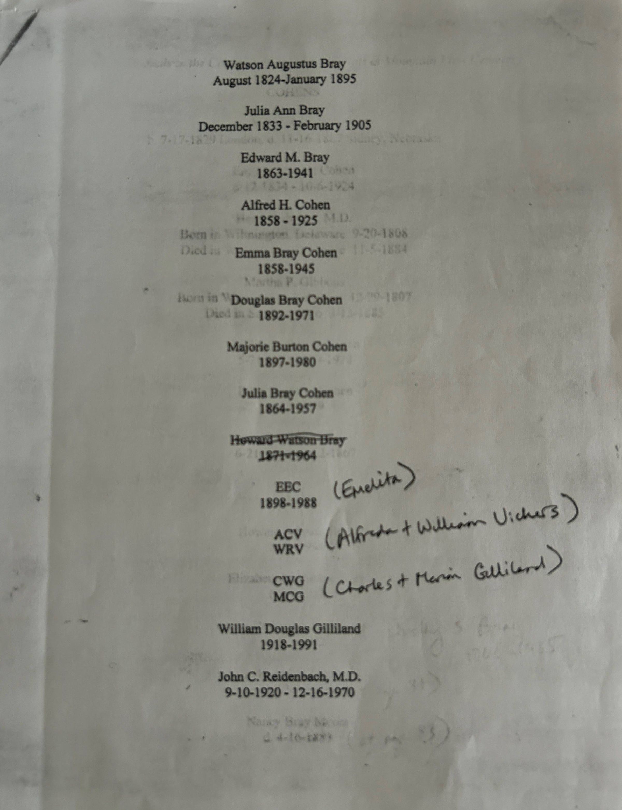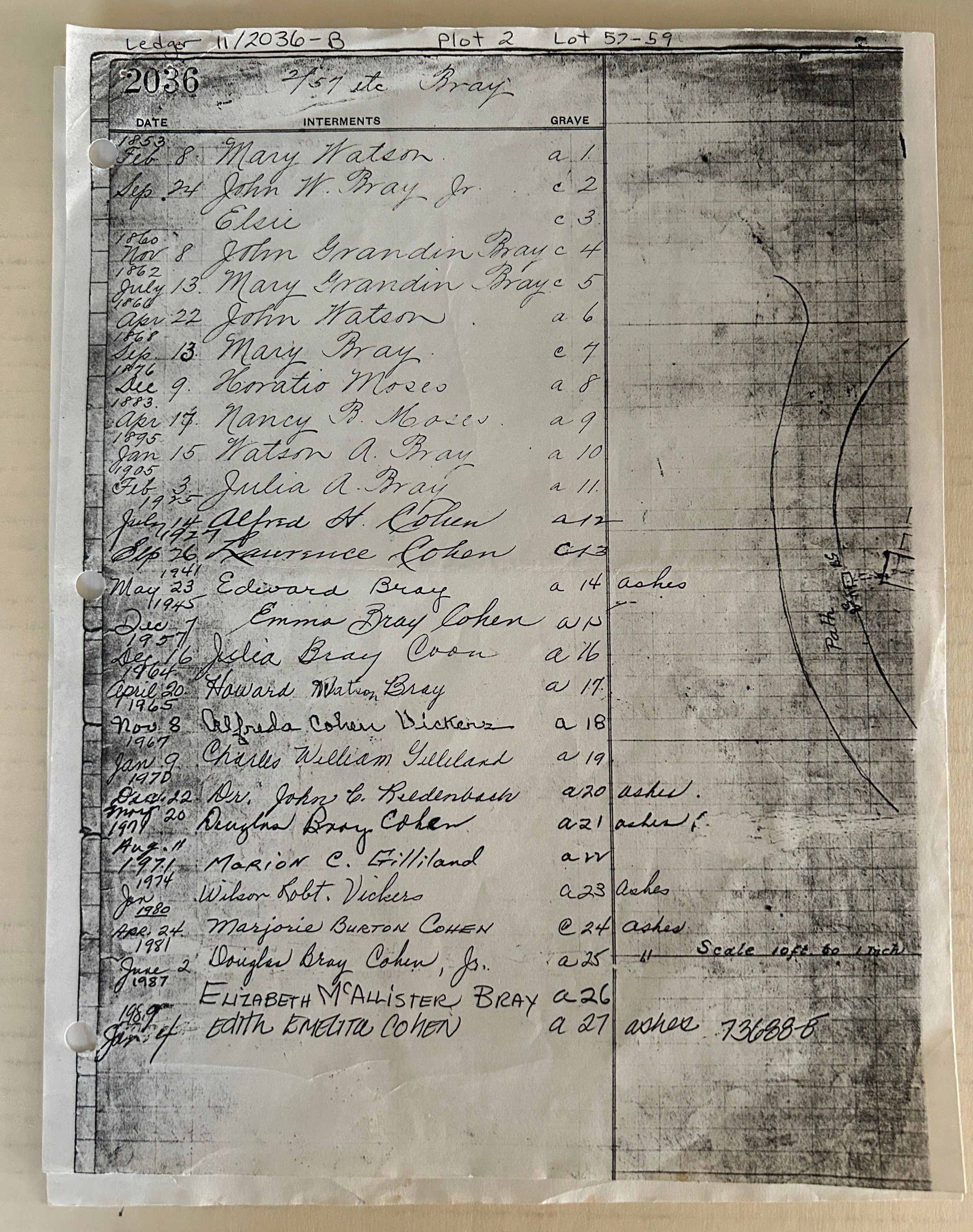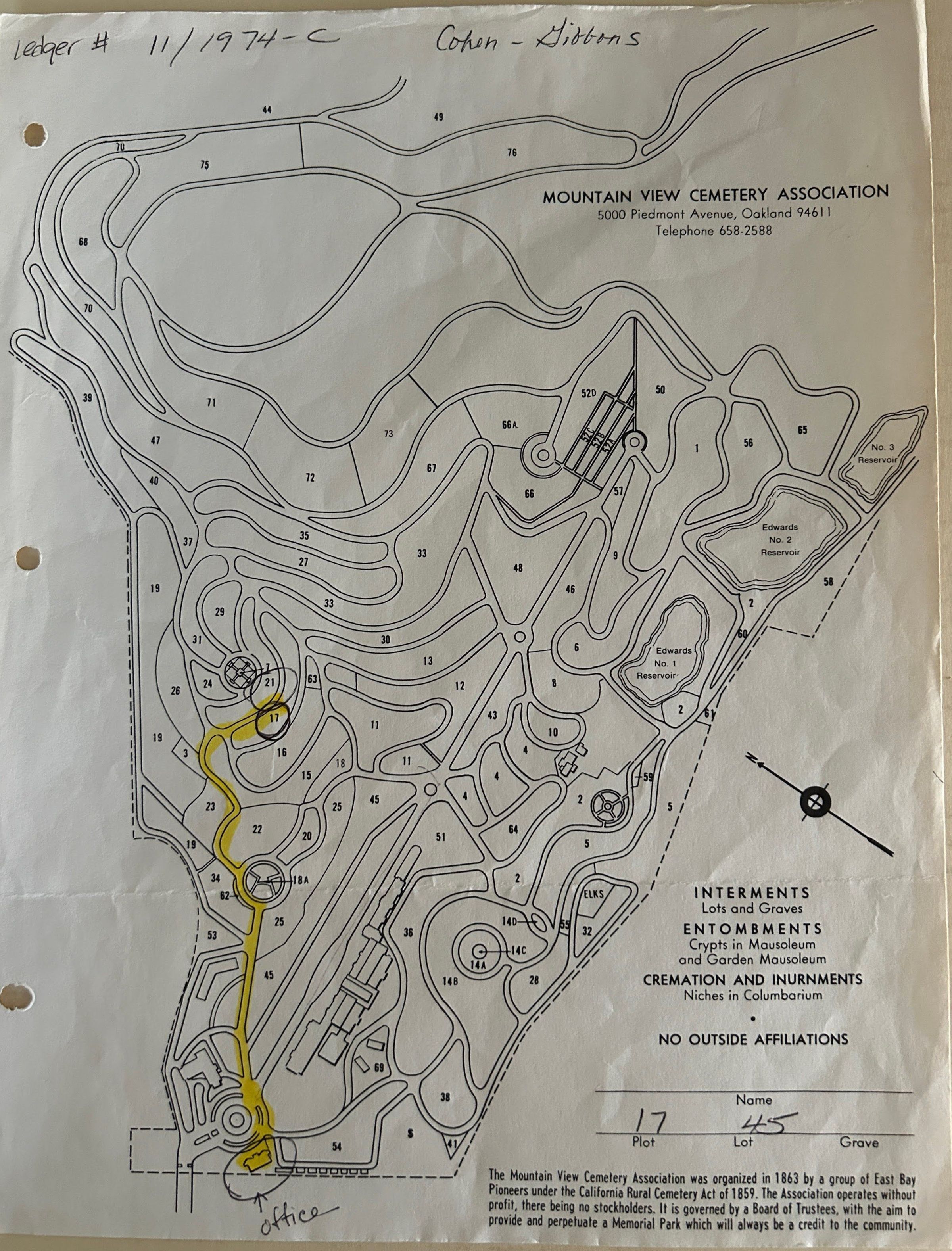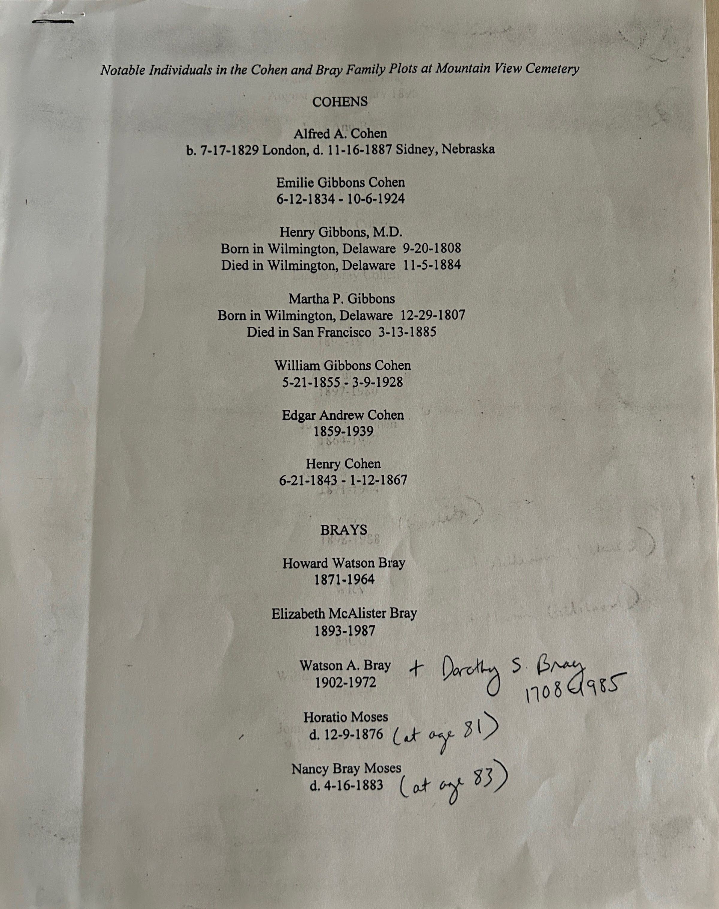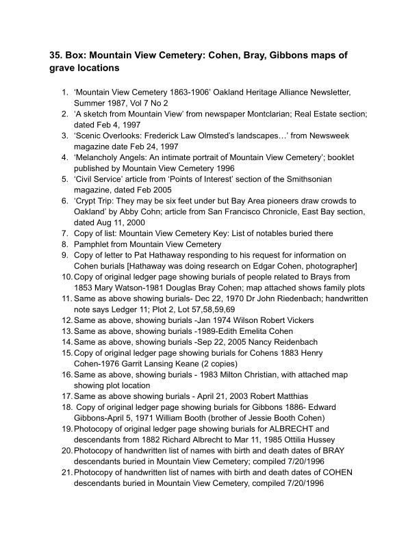 Box 35: Ephemera: Mountain View Cemetery: Cohen, Bray, Gibbons gravesites