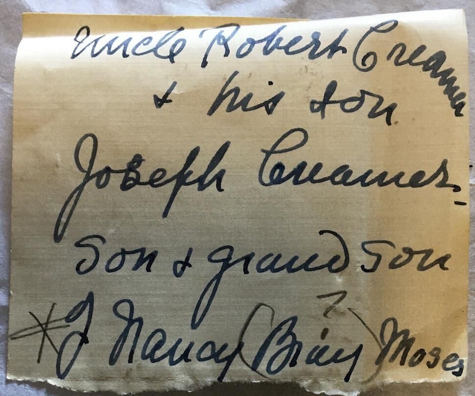 Uncle Robert Cramer was the son of Nancy Bray Moses, and his son Joseph was the Grandwon of Nancy. Nancy Bray Moses lived from 1798-1883.