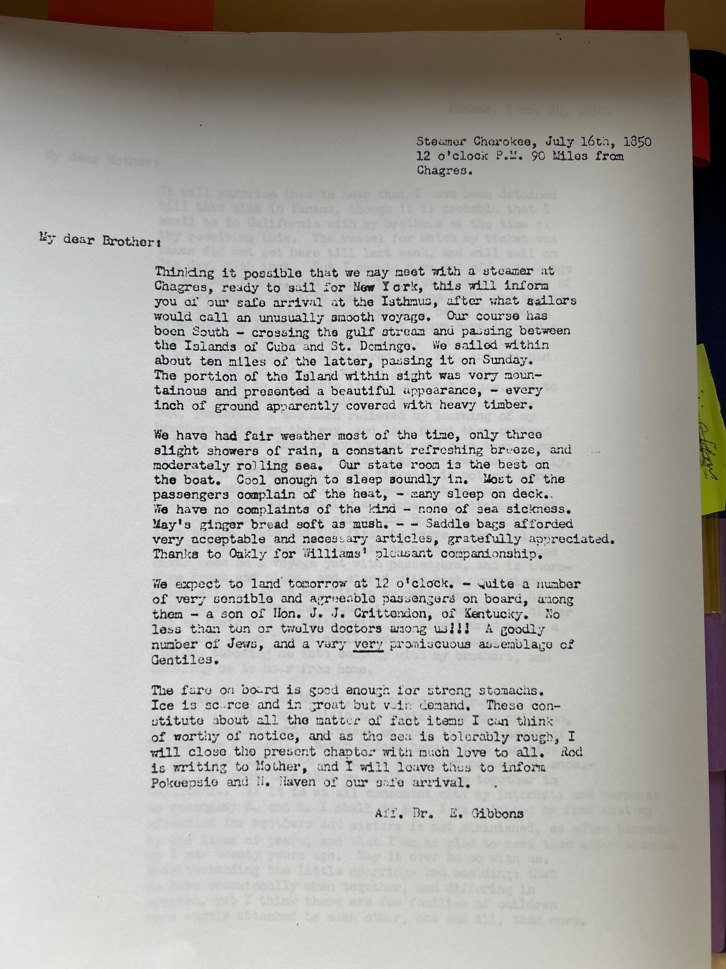 Collection of 75 Letters written by Henry , Edward and Rodman Gibbons to their mother and grandmother dated from 1850-1853. Also in box are two books covering the Life of Abby Gibbons Hopper