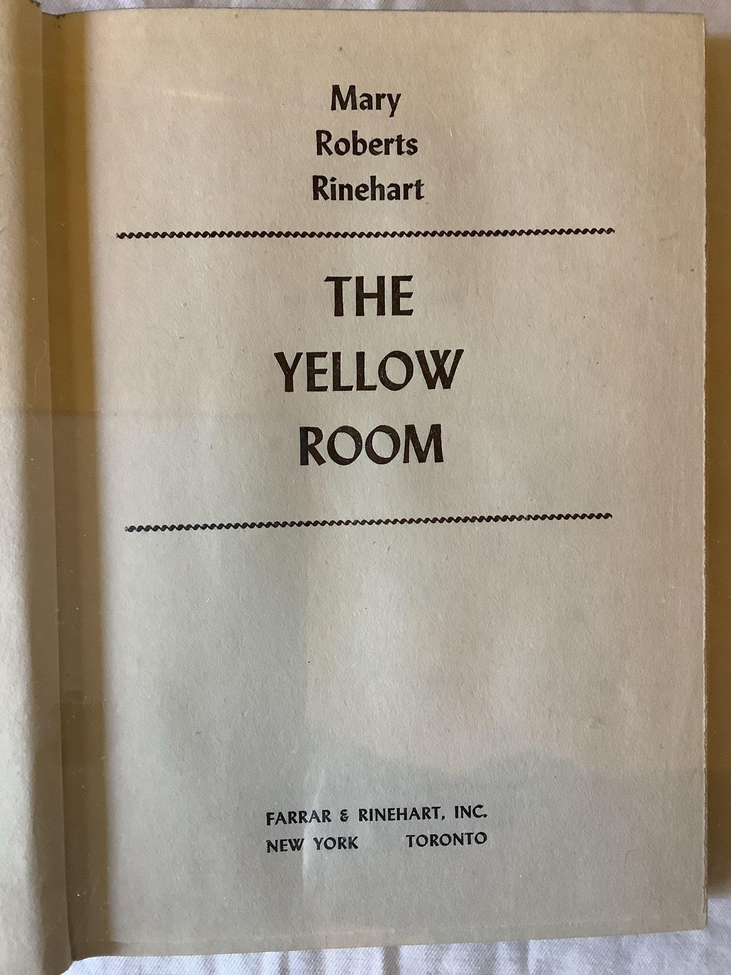 As far as Carol Spencer is concerned, the war has spoiled everything. She and Don had been engaged for years and were on the verge of marriage when he was shot down in the South Pacific, leaving Carol on the verge of spinsterhood at twenty-four. She wants to take some kind of job in the war effort, but her invalid mother demands that Carol accompany her to the family’s summer home in Maine. But when they arrive at the faded mansion, they find it completely locked up. The servants are gone, the lights are dark—and there is a body in the closet. There is a killer on the grounds of the abandoned Spencer estate, and the police believe it is Carol. As war rages across the seas, Carol Spencer fights a private battle of her own—to prove her own innocence, and to save her mother’s life. --Google BooksInscription/Signature/Marks