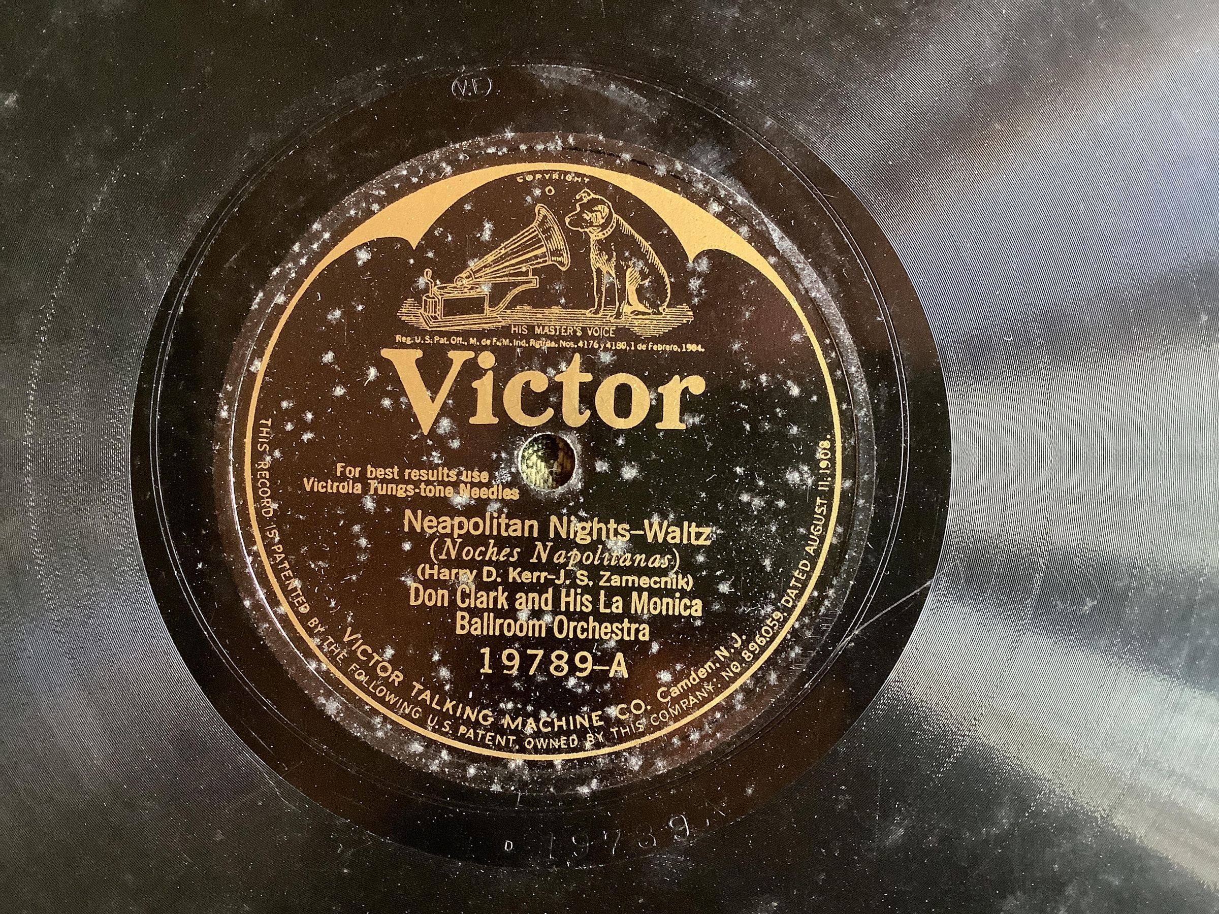 Side A: Neapolitan Nights - Waltz (Noches Napolitanos). Harry D. Kerr - J.S. Zamecnik. Don Clark and His La Monica Ballroom Orchestra. 19789-A.