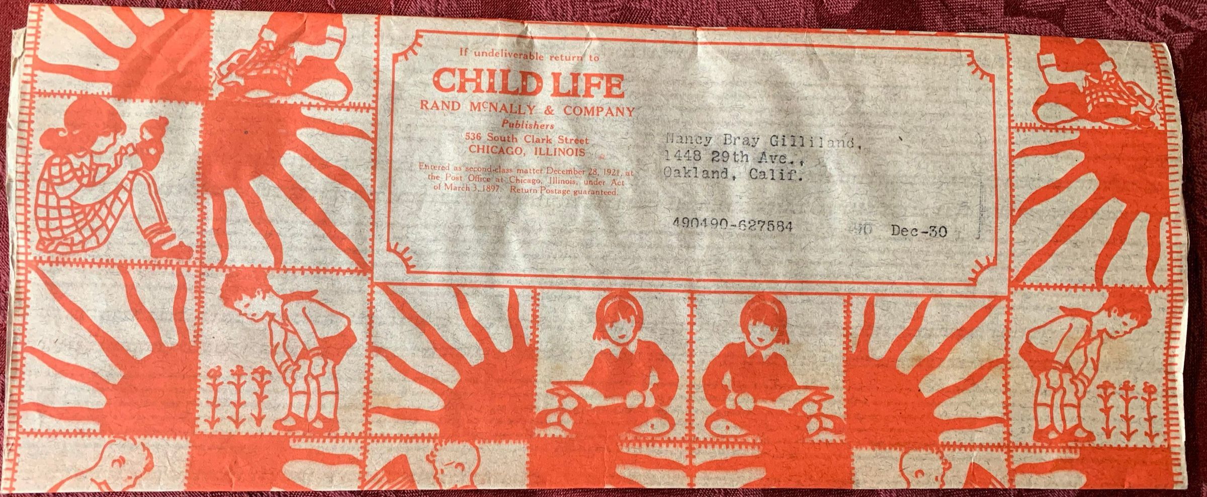 Child Life Magazine Envelope 12 with orange children playing design, "Dec-30."Inscription/Signature/Marks
