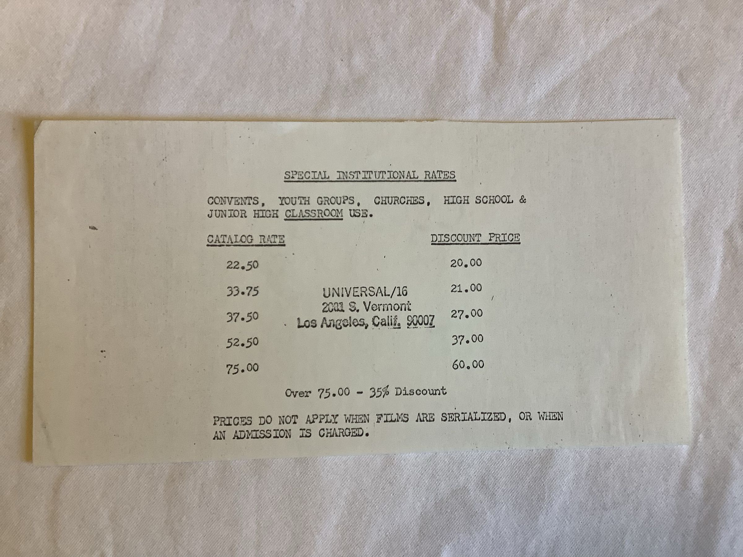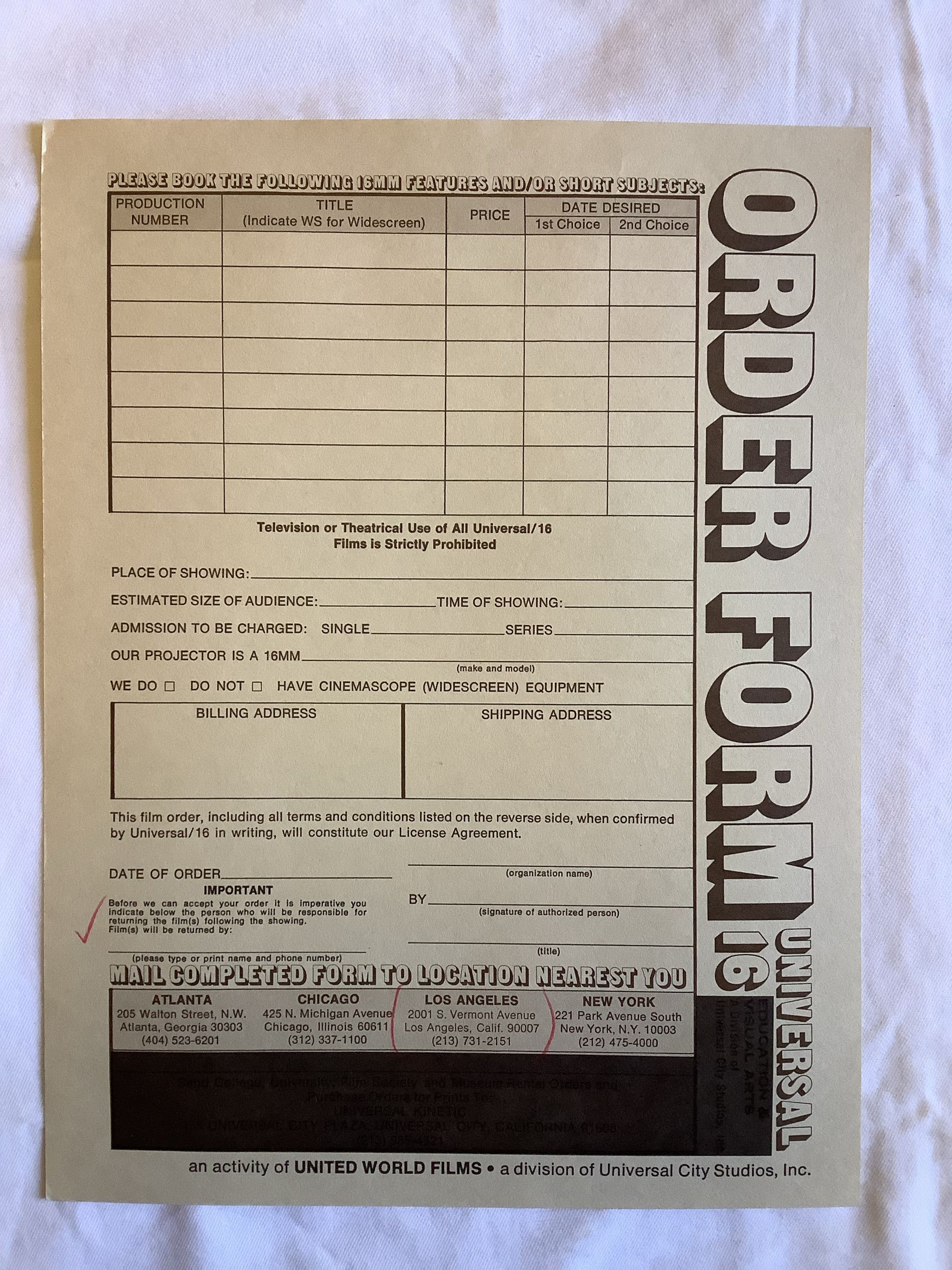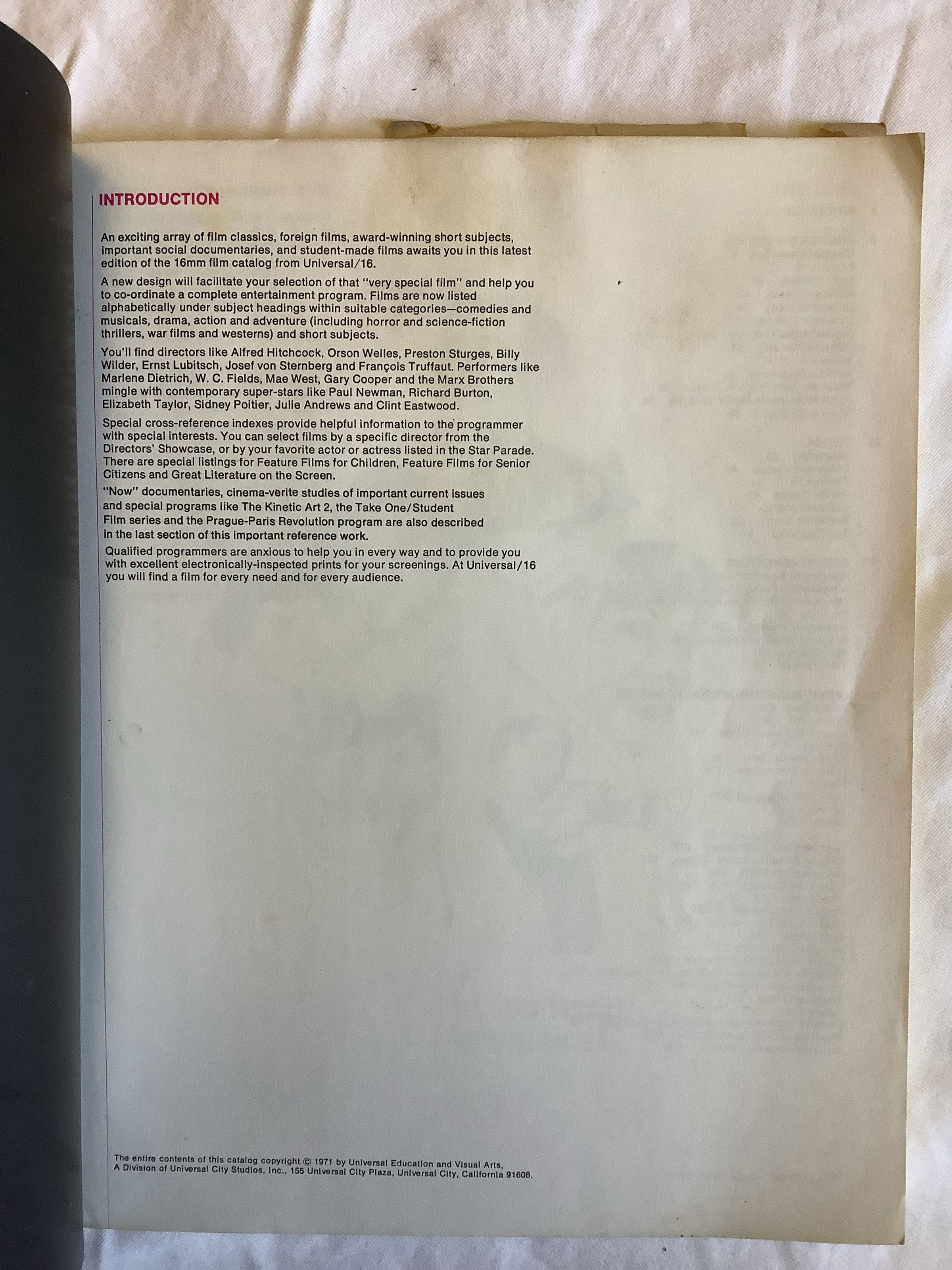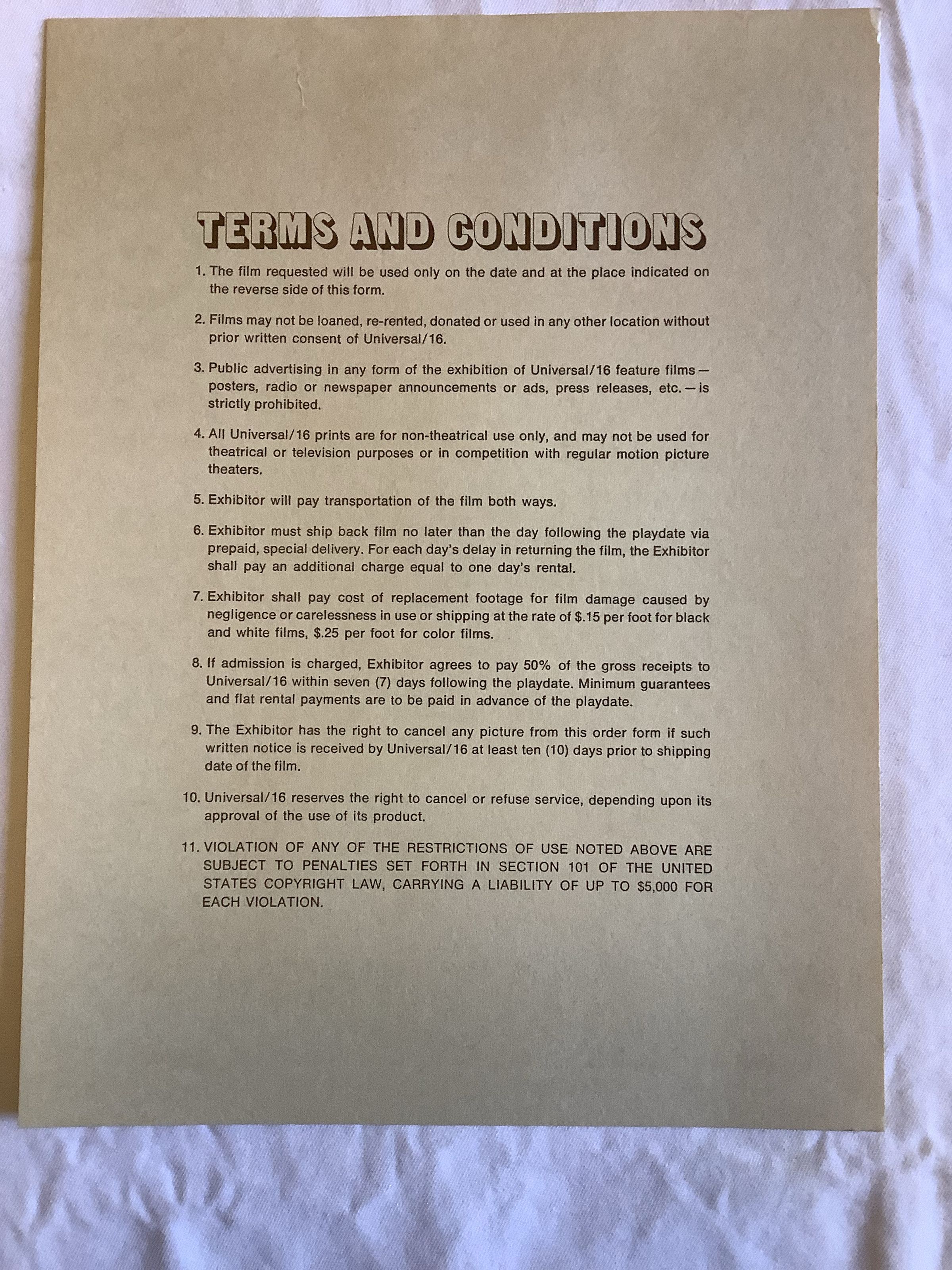 Universal Studios 16mm Film Catalog - Rental Booking for Group Showings