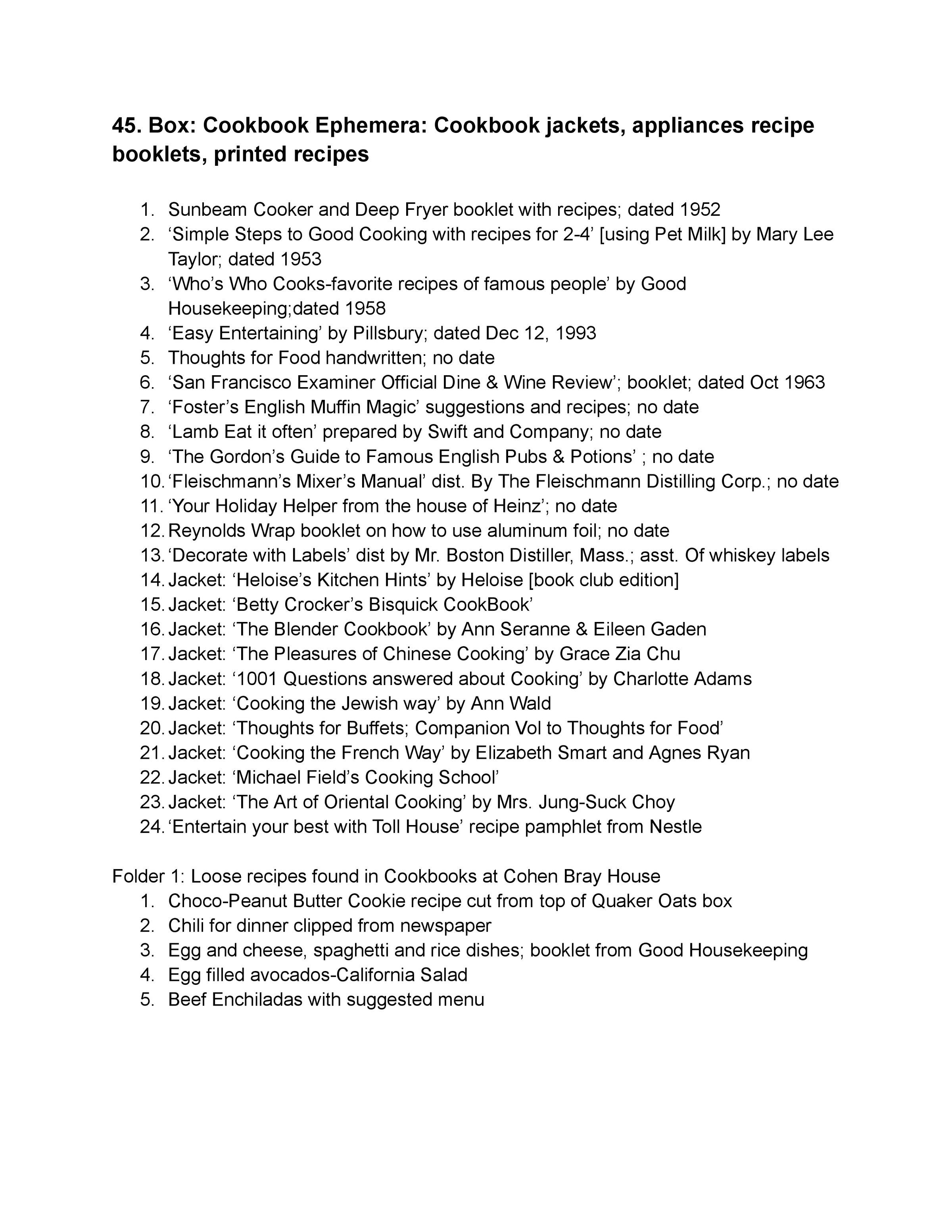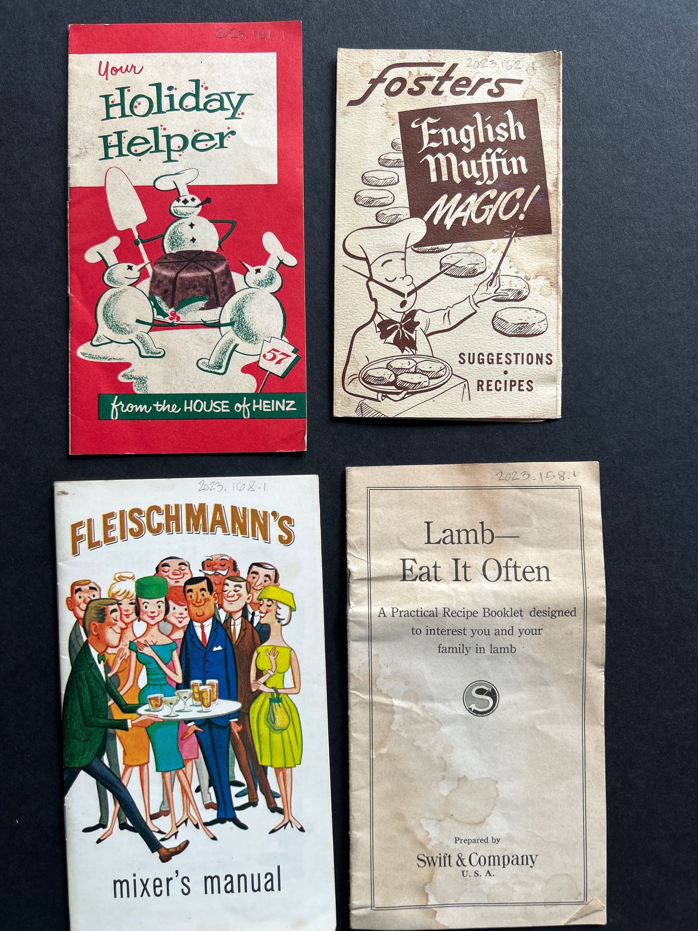 45. Ephemera found in Cookbooks: Cookbook jackets, appliance recipe booklets, printed recipes