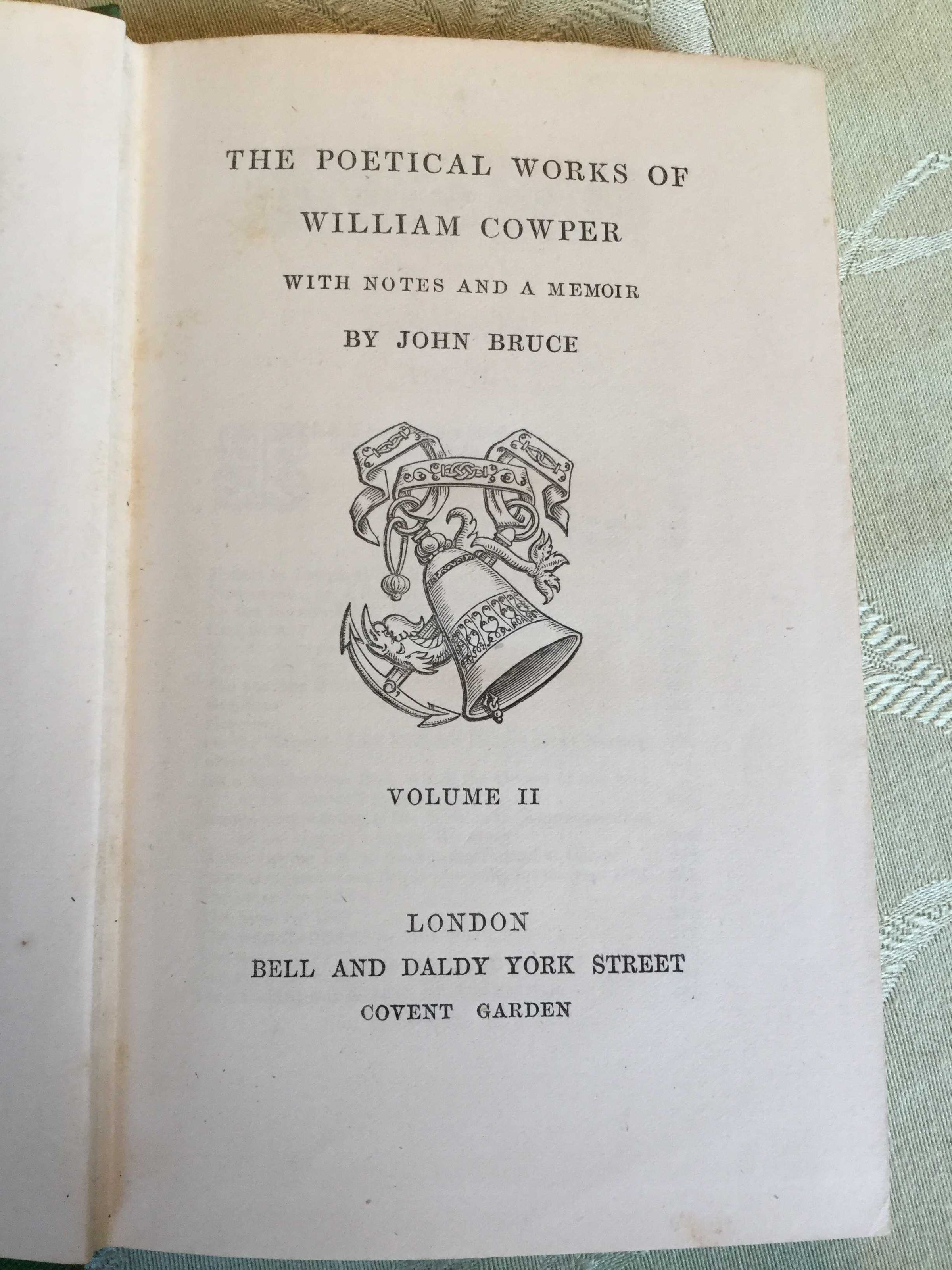 Memoir of Cowper - Volume 2 of 3; PHYSDESC: Hardback in Green Cloth - Design in gold - Front Title and spine - 17.5 cm tall and 11.5cm wideCollection