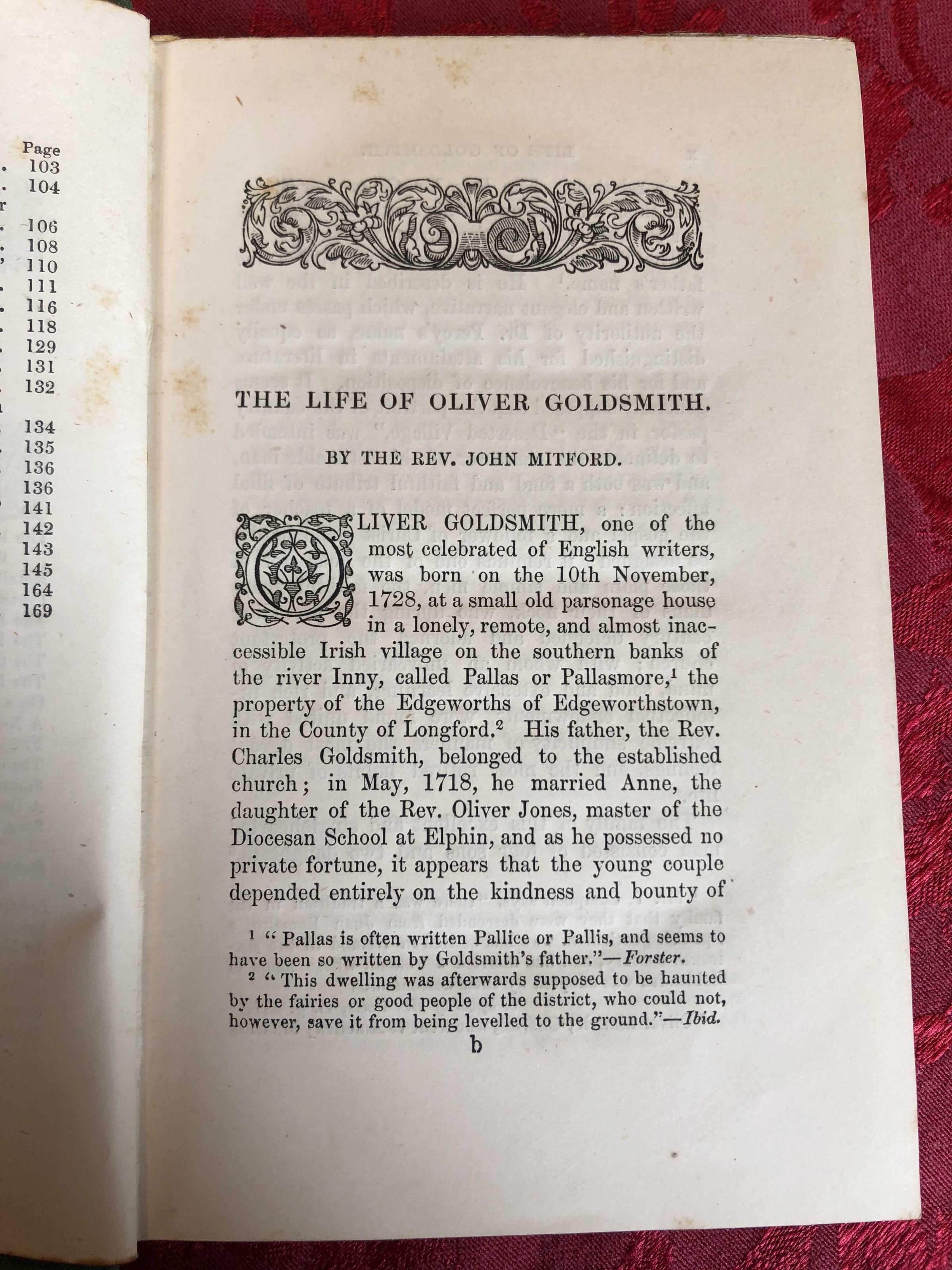 The Life of Oliver Goldsmith; PHYSDESC: Hardback in Green Cloth - Design in gold - Front Title and spine - 17.5 cm tall and 11.5cm wideCollection