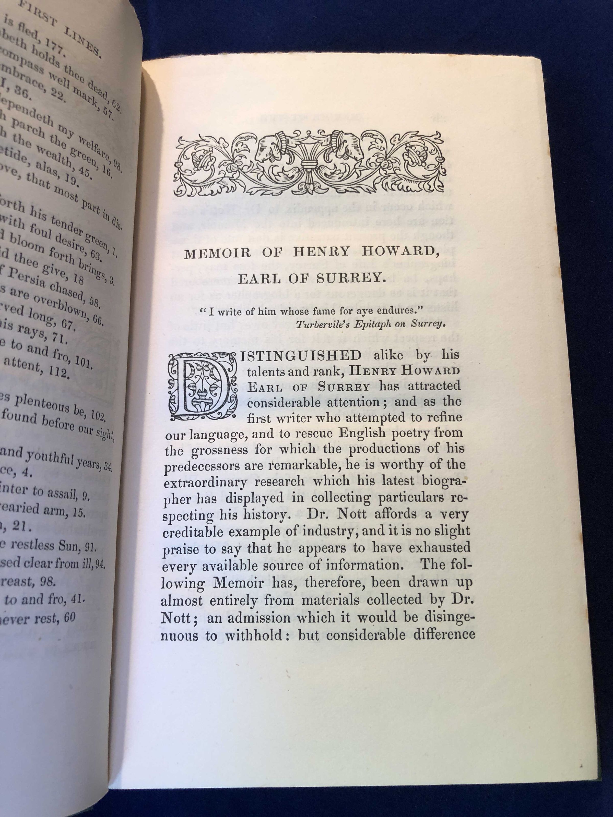 Memoir of Earl of Surrey; PHYSDESC: Hardback in Green Cloth - Design in gold - Front Title and spine - 17.5 cm tall and 11.5cm wideCollection