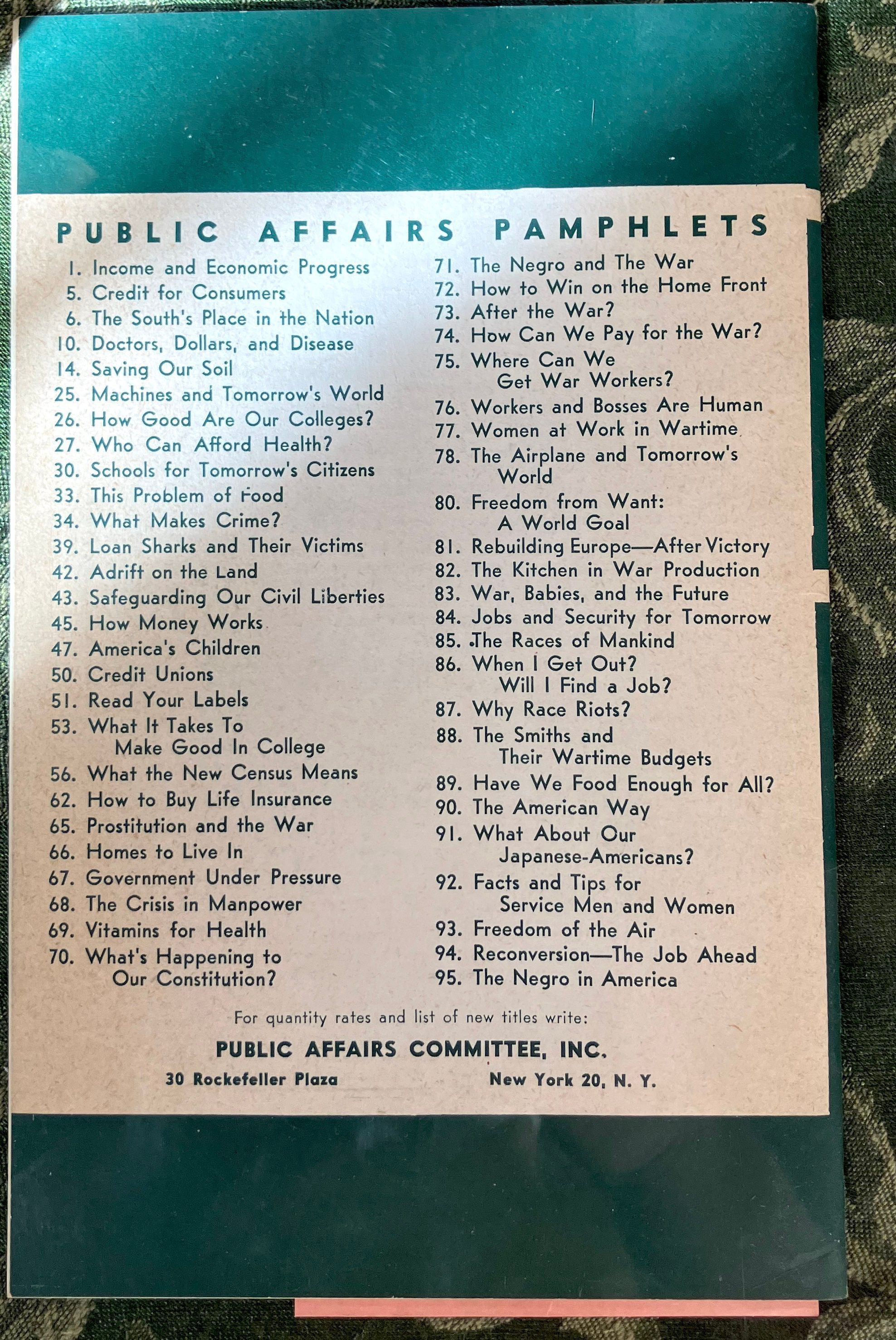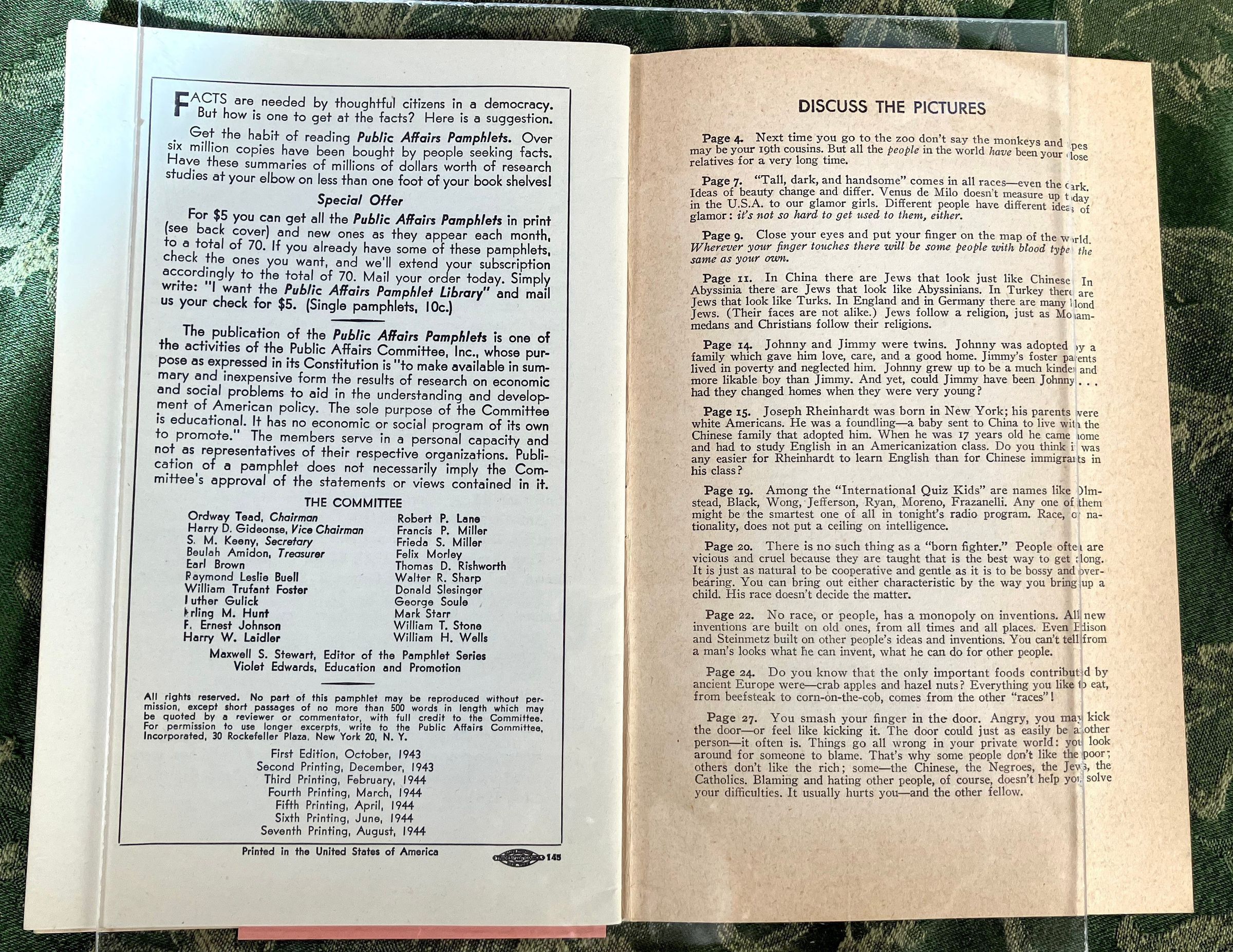 Anti-racist pamphlet couched in racist images and stereotypes promoting unity after the warInscription/Signature/Marks