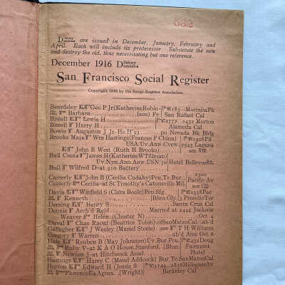 Social Register San Francisco 1917