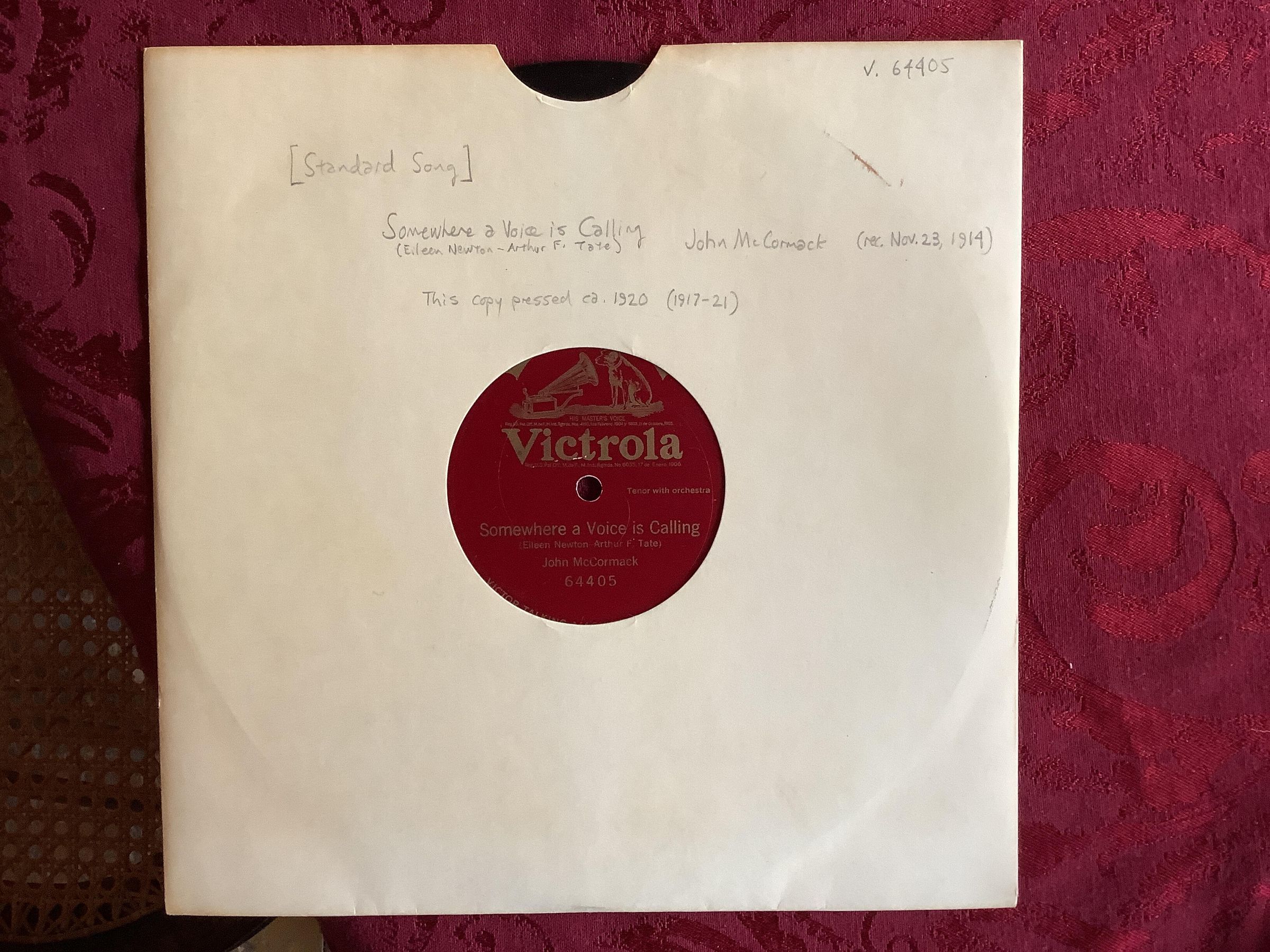 Victrola record. Tenor with orchestra. Somewhere a Voice is Calling (Eileen Newton - Arthur F. Tate) - John McCormack. Standard Song. 64405.Create Date