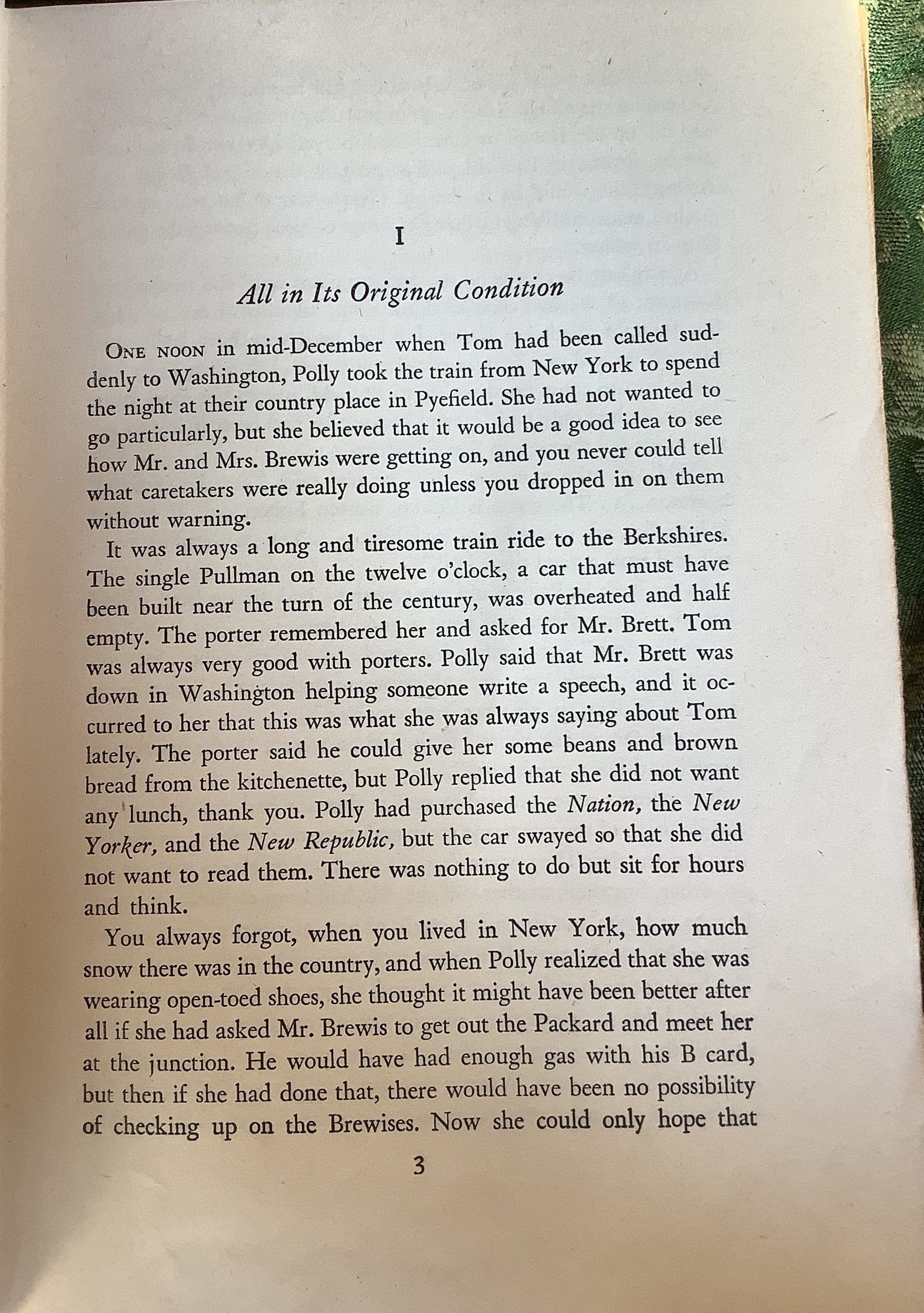 “Polly Fulton, the daughter of one of America’s most successful and admired businessmen, lives with her parents and brother in a thirty-room apartment on New York City’s Park Avenue. Yet she despises the superficial trappings of wealth and delights in defying convention. In the months before America enters World War II, she shocks her family and friends by dumping her longtime boyfriend, Bob Tasmin, and marrying radical journalist Tom Brett.