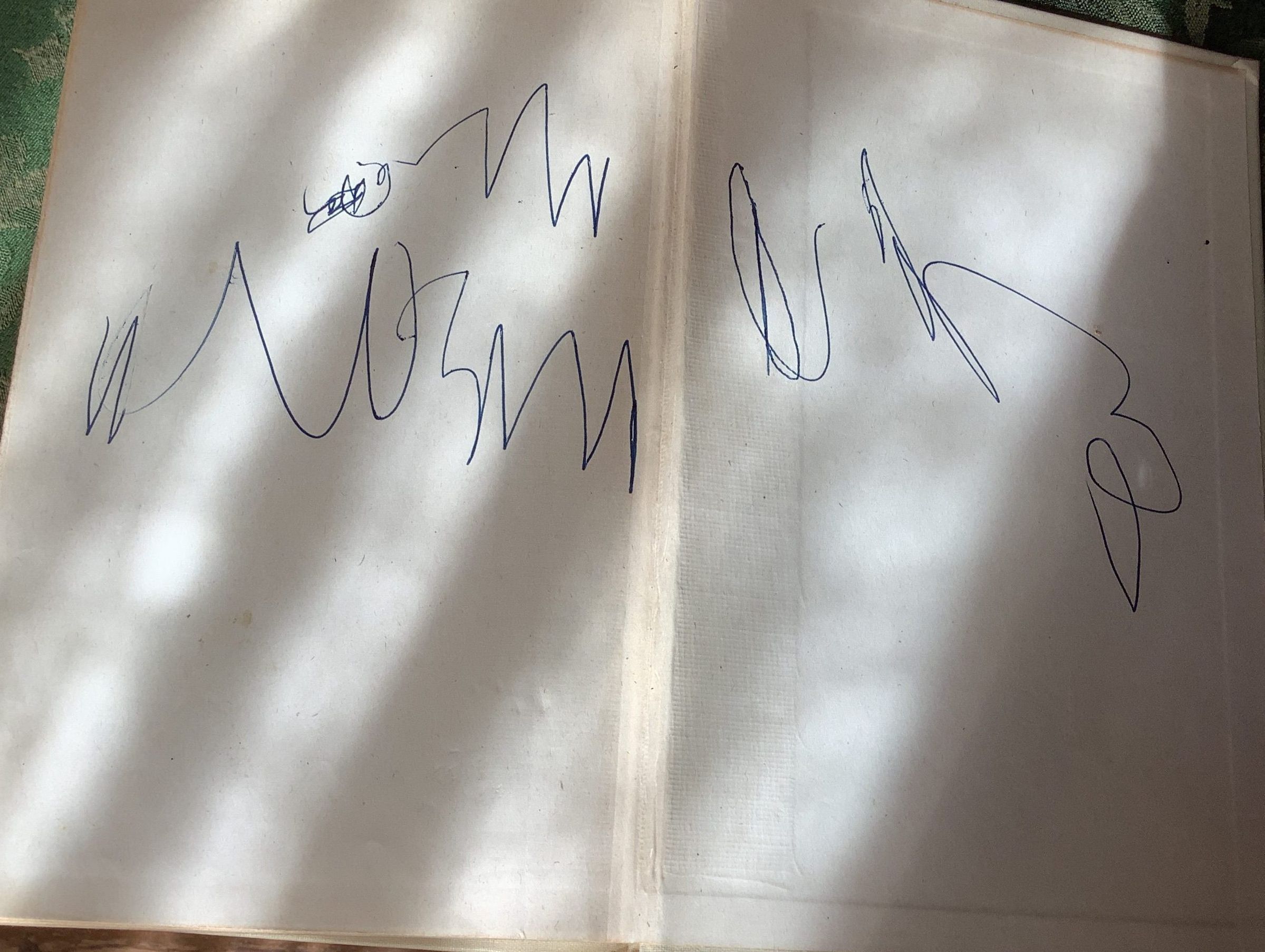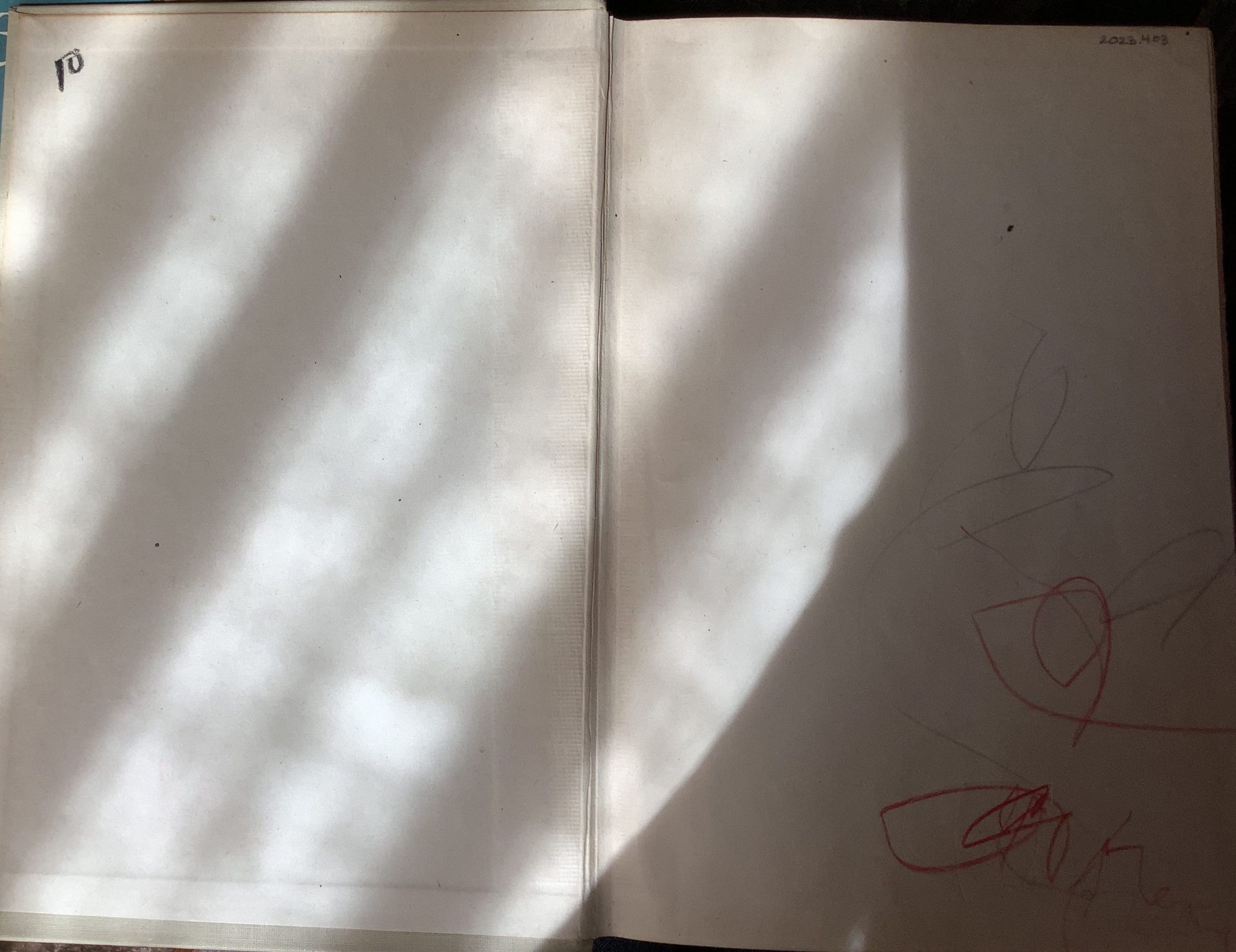 Exterior back cover; interior back cover; interior front coverMaterial/Technique
