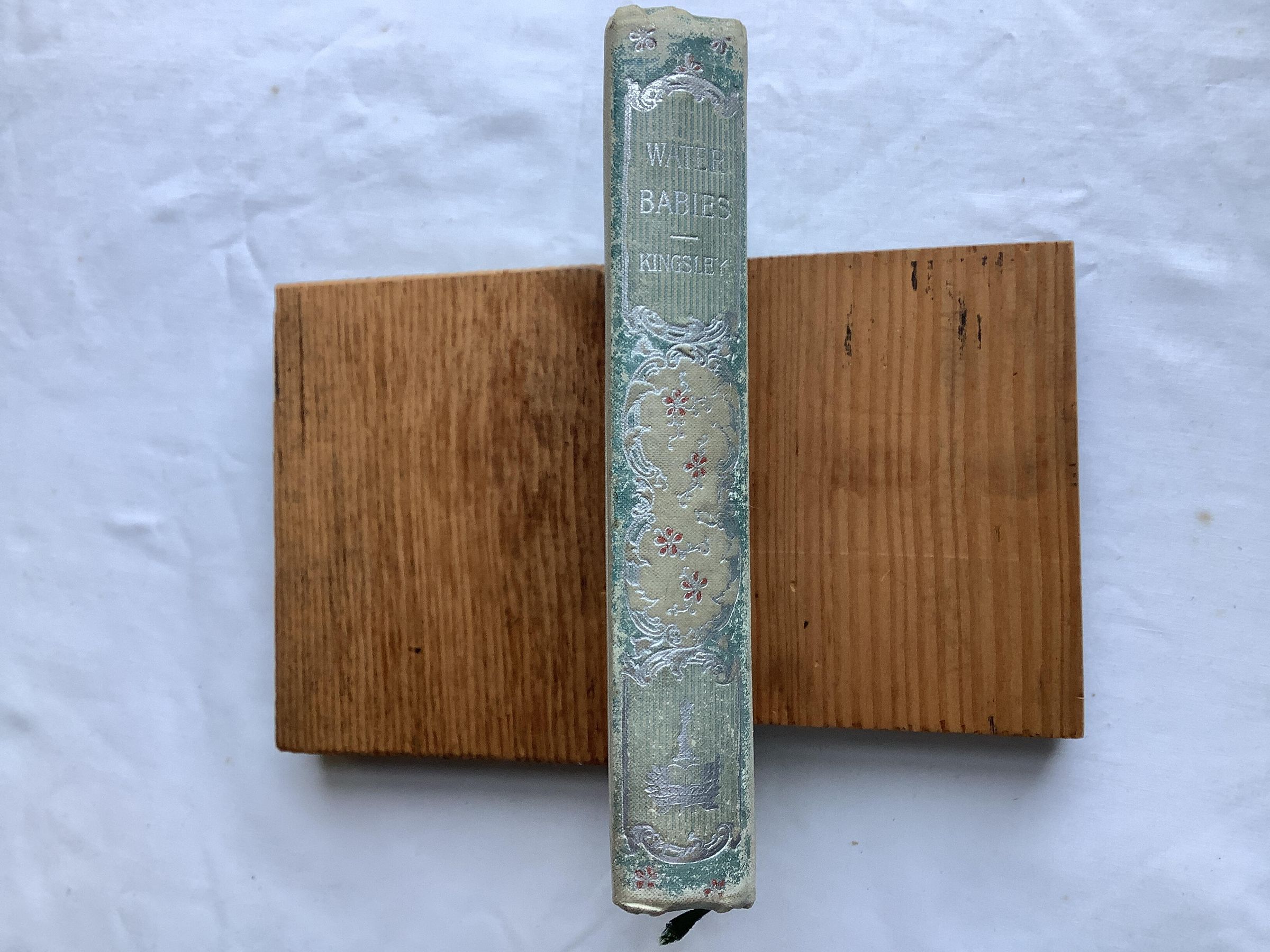 Tom, a poor orphan, is employed by the villainous chimney-sweep, Grimes, to climb up inside flues to clear away the soot. While engaged in this dreadful task, he loses his way and emerges in the bedroom of Ellie, the young daughter of the house who mistakes him for a thief. He runs away, and, hot and bothered, he slips into a cooling stream, falls fast asleep, and becomes a water baby. - WikipediaInscription/Signature/Marks