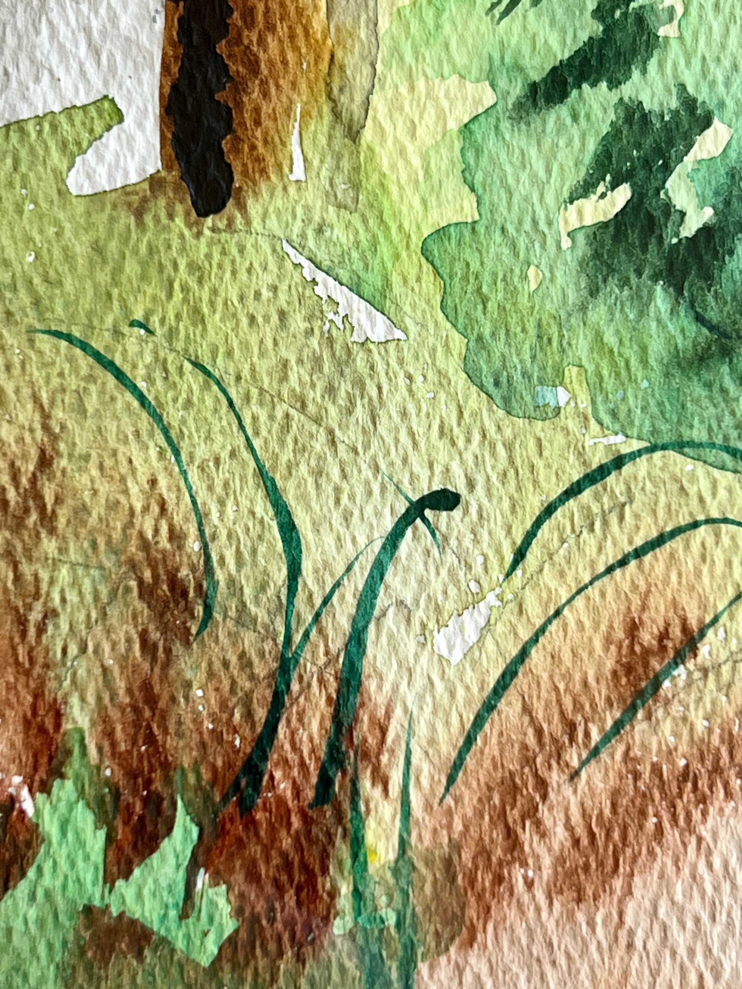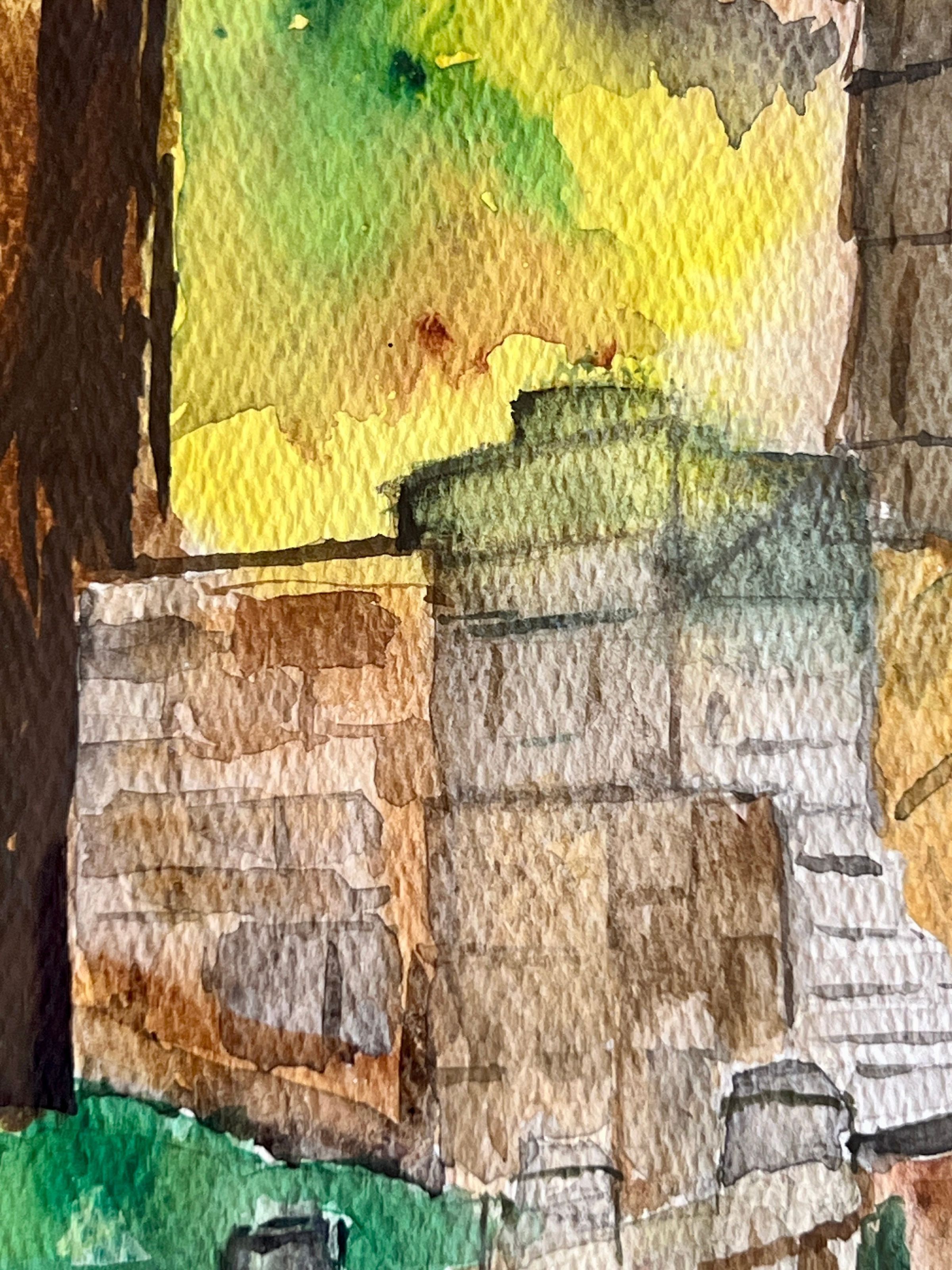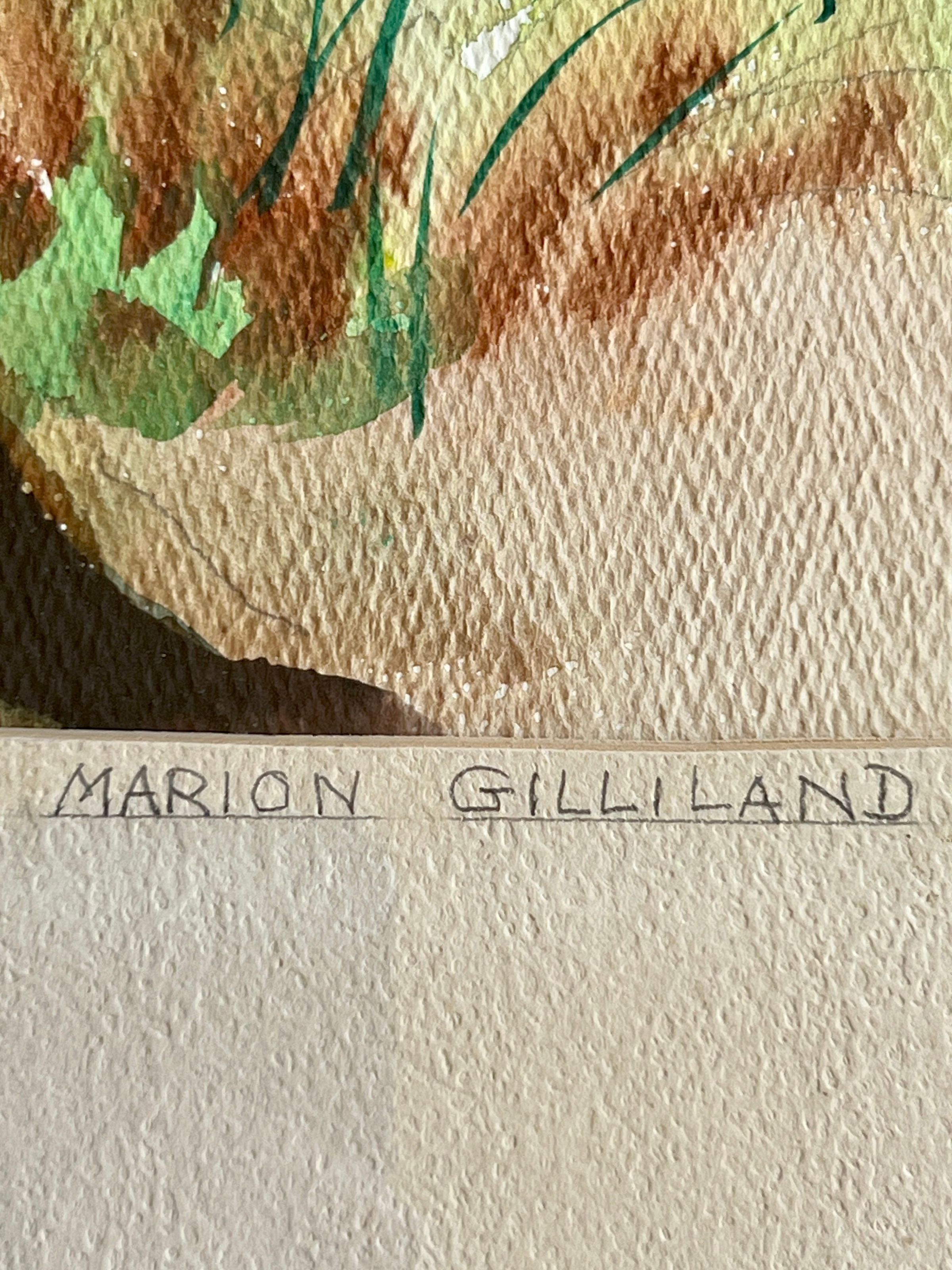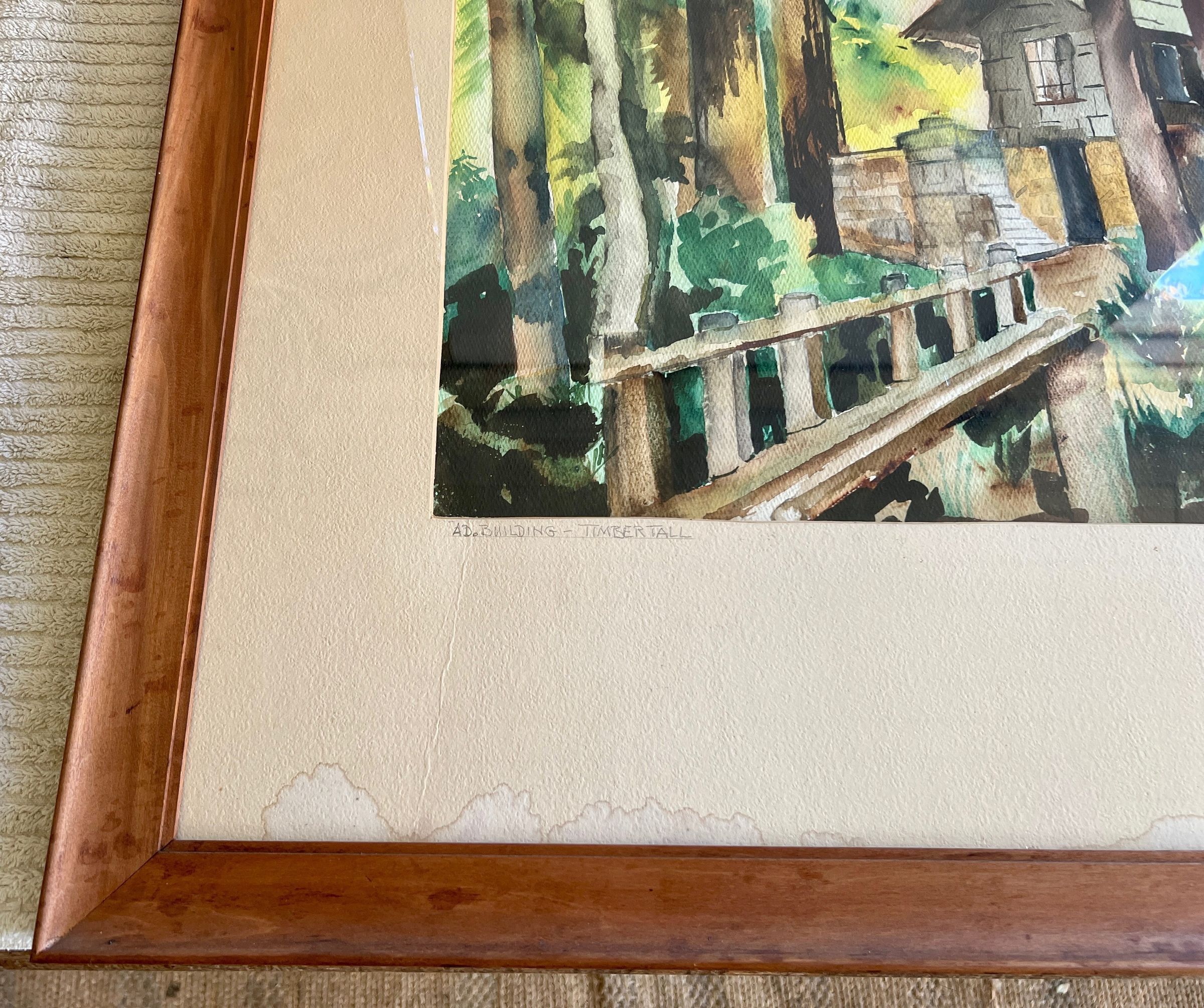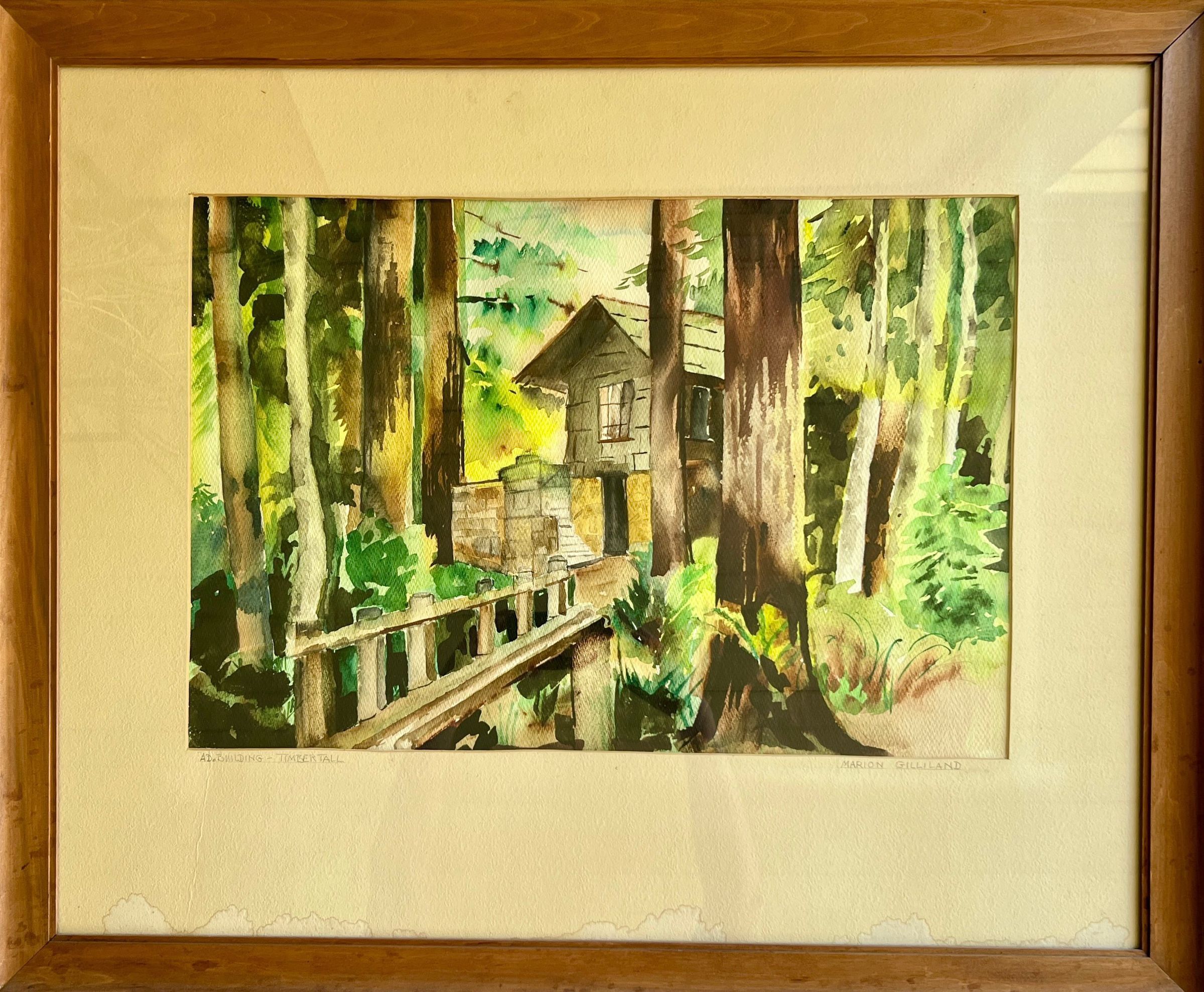 Watercolor painting of Emelita Cohen's office at Timbertall, mounted in a wooden frame.Made/Created