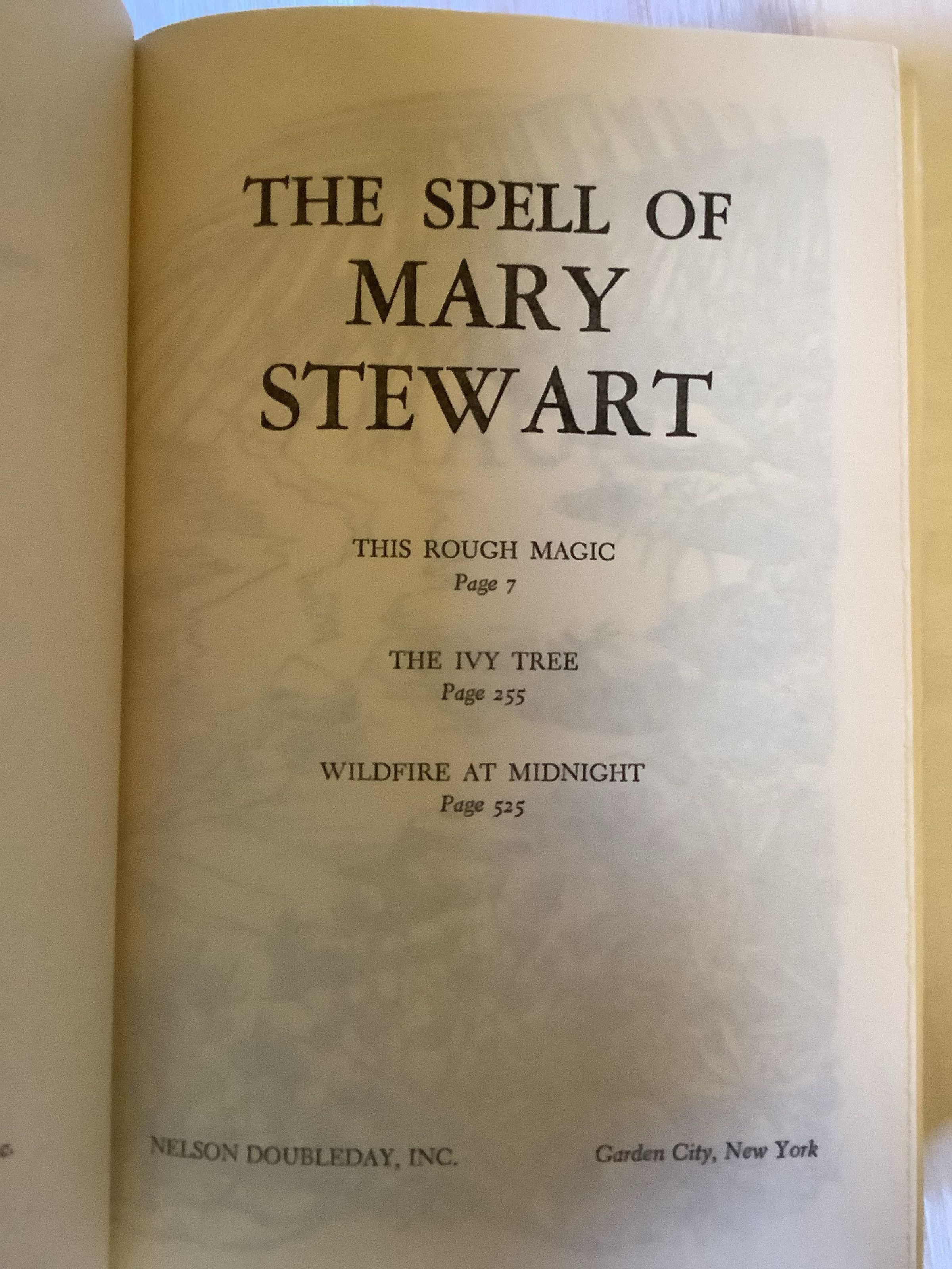 Three full-length romantic suspense novels by Mary Stewart: The Rough Magic, The Ivy Tree, and Wildfire at Midnight.Inscription/Signature/Marks