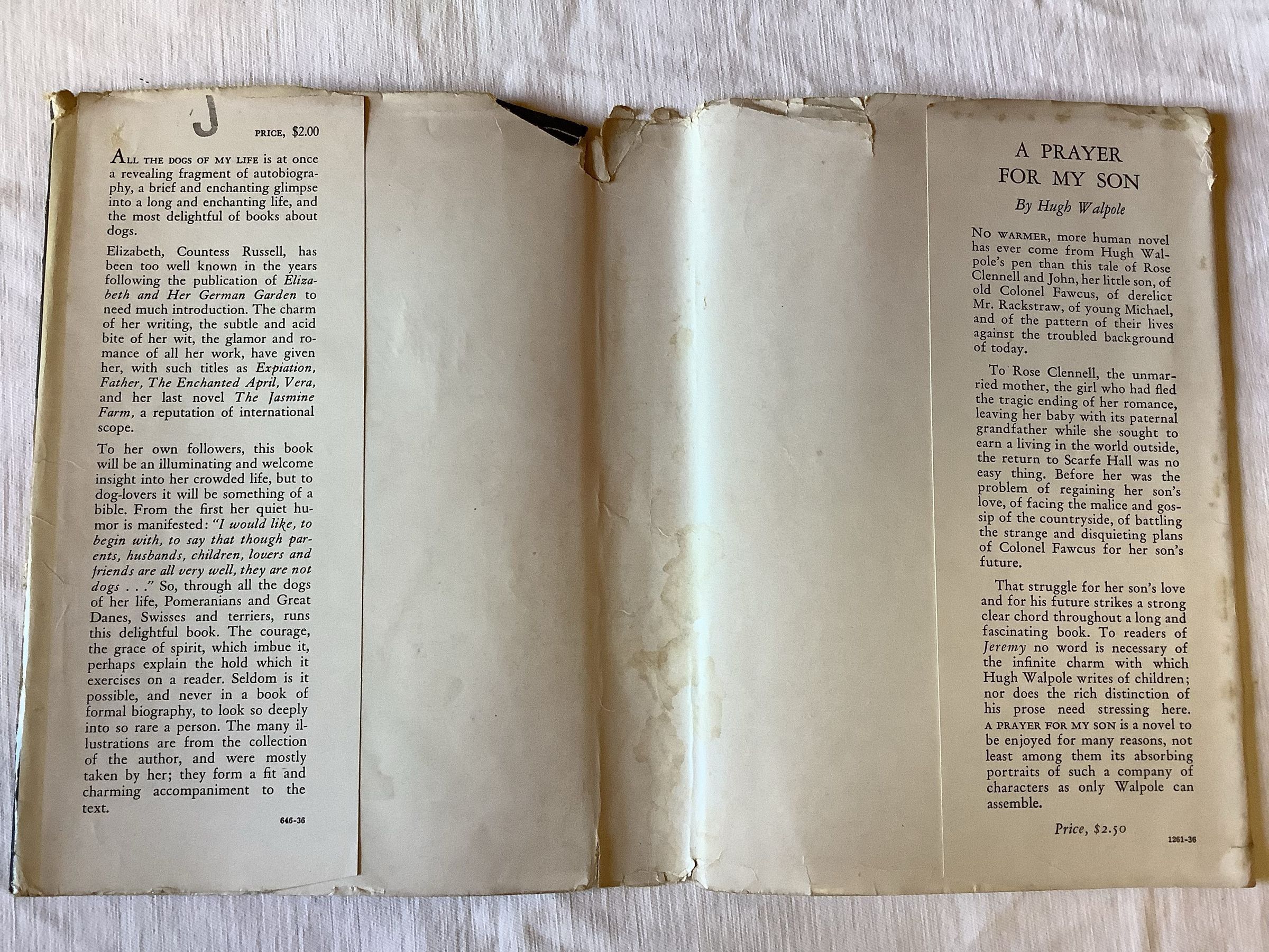 From Bijou, her very first dog, to Chunkie and Knobbie, her favourite, and last, canine companions, Elizabeth von Arnim takes us through the complex journey of her life. From her Pomeranian idyll (encapsulated in her first novel, Elizabeth and Her German Garden ) to less happy days in London following the death of her first husband; from the solitude of her Swiss mountain hideaway, to World War I and a disastrous second marriage, her dogs (or lack of) were always vital to her. Through them, Elizabeth von Arnim offers observations on life and society. --Google BooksInscription/Signature/Marks