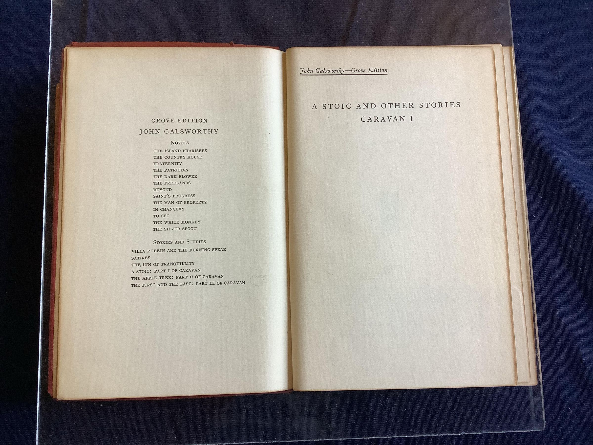 Collection of fifteen short stories by John Galsworthy written between 1900 and 1922.Inscription/Signature/Marks