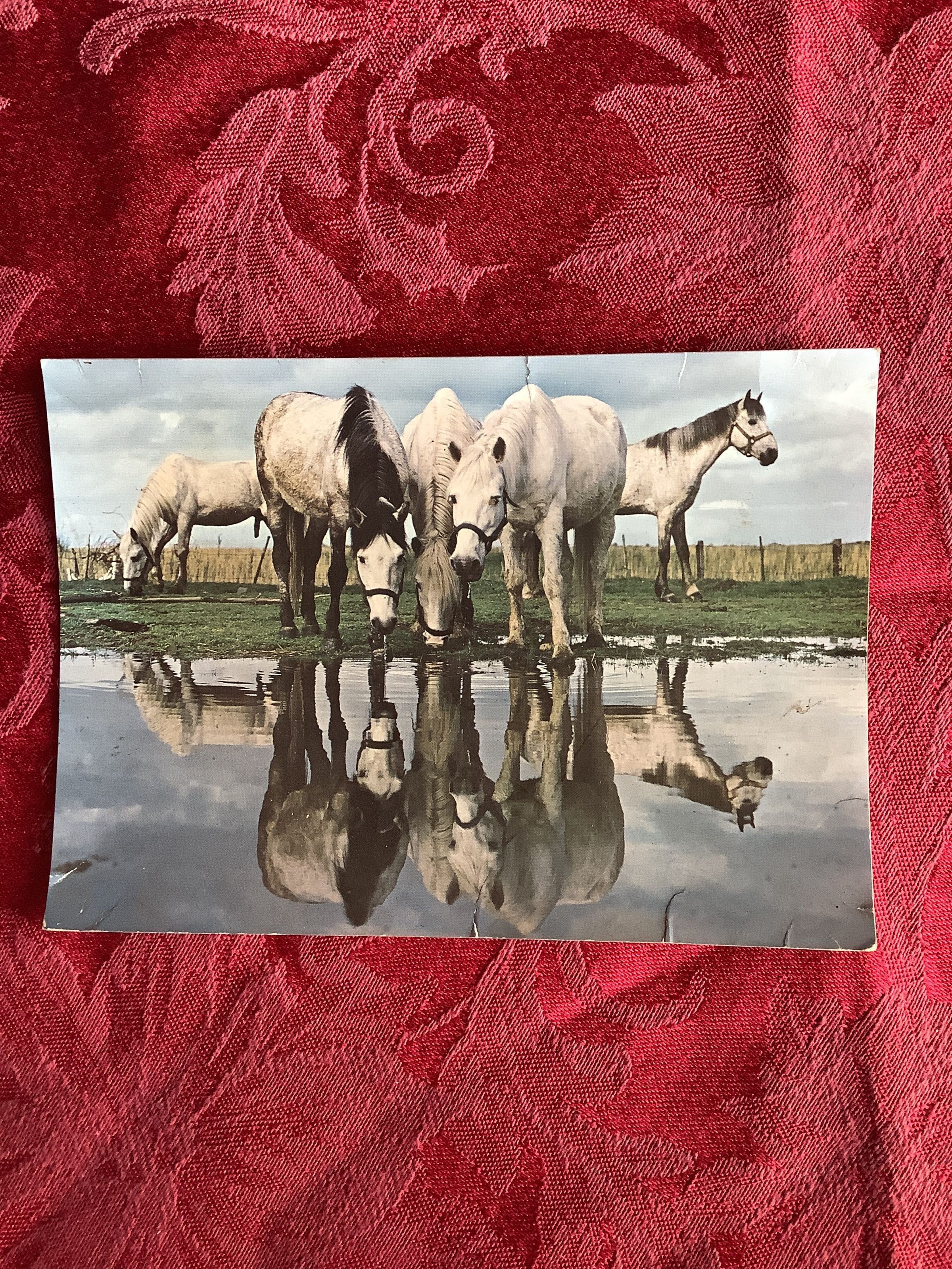 A small written postcard to Emelita from Yvone (?) with a printed picture of horses drinking on one side. The postcard itself describes good wishes for Emelita’s speedy recovery post surgery.Create Date